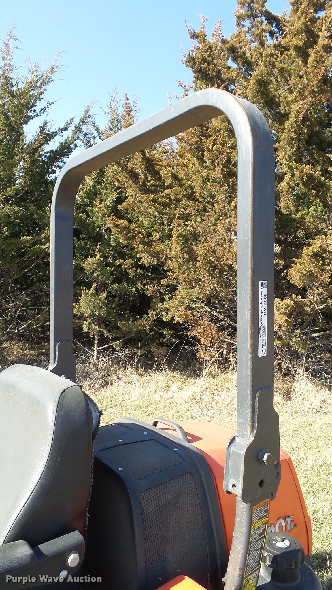 Kubota ZD331 lawn mower. Model RCK72P-3317, 2,913 hours on meter, 72" cutting width, Kuboata D1305-ET02 1.3L diesel engine, Hydrostatic transmission, ROPS Model SFZD-F31, Serial 49598, 15 x 6.00-6 front tires, 26 x 12.00-12 rear tires, Serial 40960. Auburn, KS 66402