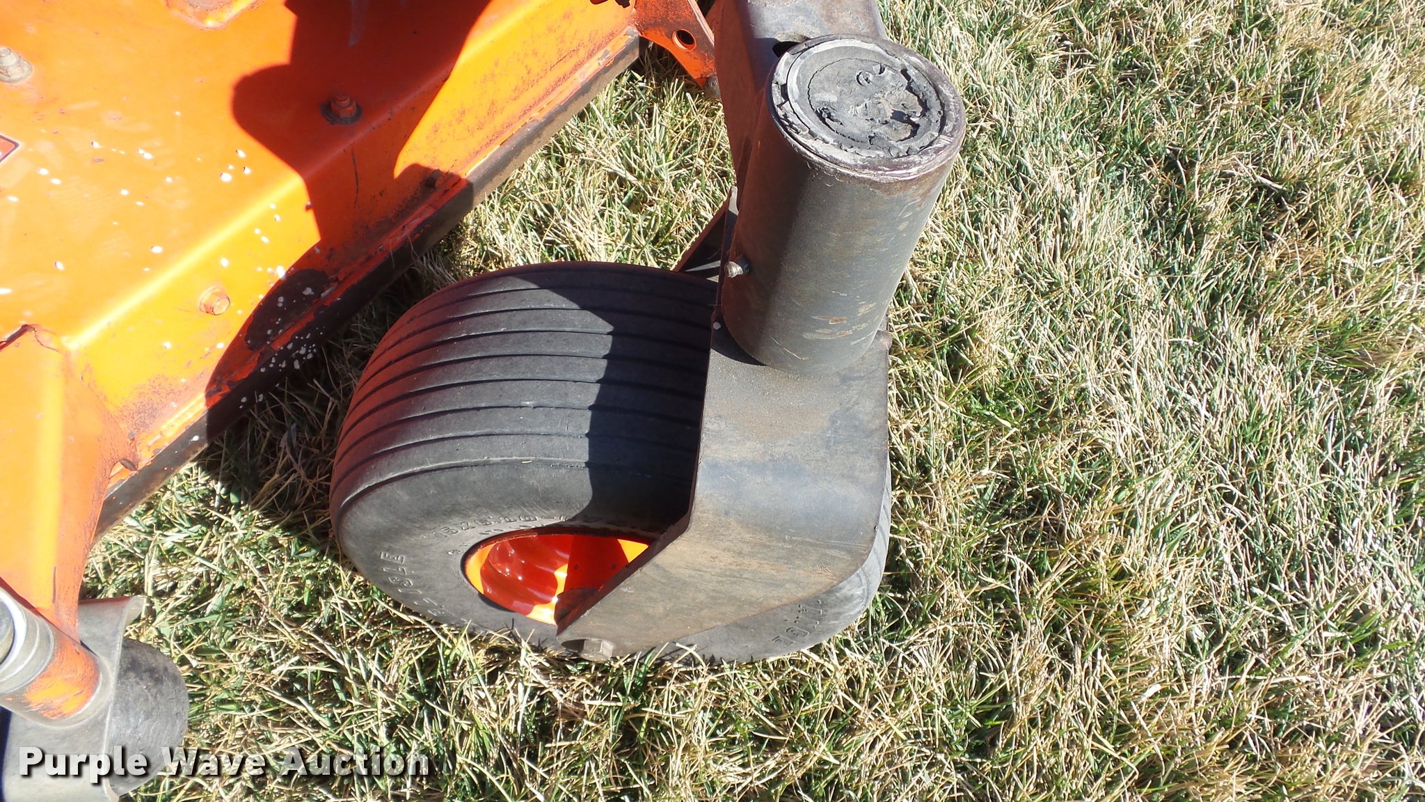 Purple Wave is selling a used Commercial Turf Mower in Kansas. This item is a Kubota ZD331 lawn mower with the following: Model RCK72P-3317, 2,913 hours on meter, 72" cutting width, Kuboata D1305-ET02 1.3L diesel engine, Hydrostatic transmission, ROPS, Model SFZD-F31, Serial 49598, 15 x 6.00-6 front tires, 26 x 12.00-12 rear tires, Serial 40960