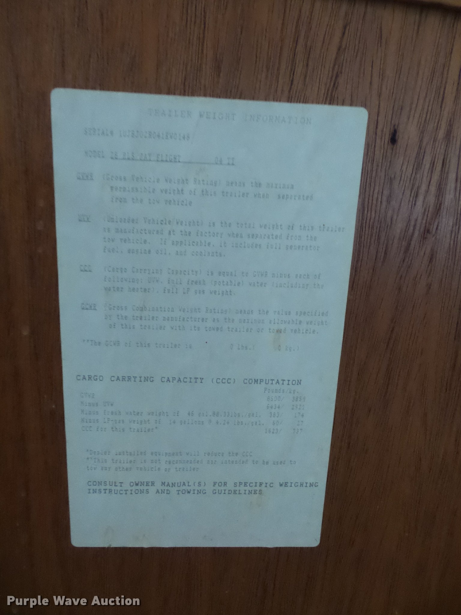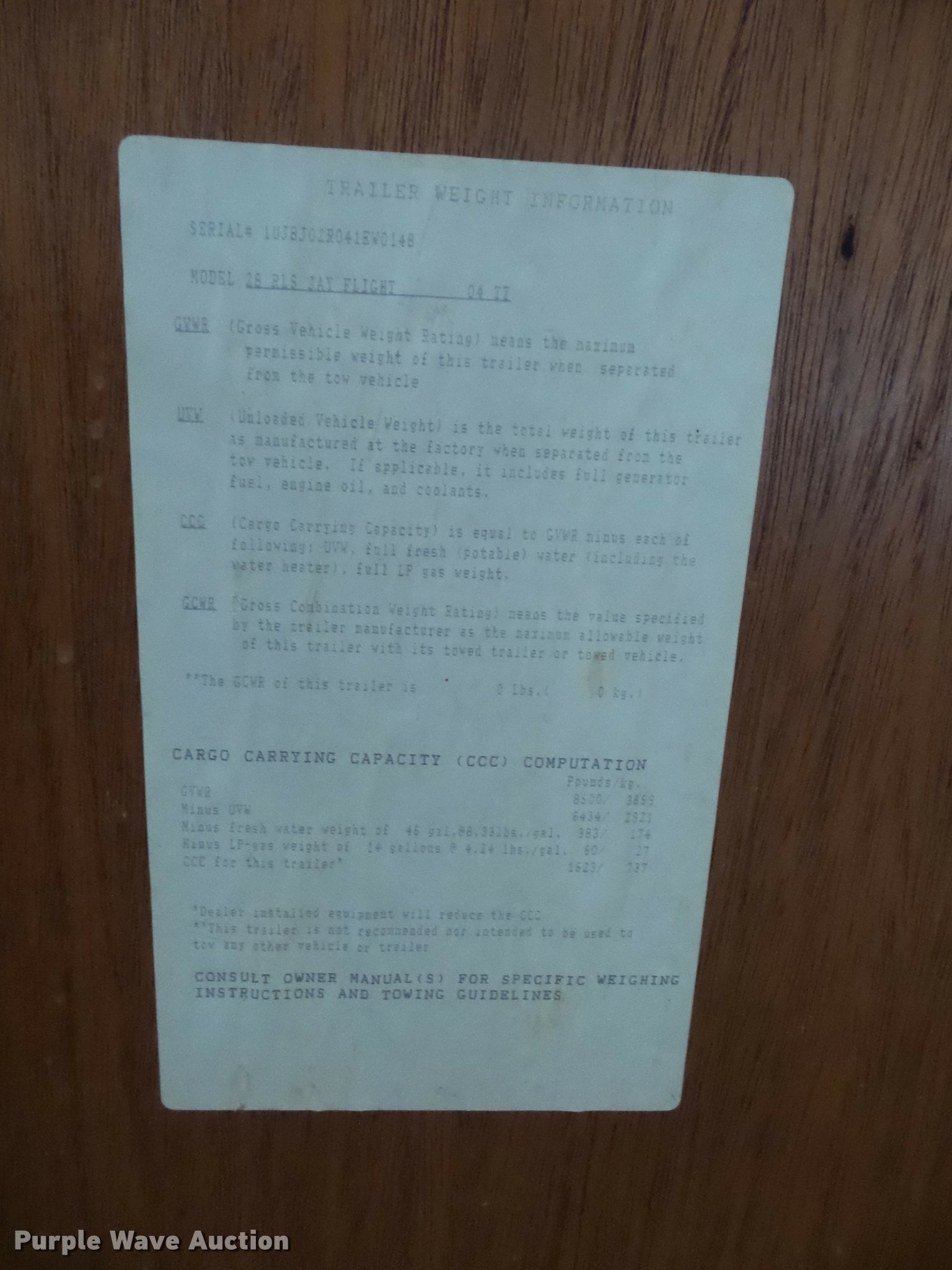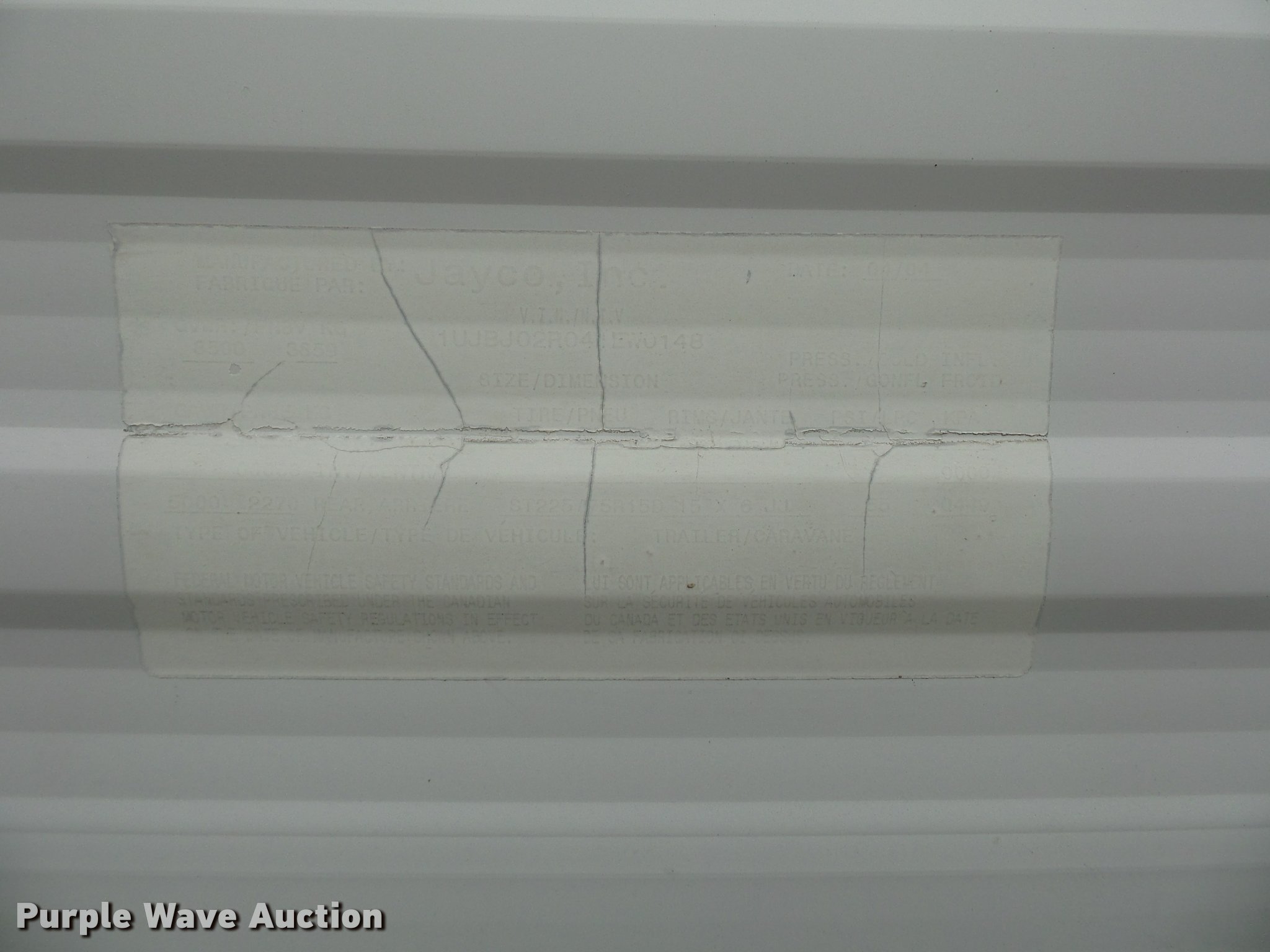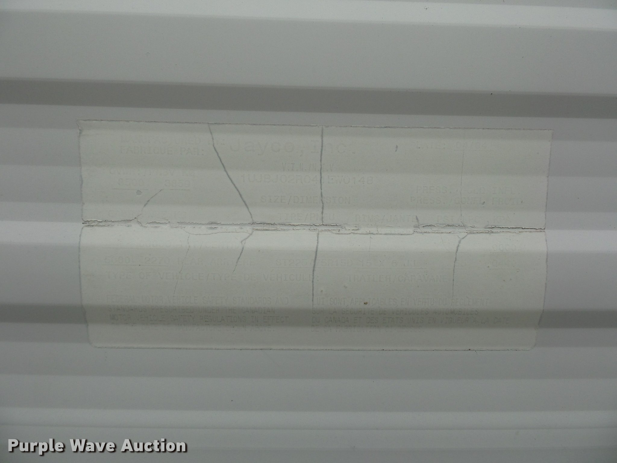 Purple Wave is selling a used RV in Missouri. This item is a 2004 Jayco Jayflight camper with the following: 27'L, Slide-out, Kitchen, Stove, Refrigerator/freezer, Sink, Microwave, Bathroom, Sink, Toilet, Shower, Awning, Manual jack, 2 5/16" ball hitch, 225/75R15 tires, GVWR 6,500 lbs