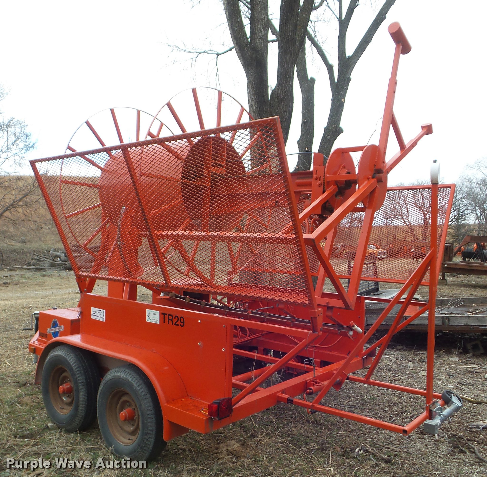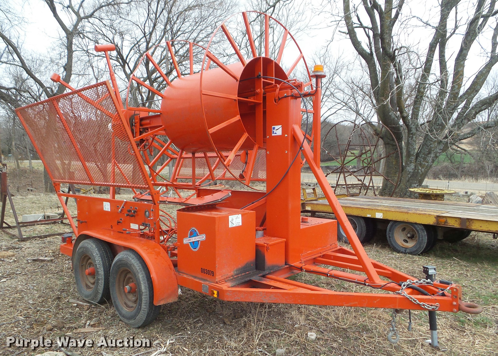 Purple Wave is selling a used Reel Trailer in Kansas. This item is a 1997 Stewart & Stevenson GE93 Figure 8 fiber optic reel carrier with the following: Briggs & Stratton two cylinder gas engine, Hydraulic operation, Auxiliary hydraulic hookups, Side hydraulic controls, Chute, Spool, Electric speed controls, Chute, Spool, Rear jacks, Pintle hitch, Spring suspension, Tandem axle, 7.00-15 tires