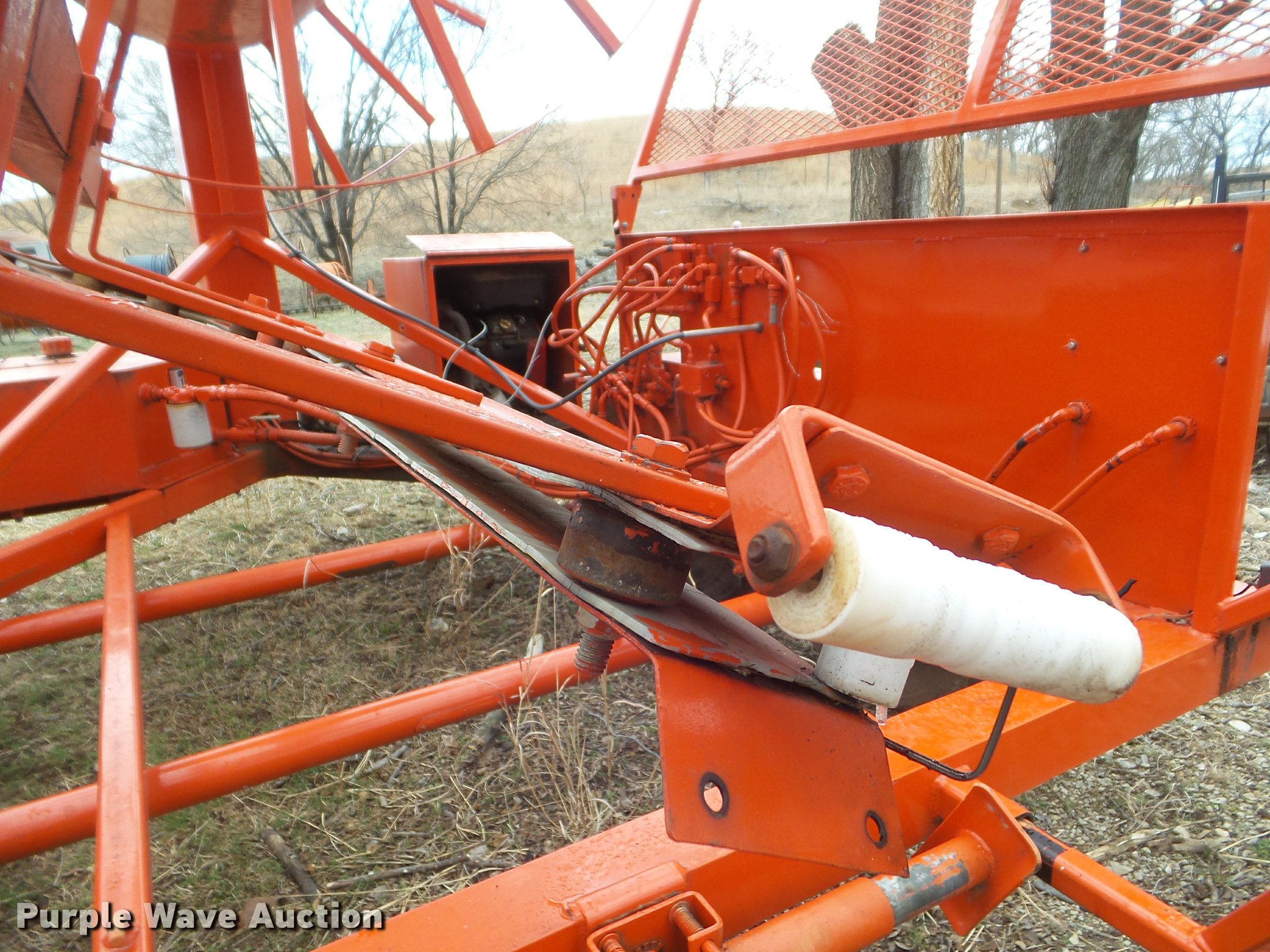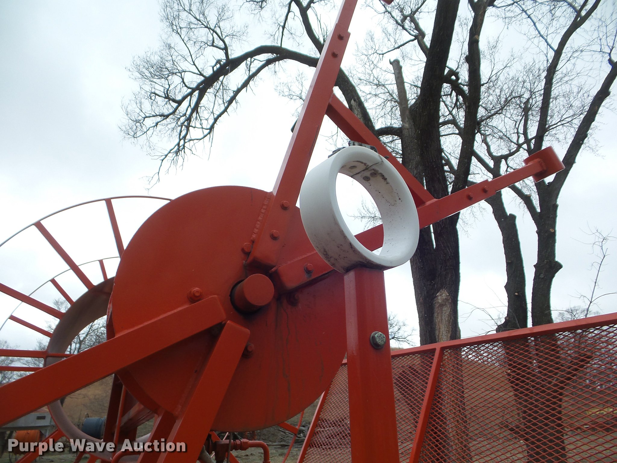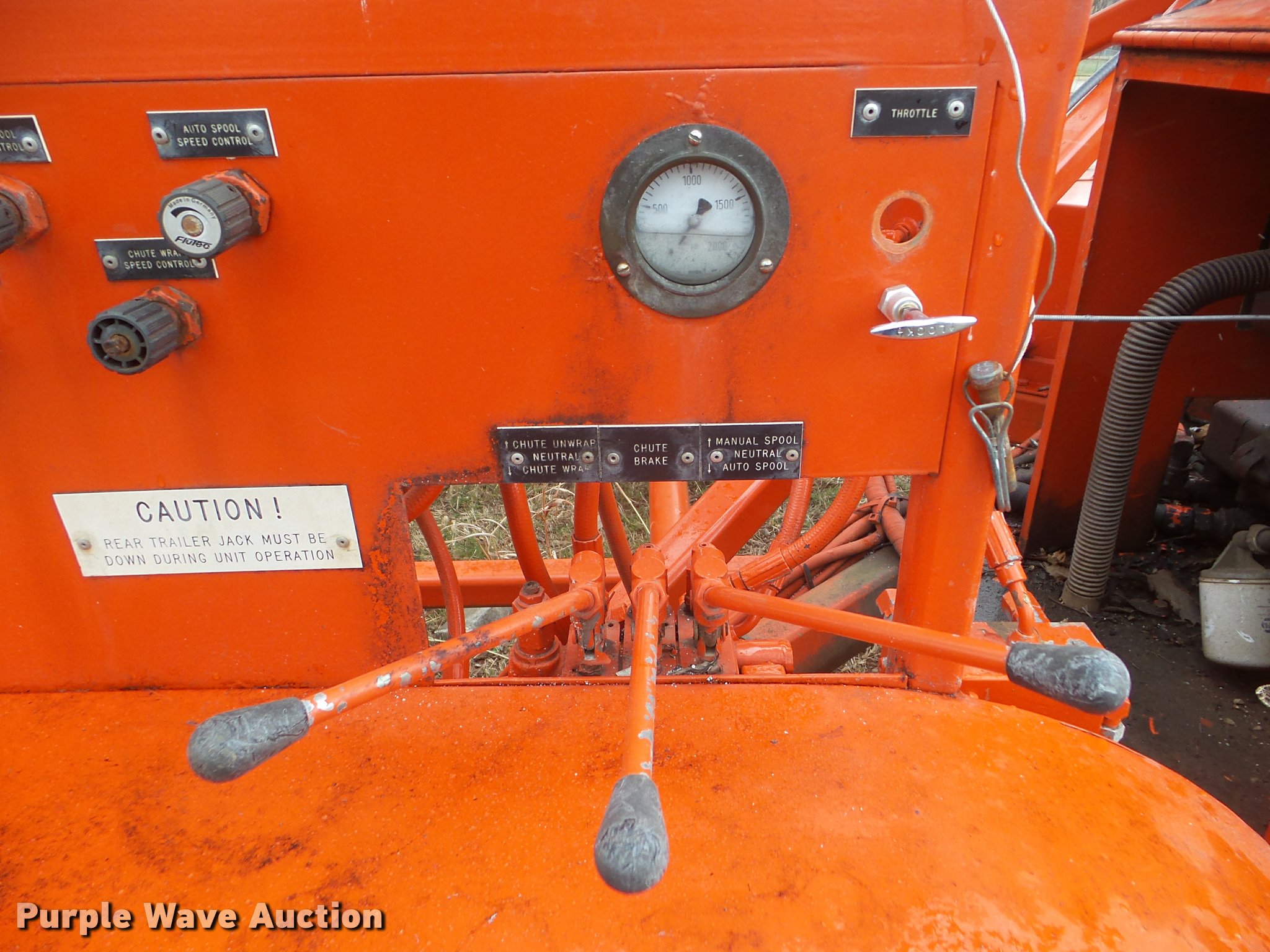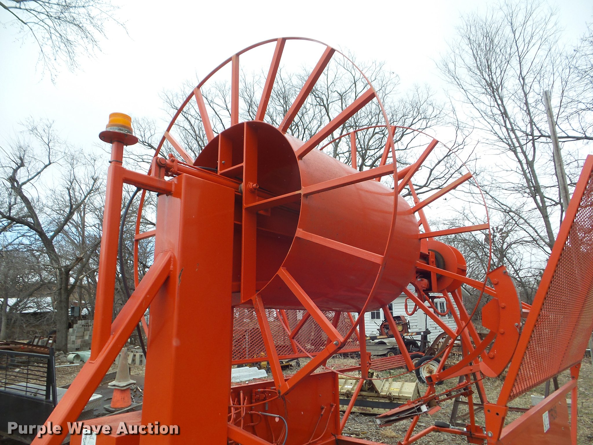1997 Stewart & Stevenson GE93 Figure 8 fiber optic reel carrier. Briggs & Stratton two cylinder gas engine, Hydraulic operation, Auxiliary hydraulic hookups, Side hydraulic controls Chute, Spool, Electric speed controls Chute, Spool, Rear jacks, Pintle hitch, Spring suspension, Tandem axle, 7.00-15 tires. Kansas title. 65333XE06991. Junction City, KS 66441
