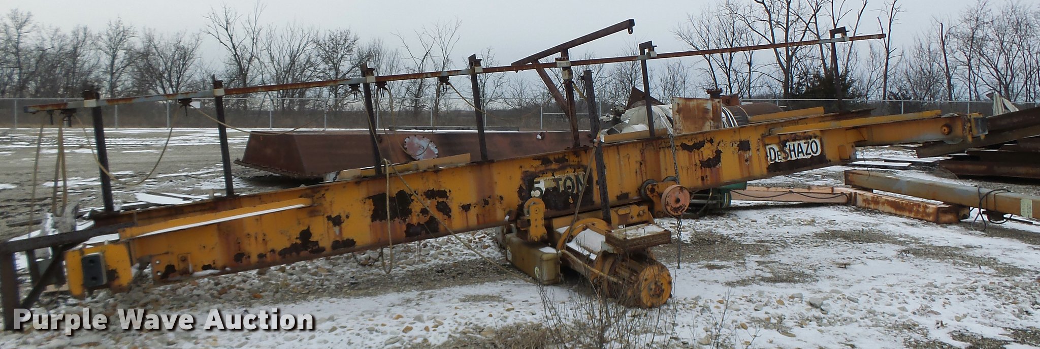 Purple Wave is selling a used Overhead or Straddle Crane in Missouri. This item is a Deshazo overhead crane with the following: Five ton capacity, Unknown operating condition
