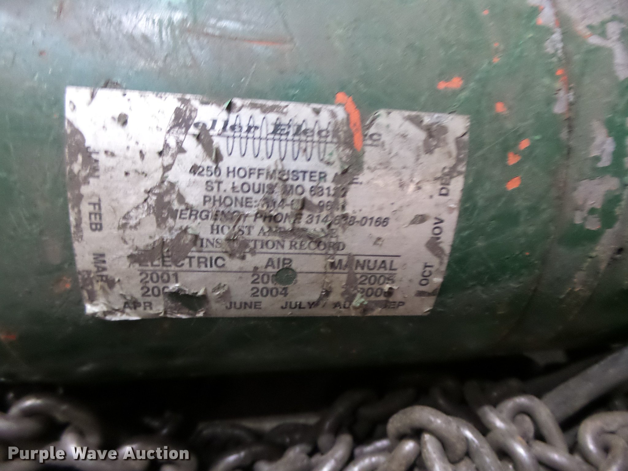 Approximately 12 chain hoists. Various sizes. Associated Electric Cooperative Inc.. 4297 Hwy F. Clifton Hill, MO 65244