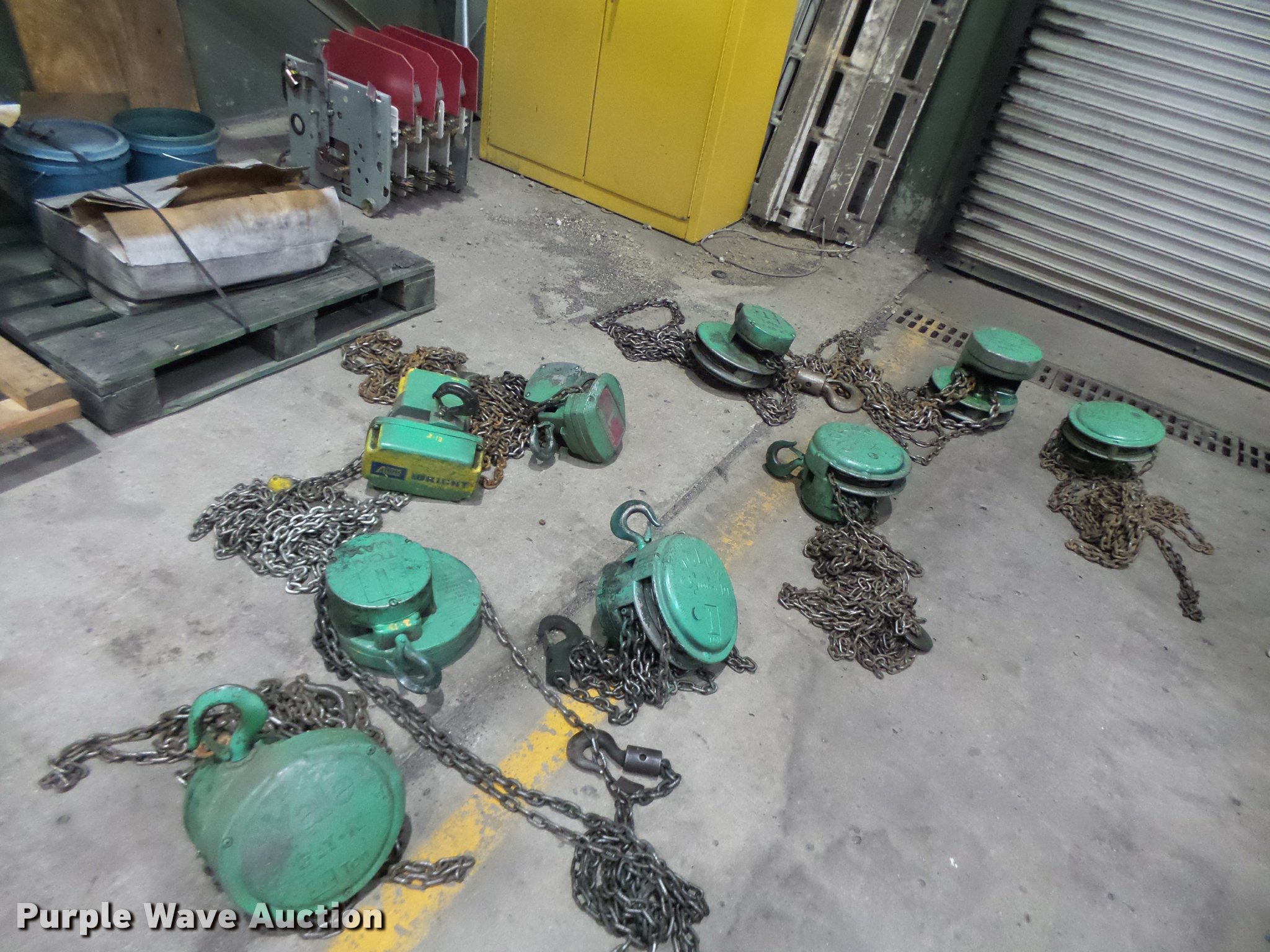 Purple Wave is selling a used Tools in Missouri. This item is a Approximately 12 chain hoists with the following: Various sizes