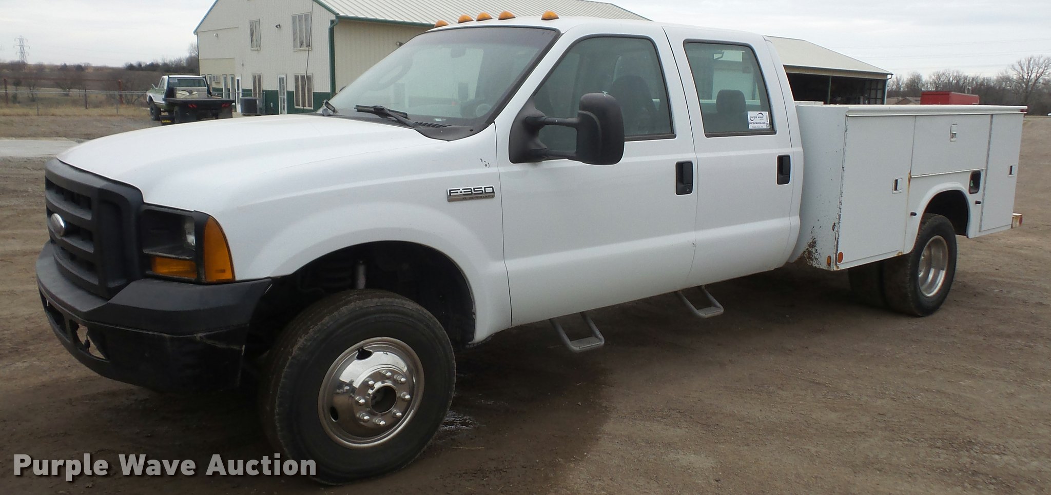 2007 Ford F350 Super Duty Crew Cab utility bed pickup truck has sold in Valley Falls, Kansas for $9020. Item DB0677 sold on March 29th, 2017.