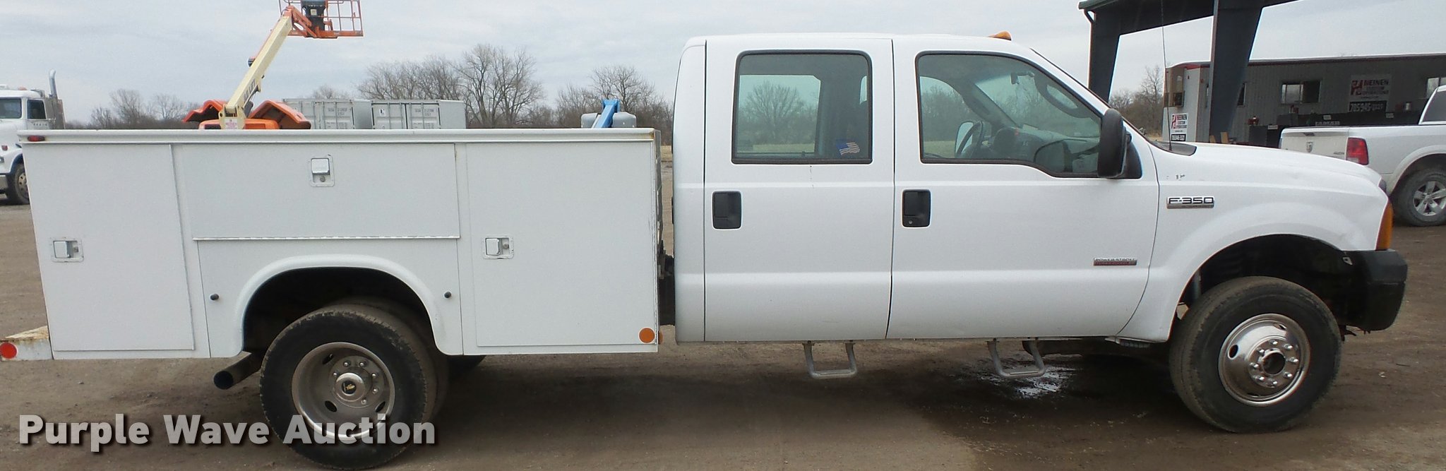 Purple Wave is selling a used 3/4 or 1 Ton Pickup or Van in Kansas. This item is a 2007 Ford F350 Super Duty Crew Cab utility bed pickup truck with the following: 136,271 miles on odometer, 6.0L V8 OHV 32V diesel engine, Five speed manual transmission, Four wheel drive, AC and heat, Tilt, Cruise, AM/FM, Manual windows and locks, Cloth interior, Knapheide utility bed, 9'L x 94"W, Receiver hitch, 245/75R17 tires, Engine replaced with re-manufactured Jasper engine in June 2016 at 124,959 miles