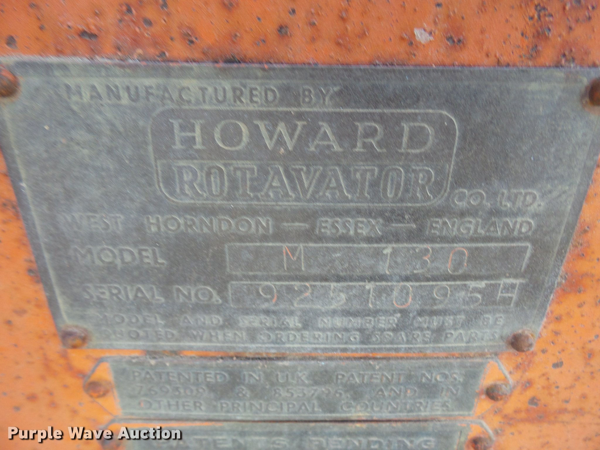 Purple Wave is selling a used Rotary Tillage in Kansas. This item is a Howard M130 rotovator with the following: Hydraulic depth adjustment, 1000 PTO, Big and small shafts included, Three point, 8.5L-14 tires, Serial 9251095H