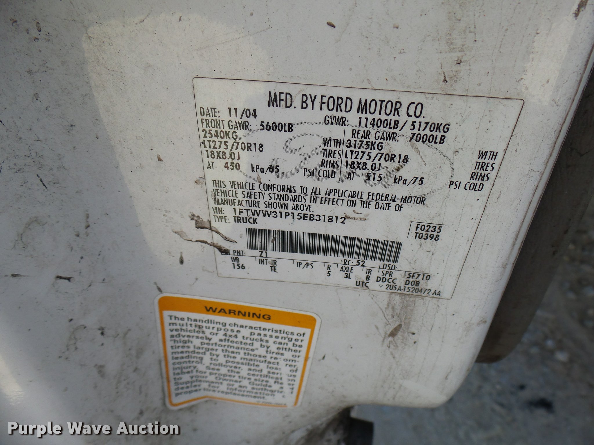 Take a look at this used 2005 Ford F350 Super Duty Crew Cab pickup truck being sold on March 29th, 2017 in the SOLD! March 29 Vehicles and Equipment Auction made by Ford. Take a look at all of the item information below or take a look at similar auctions for Pickups and Vans.