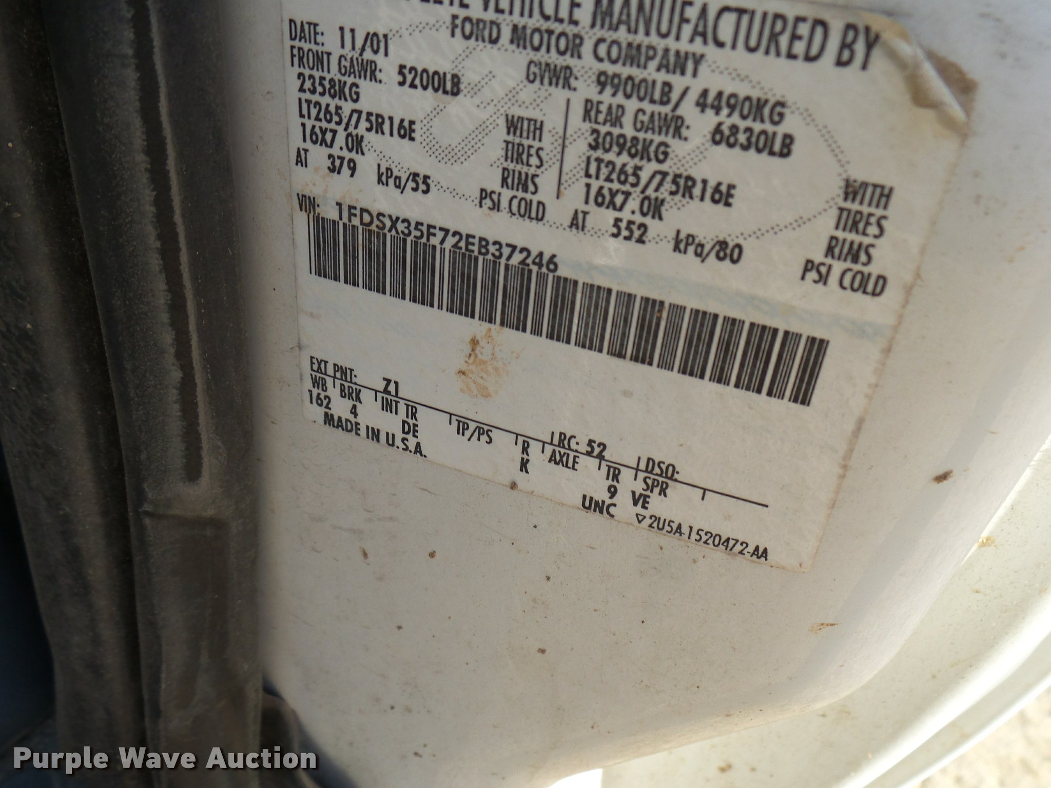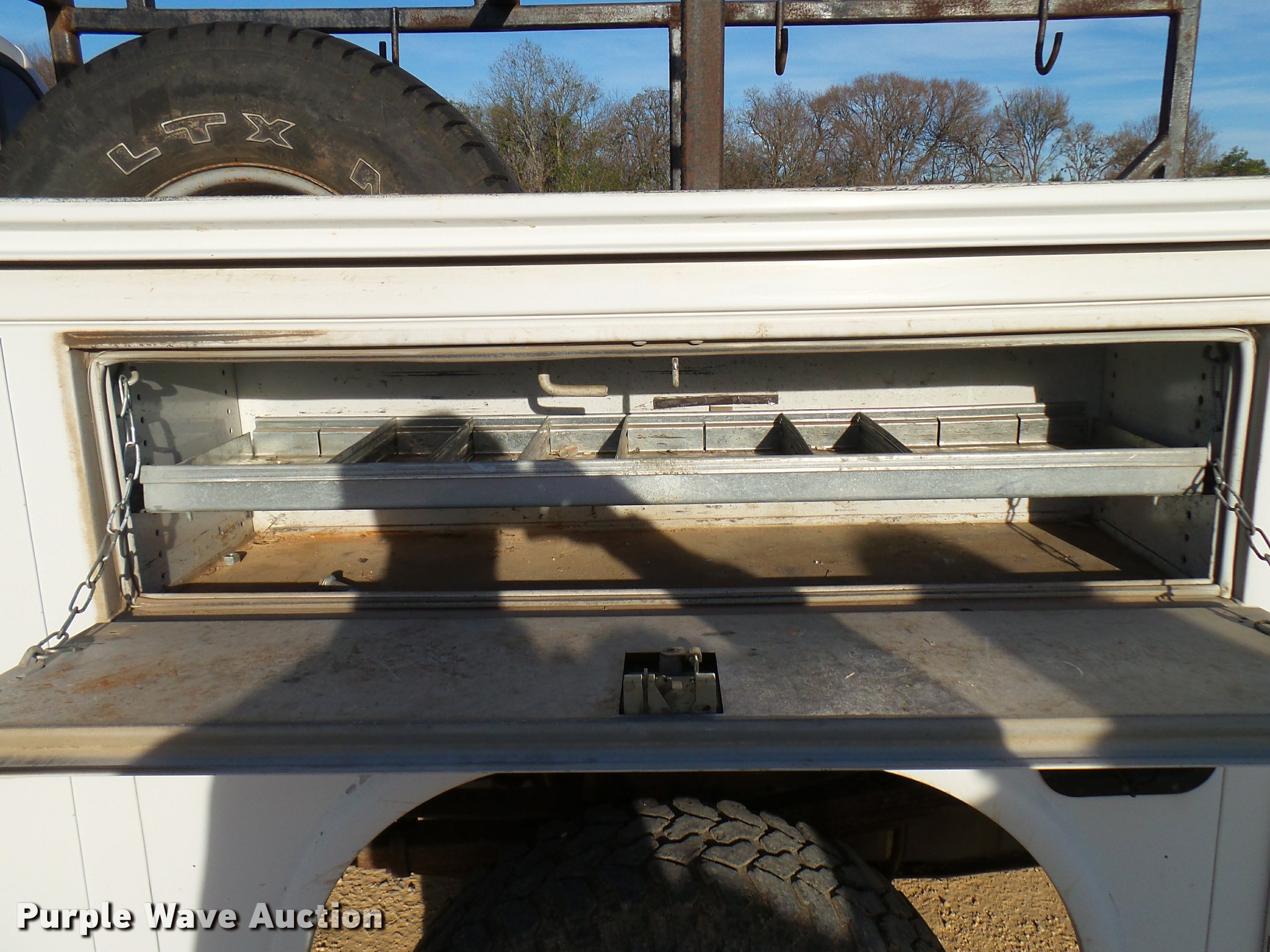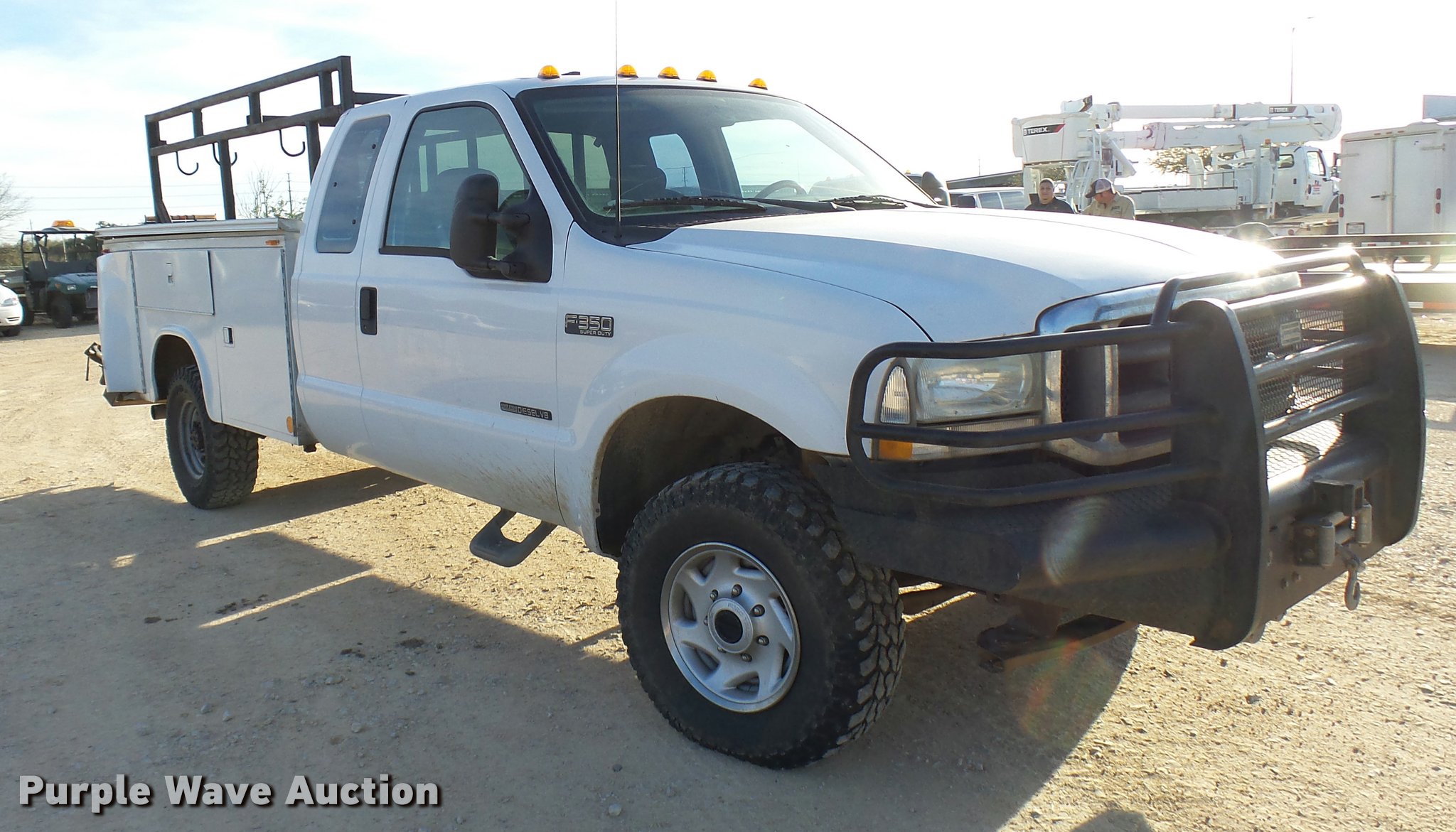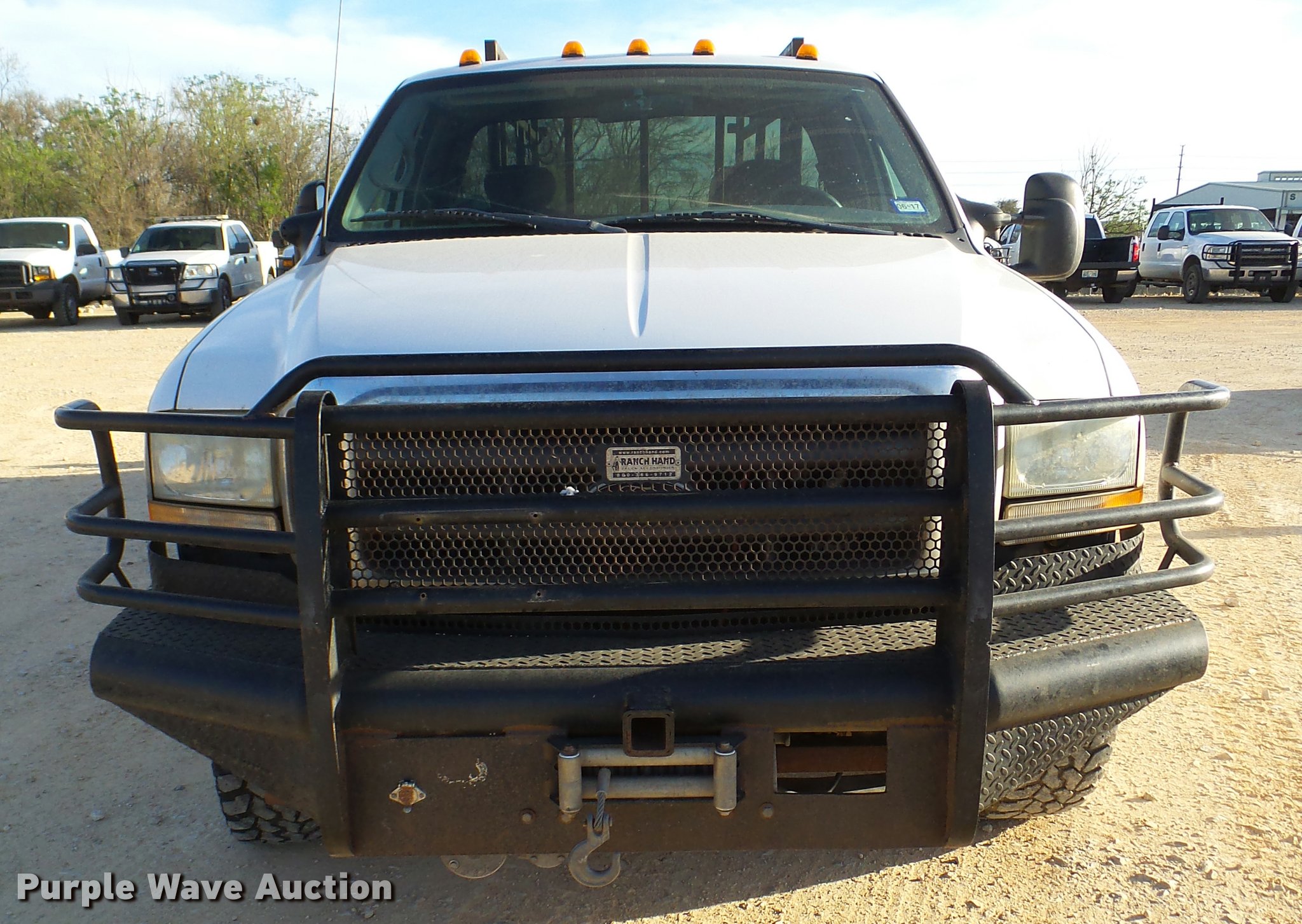 Purple Wave is selling a used 3/4 or 1 Ton Pickup or Van in Texas. This item is a 2002 Ford F350 Super Duty SuperCab pickup truck with the following: 90,385 miles on odometer, 7.3L V8 OHV 16V diesel engine, Automatic transmission, Four wheel drive, AC and heat, Tilt, Cruise, AM/FM/CD, Power windows, locks, and mirrors, Cloth interior, Brake controller, Block heater, Ranch Hand grill guard, Electric winch, Knapheide utility bed, 10'L x 80"W, Receiver hitch, Trailer wiring, L265/75R16 tires, Rear bumper damage, Rear toolbox damage, Unit# 51375