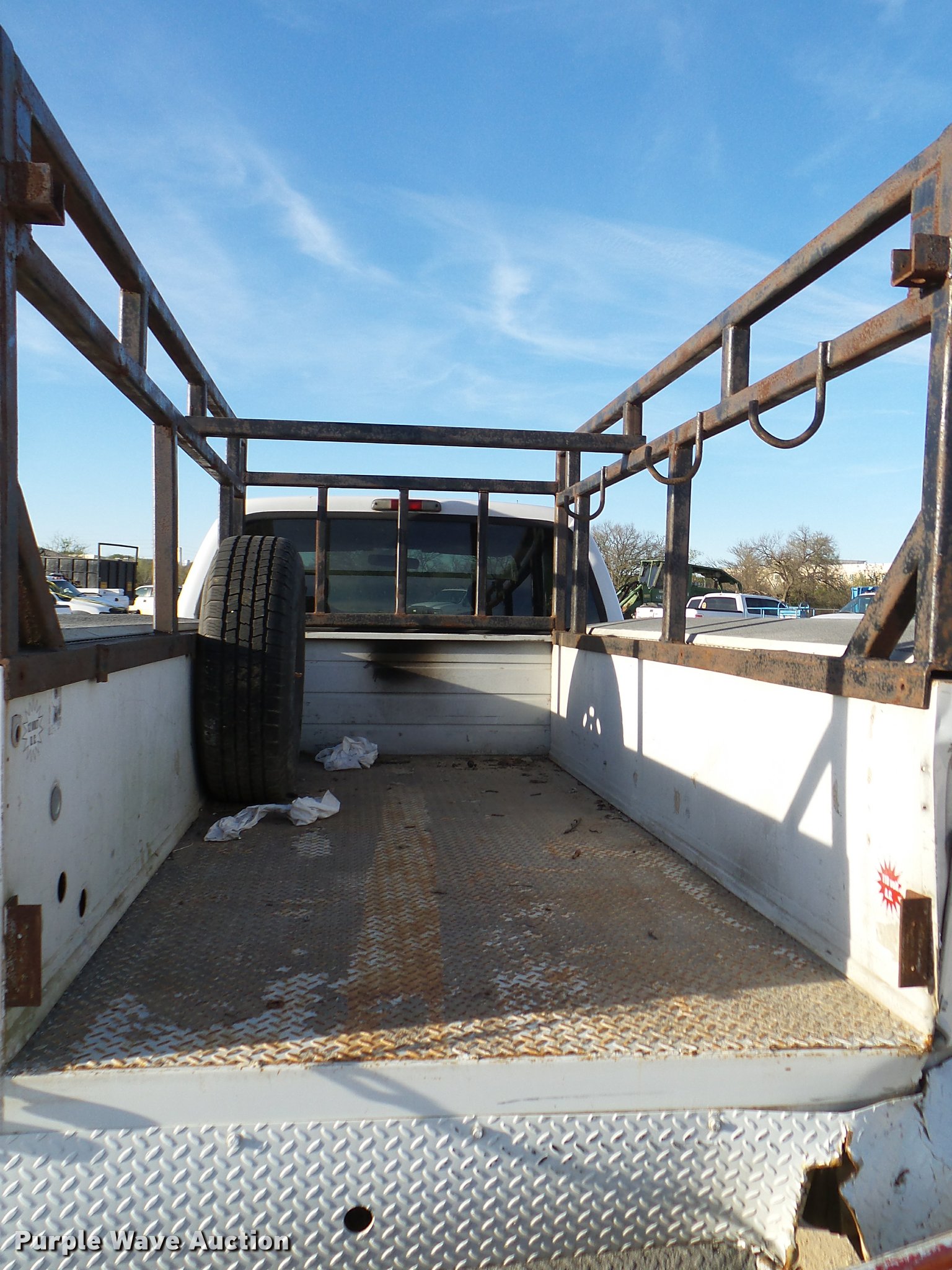 2002 Ford F350 Super Duty SuperCab pickup truck. 90,385 miles on odometer, 7.3L V8 OHV 16V diesel engine, Automatic transmission, Four wheel drive, AC and heat, Tilt, Cruise, AM/FM/CD, Power windows, locks, and mirrors, Cloth interior, Brake controller, Block heater, Ranch Hand grill guard Electric winch, Knapheide utility bed 10'L x 80"W, Receiver hitch, Trailer wiring, L265/75R16 tires, Rear bumper damage, Rear toolbox damage, Unit# 51375. Texas title. 1FDSX35F72EB37246. Open inspection March 28. 6641 E Ben White Blvd. Austin, TX 78744