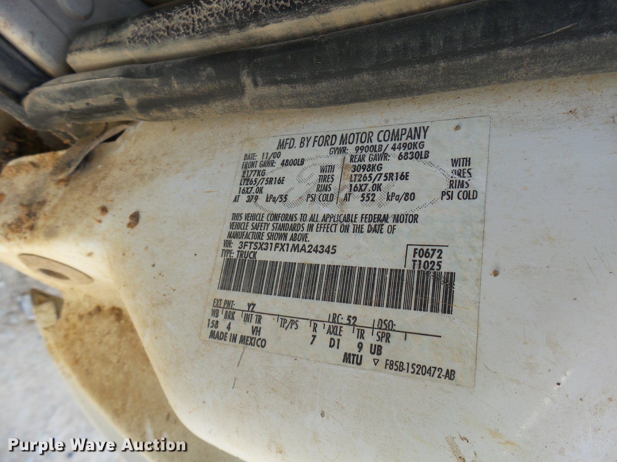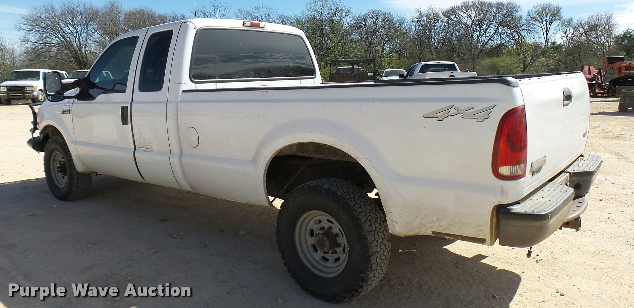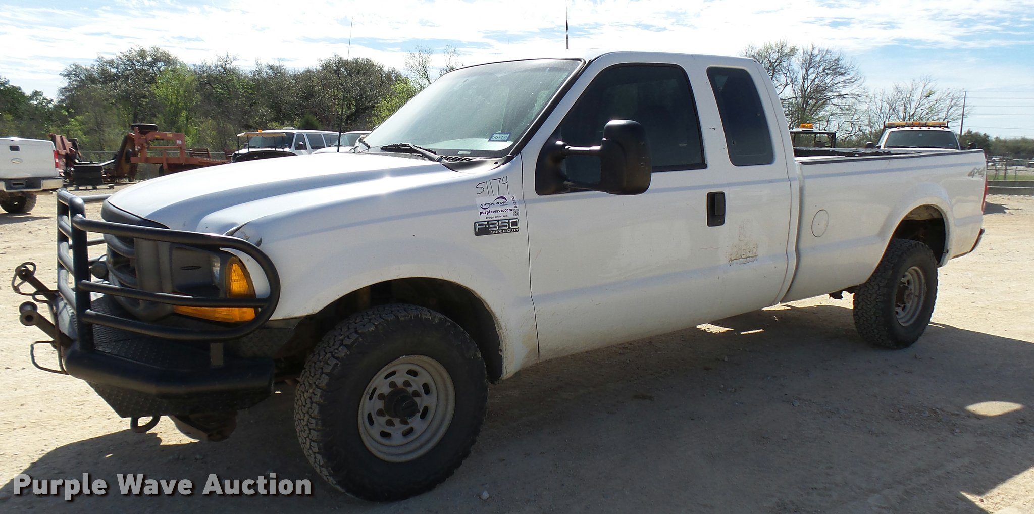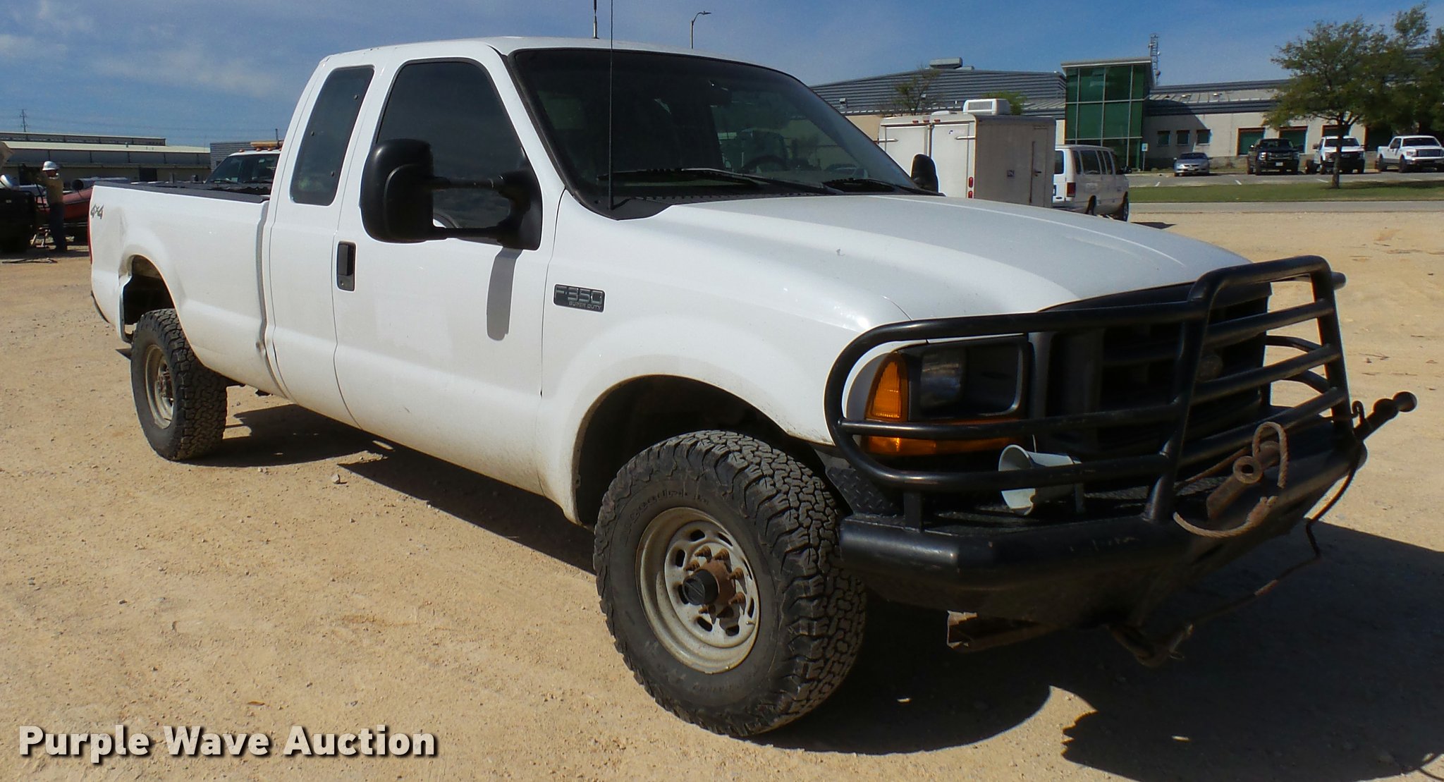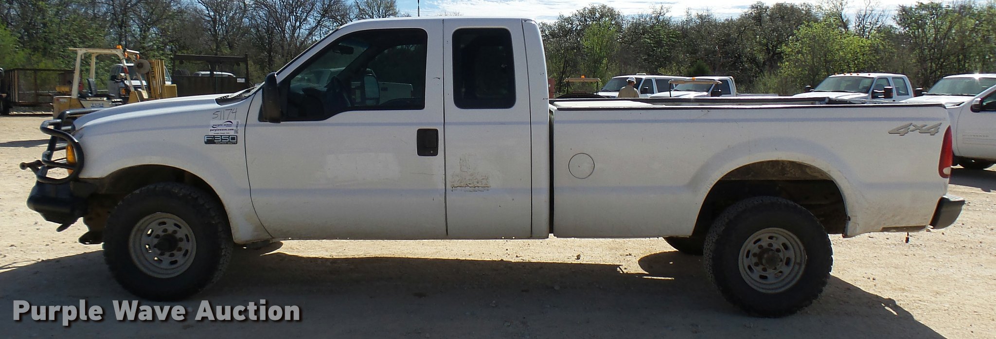 Purple Wave is selling a used 3/4 or 1 Ton Pickup or Van in Texas. This item is a 2001 Ford F350 Super Duty SuperCab pickup truck with the following: 298,860 miles on odometer, 7.3L V8 OHV 16V diesel engine, Automatic transmission, Four wheel drive, AC and heat, Tilt, Cruise, AM/FM, Manual windows and locks, Vinyl interior, Front tow hooks, Ranch Hand grill guard, Long bed, Toolbox, Gooseneck ball, Receiver hitch, 265/75R16 tires, Seat damage, Right rear door will not open, Rear bumper damage, Rear bed damage, Unit# 51124