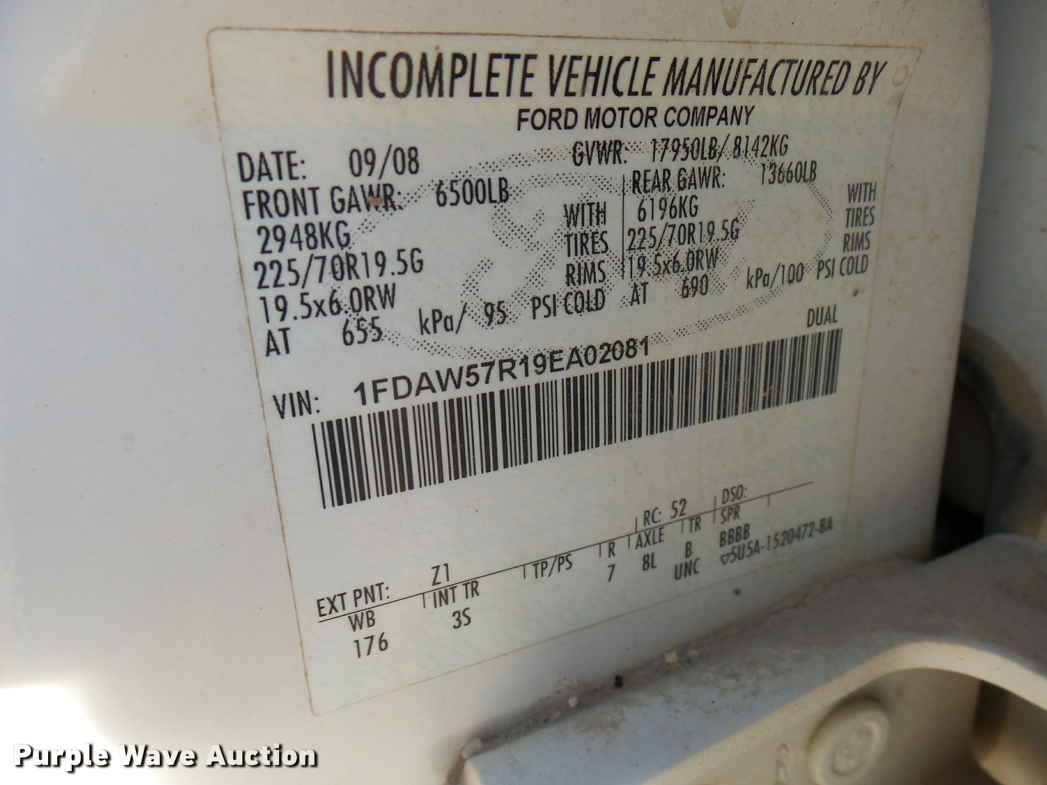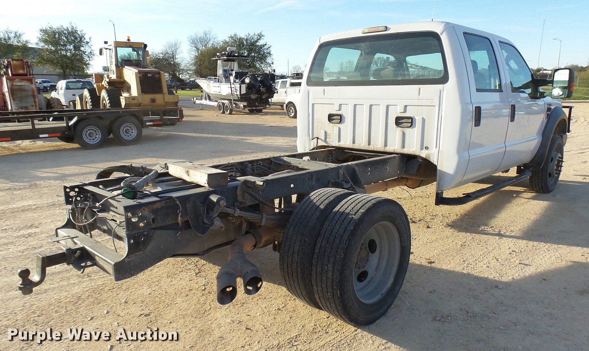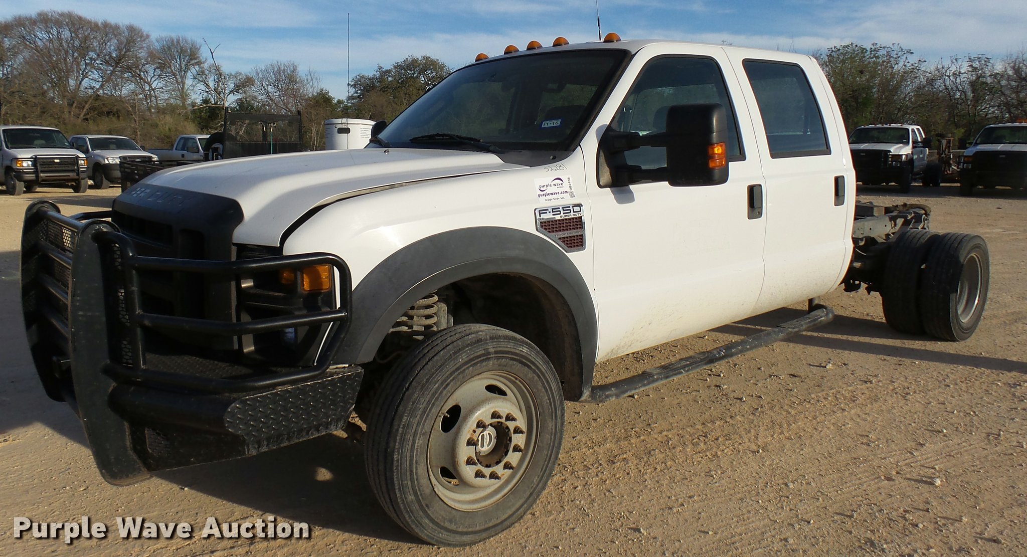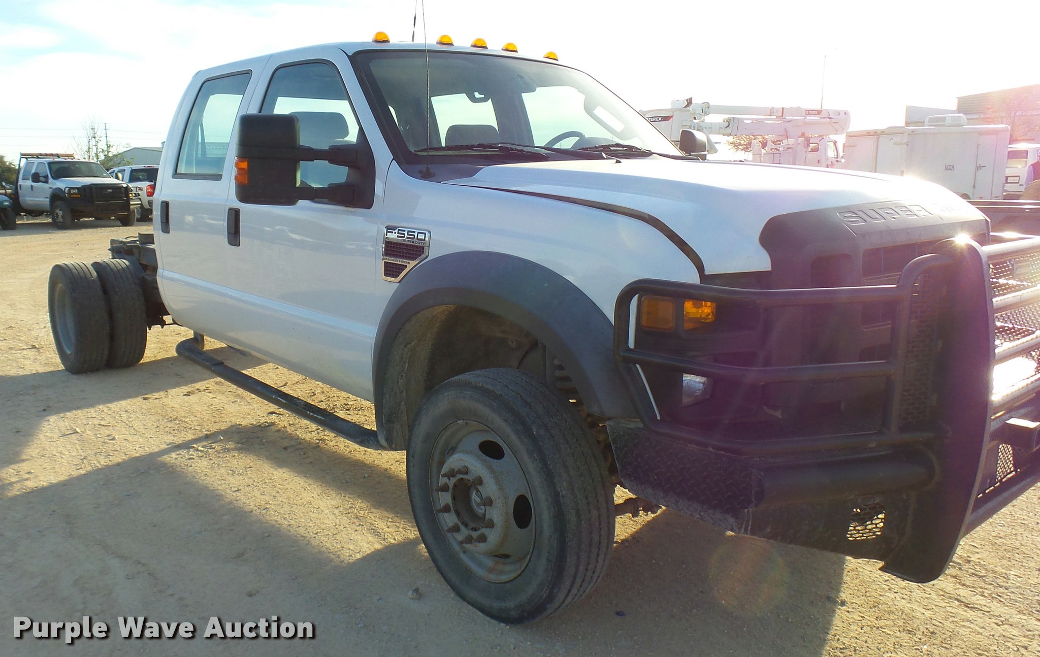 Purple Wave is selling a used Truck Chassis in Texas. This item is a 2009 Ford F550 Super Duty XL Crew Cab truck cab and chassis with the following: 207,096 miles on odometer, 6.4L V8 OHV 32V diesel engine, Automatic transmission, Four wheel drive, AC and heat, Tilt, Cruise, AM/FM, Power windows, locks, and mirrors, Front tow hooks, Running boards, Ranch Hand grill guard, Receiver hitch, 225/70R19.5 tires, Drivers seat damaged, Unit# 52281