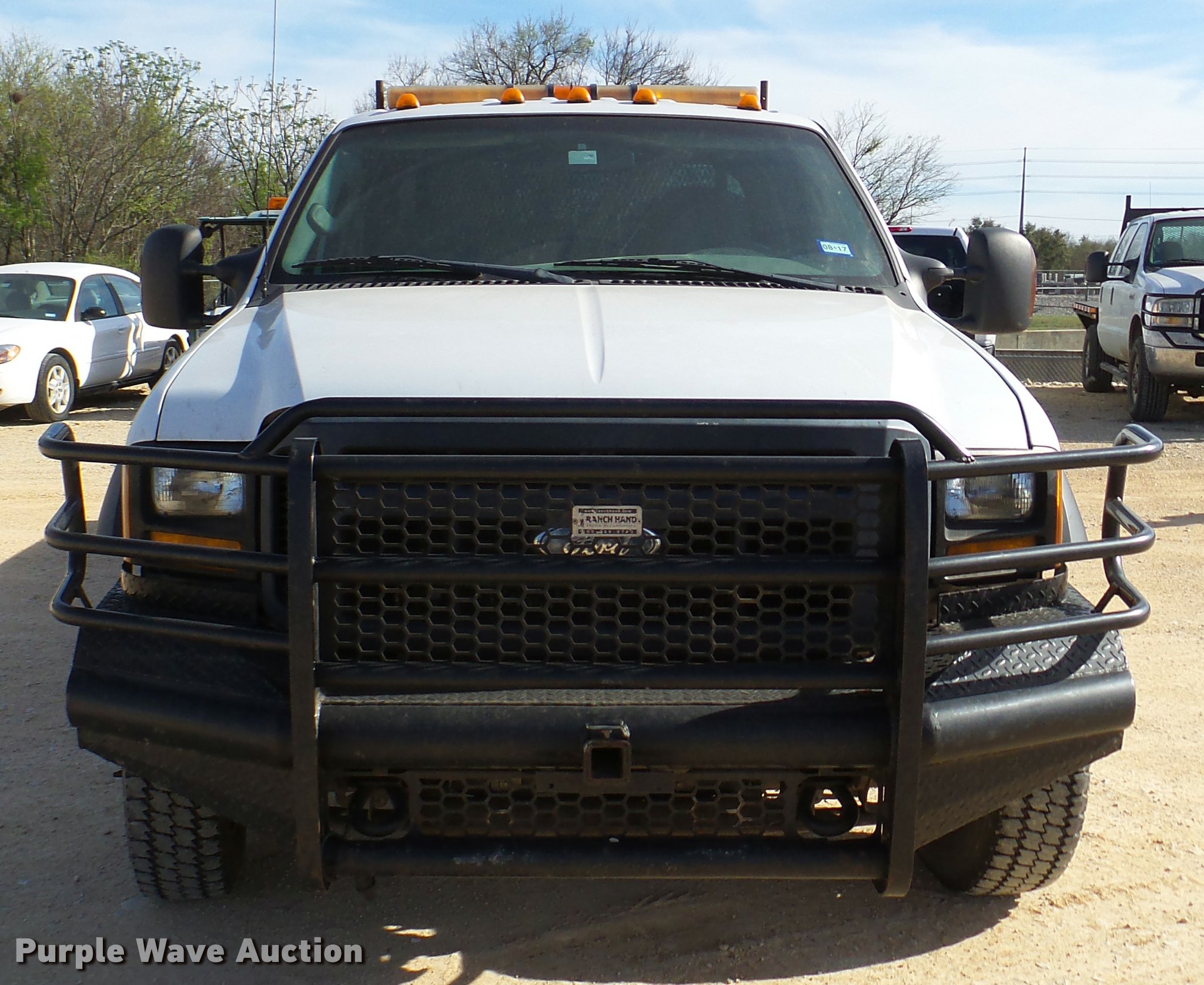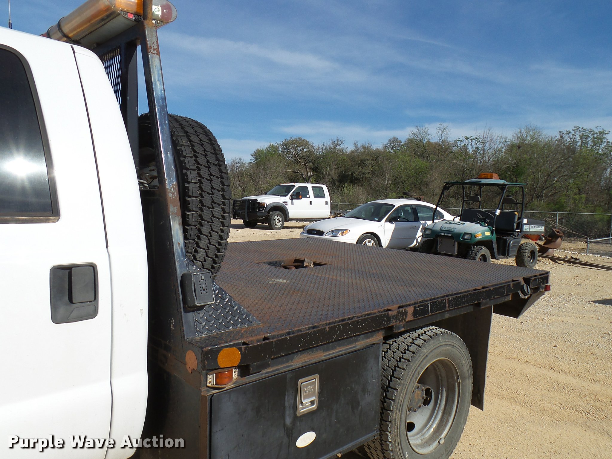 Purple Wave is selling a used Flat Bed Truck in Texas. This item is a 2007 Ford F550 Super Duty XL Crew Cab flatbed truck with the following: 165,459 miles on odometer, 6.0L V8 OHV 32V turbo diesel engine, Automatic transmission, Four wheel drive, AC and heat, Tilt, Cruise, AM/FM/CD, Power windows, locks, and mirrors, Cloth interior, Fog lights, Front tow hooks, Entry steps, Ranch Hand grill guard, 9'L x 8'W flatbed, Headache rack, Lights, Toolbox, Gooseneck ball, Receiver hitch, Trailer wiring, 225/70R16.5 tires, Unit# 51973