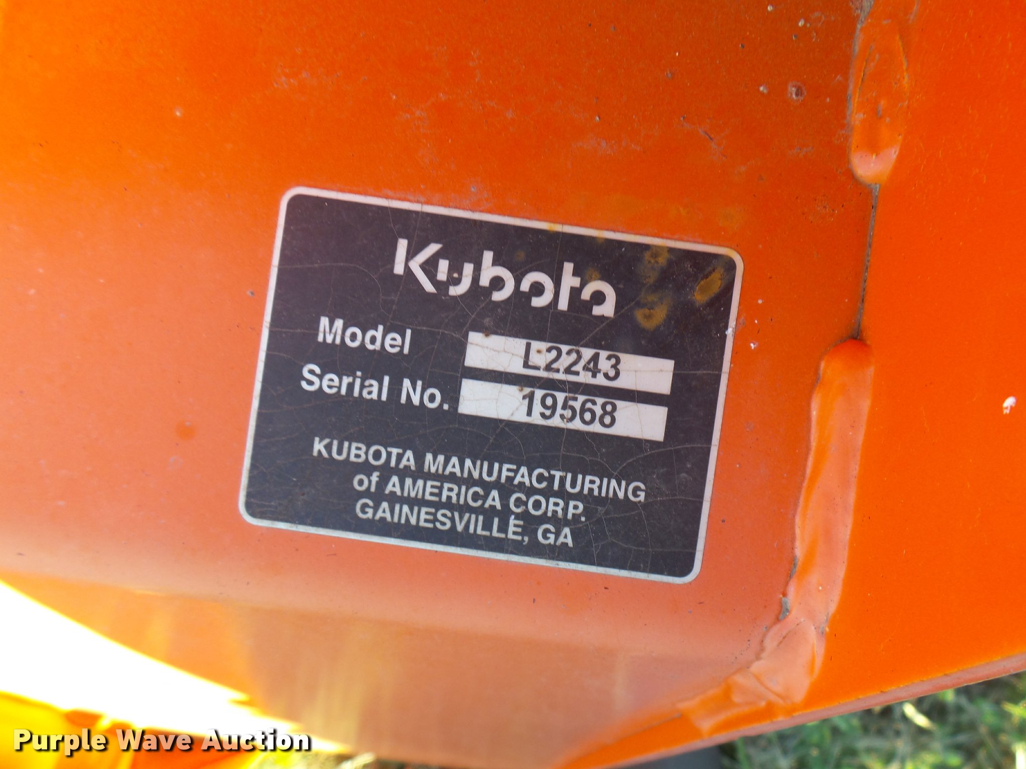 Purple Wave is selling a used Ag Tractor Loader or Attach. in Oklahoma. This item is a Kubota L2243 bucket with the following: Serial 19568