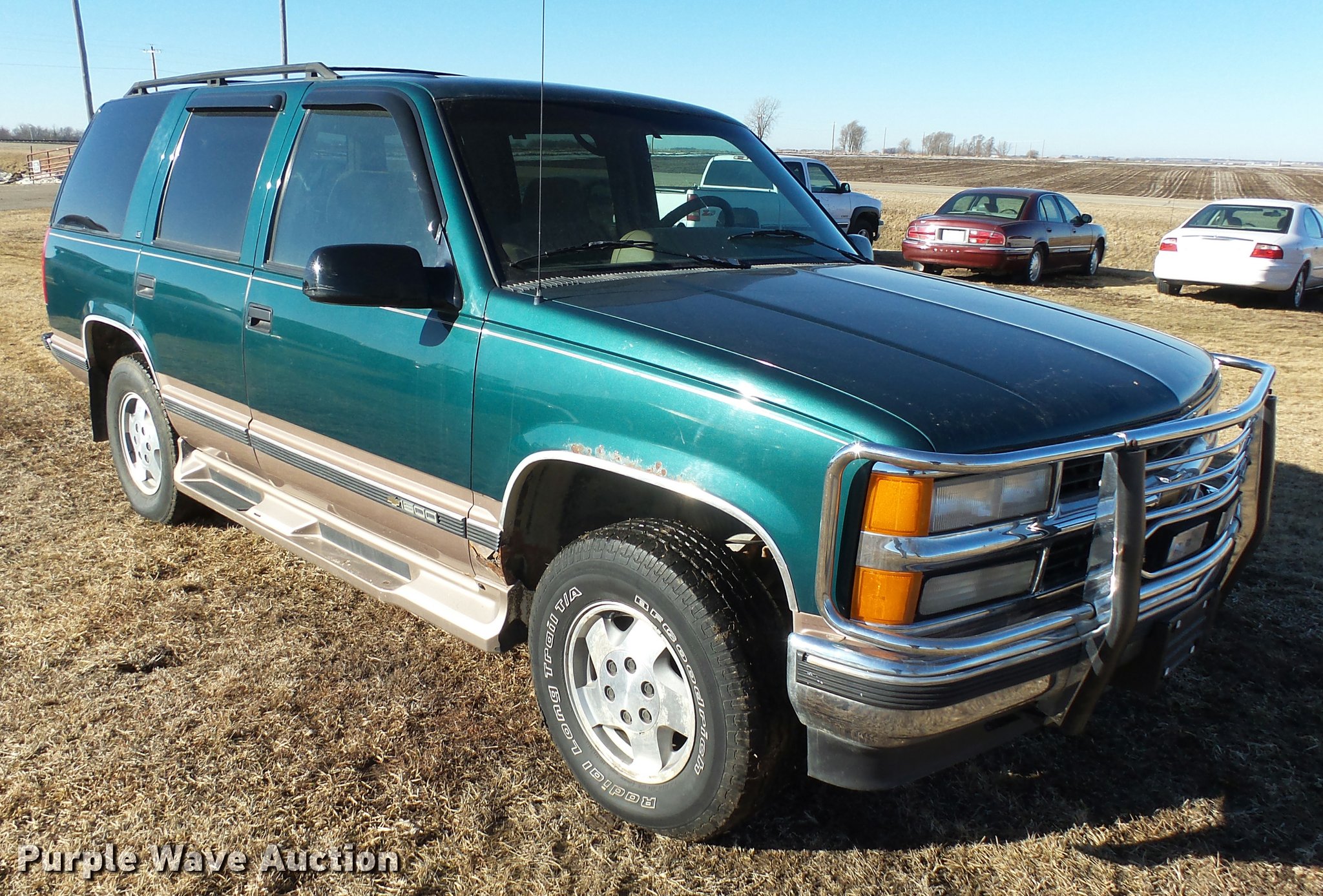 Purple Wave is selling a used Passenger Vehicle in Iowa. This item is a 1995 Chevrolet Tahoe SUV with the following: 193,006 miles on odometer, 5.7L V8 OHV 16V gas engine, Automatic transmission, Four wheel drive, AC and heat, Tilt, Cruise, AM/FM/CD, Power windows, locks, mirrors, and seat, Cloth interior, Fog lights, Running boards, Grill guard, Receiver hitch, LT245/75R16 tires