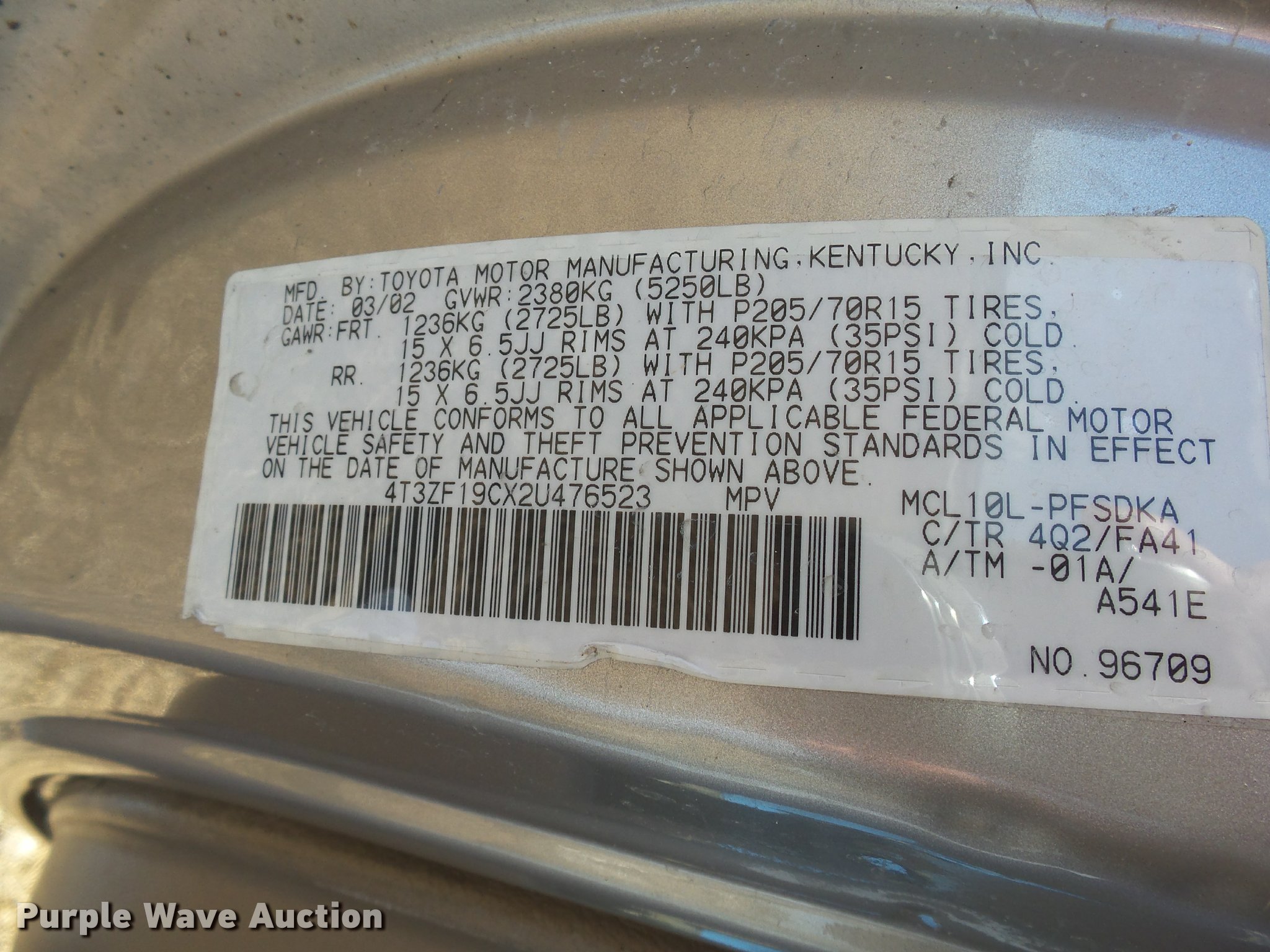2002 Toyota Sienna CE van | SOLD! March 29 Vehicles and Equipment Auction