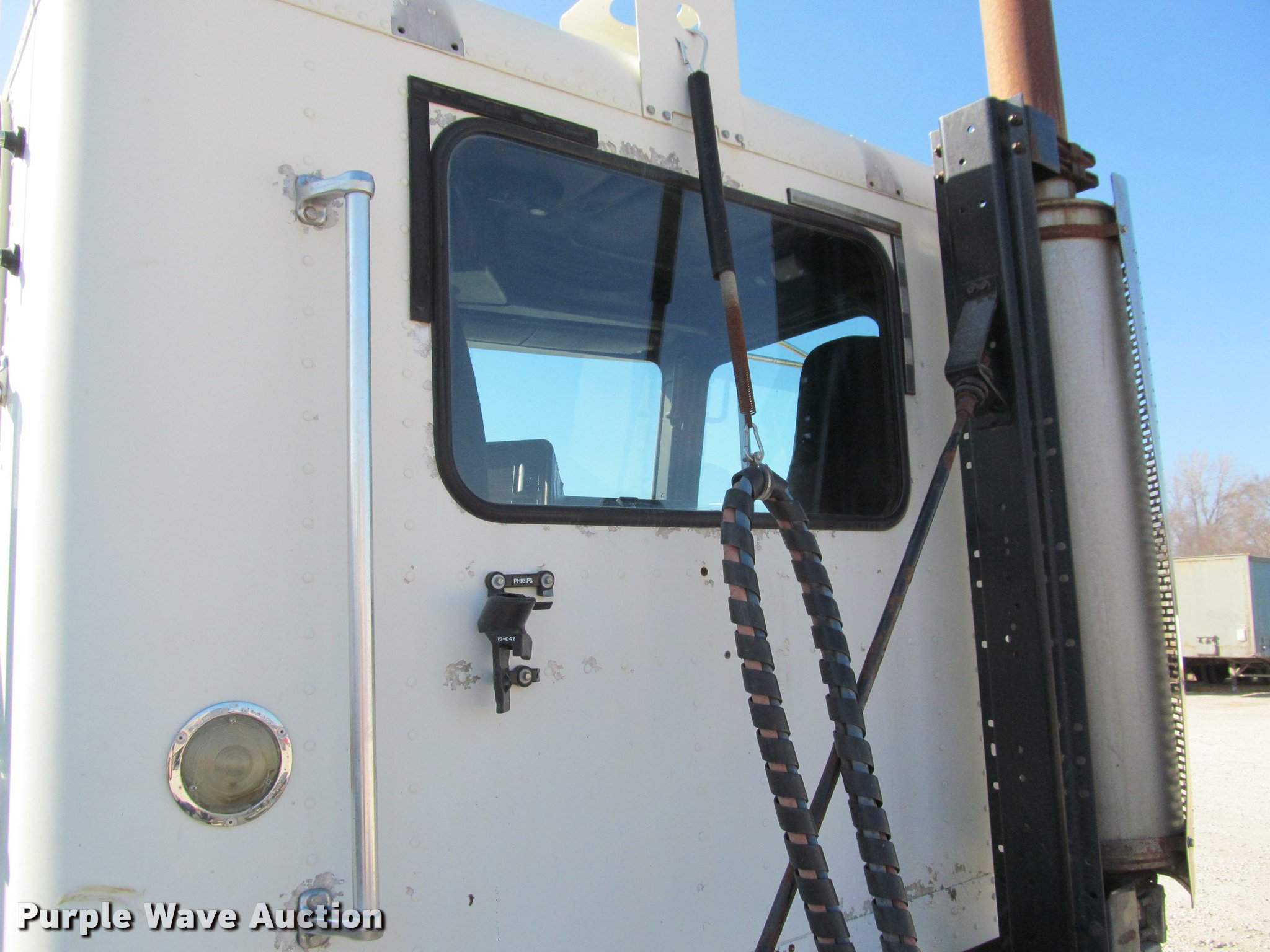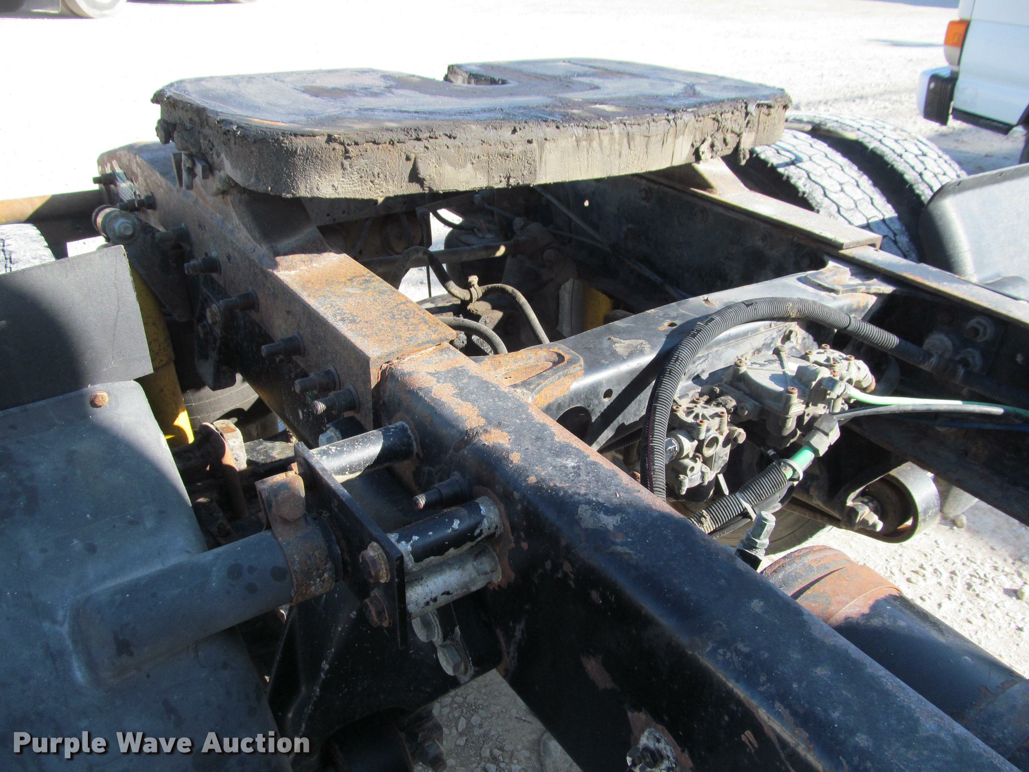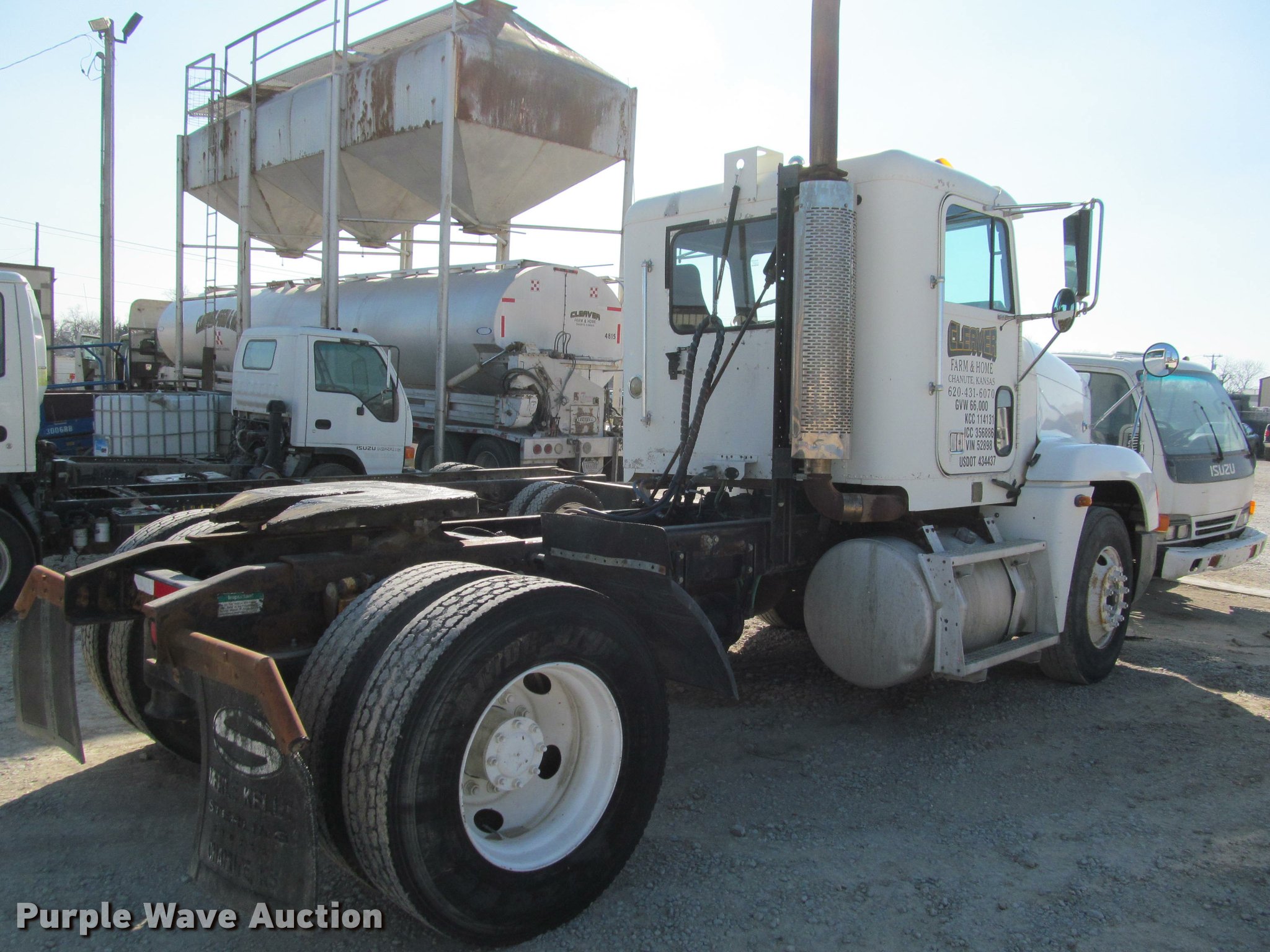 Purple Wave is selling a used Truck Tractor in Kansas. This item is a 1999 Freightliner FLD semi truck with the following: 129,890 miles on odometer, Detroit Diesel Series 60 11.1L L6 turbo diesel engine, Serial 06R0417965, Eaton Fuller 10 speed manual transmission, Single axle, AC and heat, Tilt, Telescoping steering wheel, Cruise, AM/FM/CD, Power windows, Power and heated mirrors, Air suspension seat, Block heater, Dump valves, Exterior visor, Single rear exhaust stack, Fixed fifth wheel plate, Dual fuel tanks, Mud flaps, Spring suspension, Air brakes, Engine brake, 11R22.5 tires, GVWR 33,000 lbs, FAWR 12,000 lbs, RAWR 21,000 lbs