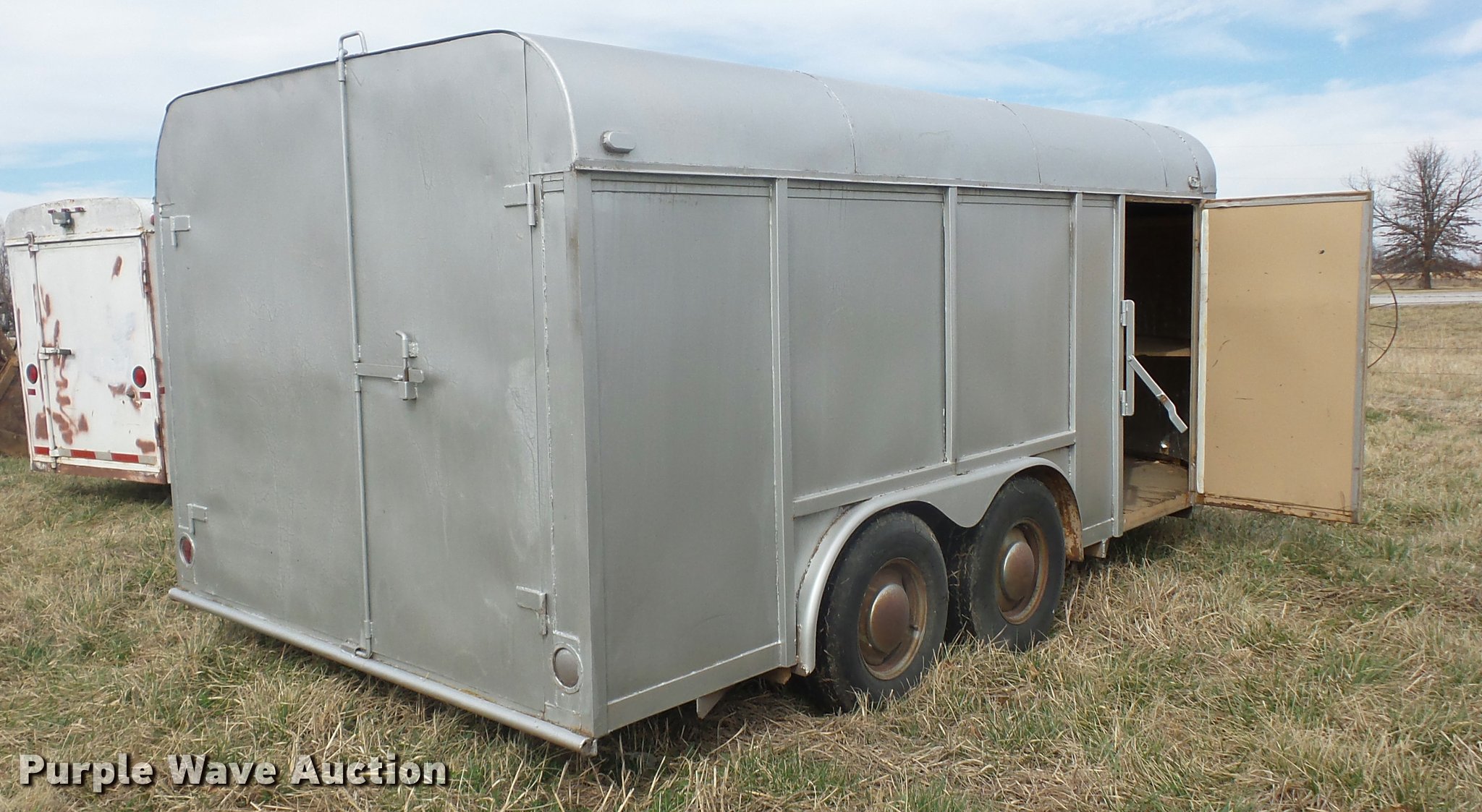 Purple Wave is selling a used Enclosed Cargo Trailer in Missouri. This item is a 1992 Calvia enclosed cargo trailer with the following: 16'L x 82"W, 70"H, Side door, Rear door, 2" ball hitch, Manual jack, Electric brakes, Tandem axle, 7-15 tires