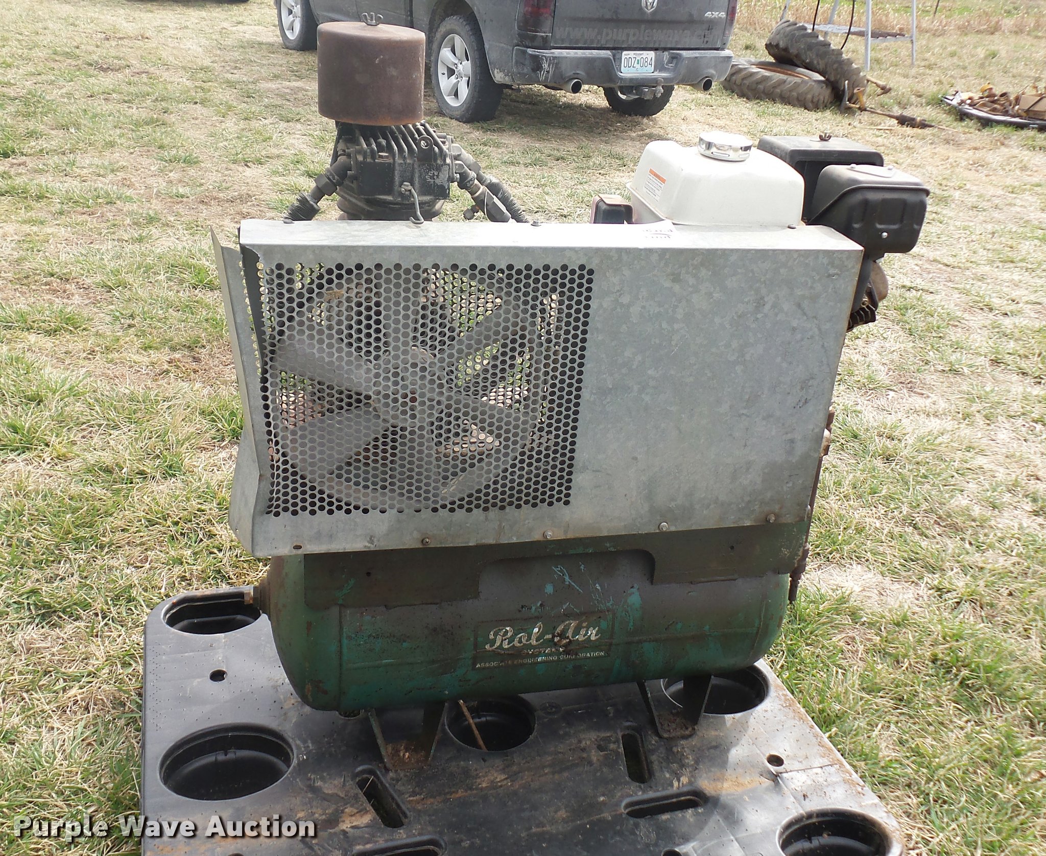 Purple Wave is selling a used Air Compressor in Missouri. This item is a Rol-air air compressor with the following: Gas engine, Unknown operating condition
