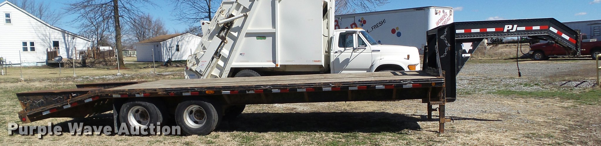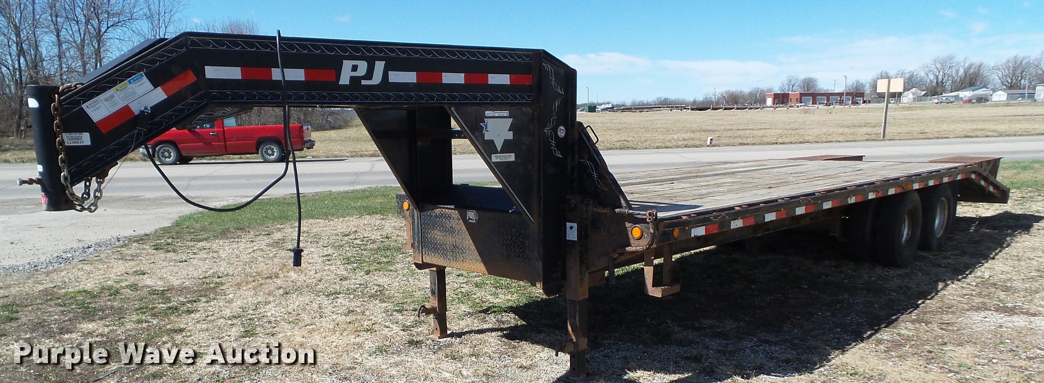 2009 PJ FD262 equipment trailer. 35' overall length, 26'L x 96"W , 20.5'L wood deck, 5.5'L beaver tail, 60" ramps, Stake side pockets, Toolbox, Dual leg landing gear, Gooseneck hitch, Tandem axle, Spring suspension, Electric brakes, Steel wheels, ST235/85R16 tires, GAWR 20,000 lbs. Iowa title. Seller is an Iowa licensed motor vehicle dealer. The buyer may be required to pay sales tax and/or registration fees to the dealer prior to taking possession. Title will be assigned and distributed by the dealer. Please contact the seller for distribution questions. 4P5FD262191130627. 22900 IA-5. Centerville, IA 52544