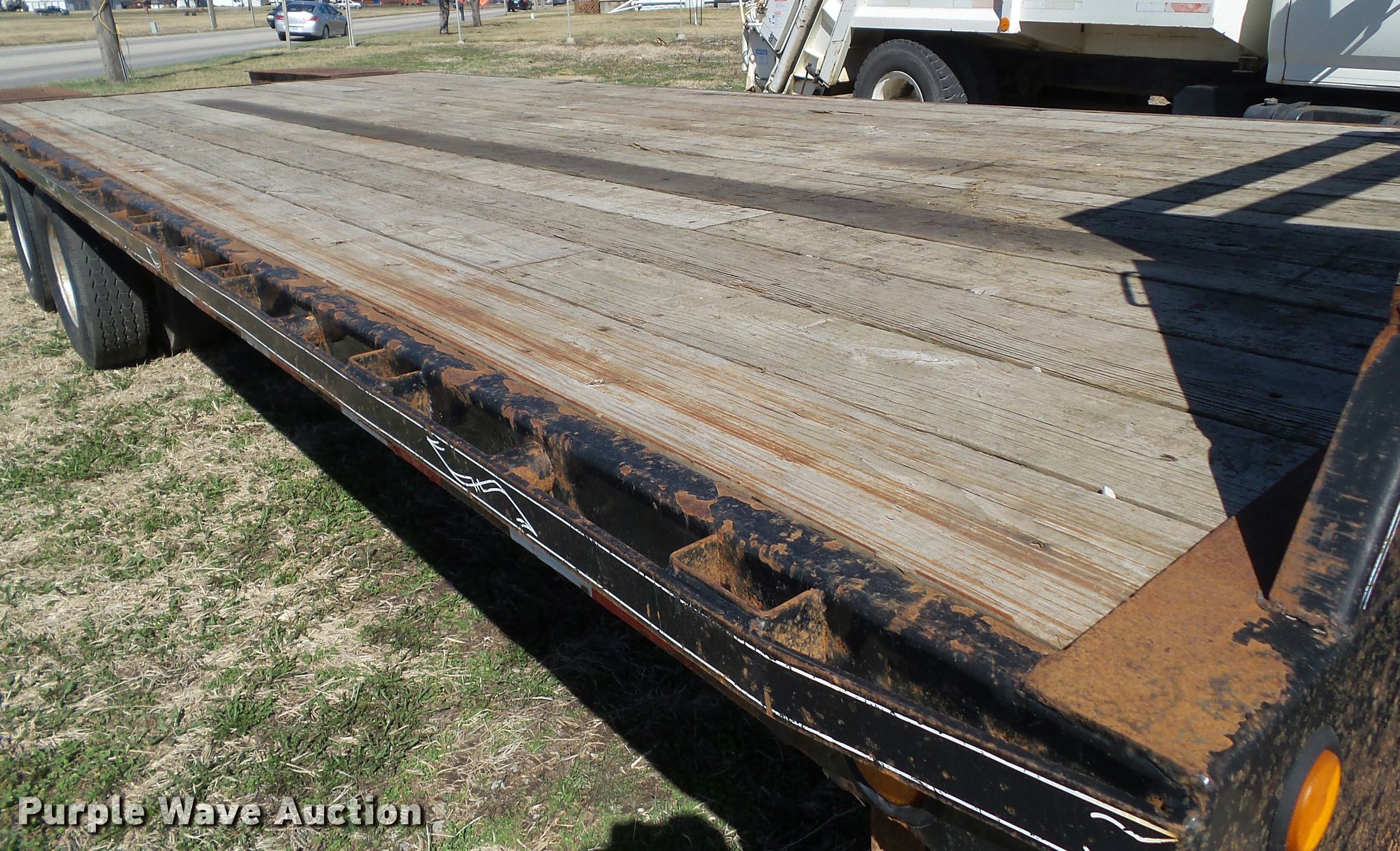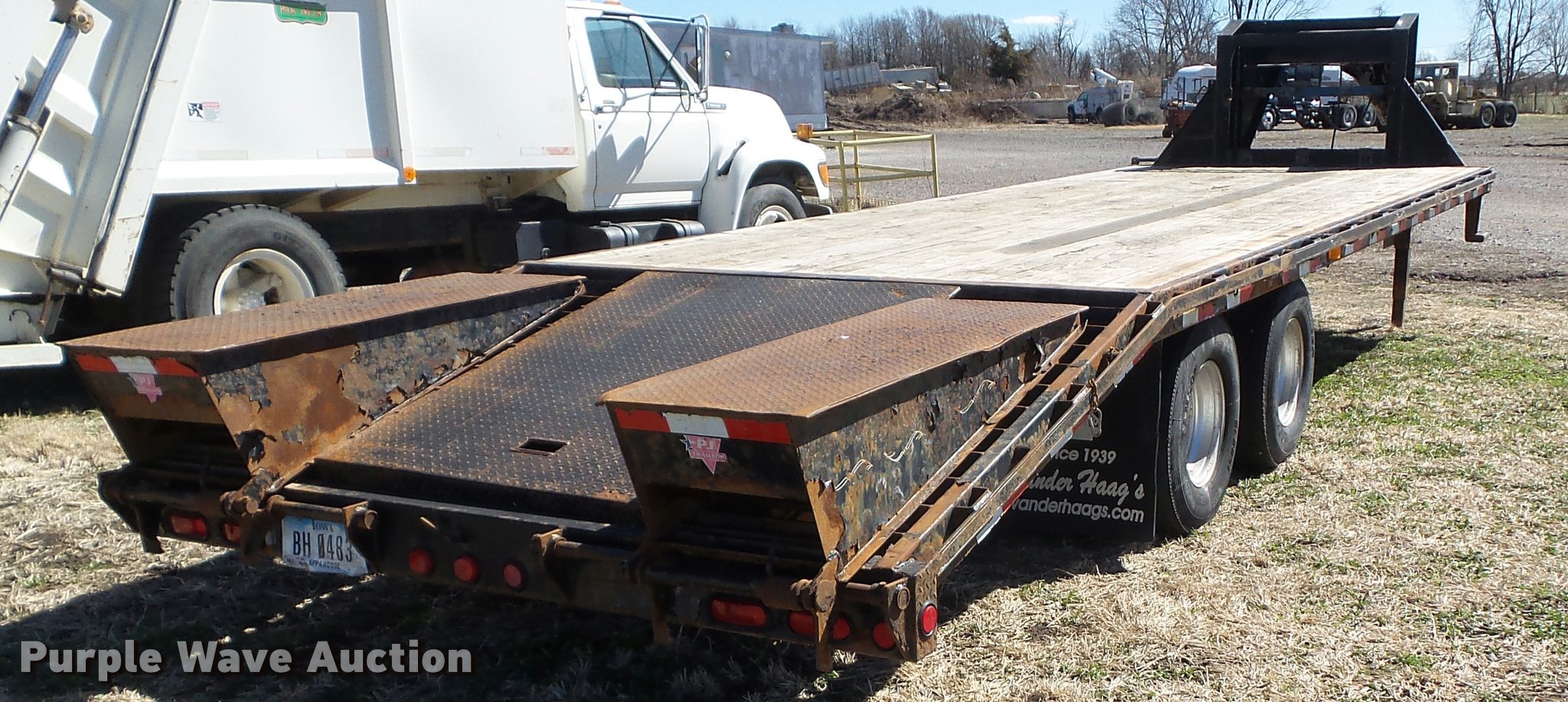 Purple Wave is selling a used Equip. Trailer in Iowa. This item is a 2009 PJ FD262 equipment trailer with the following: 35' overall length, 26'L x 96"W, 20.5'L wood deck, 5.5'L beaver tail, 60" ramps, Stake side pockets, Toolbox, Dual leg landing gear, Gooseneck hitch, Tandem axle, Spring suspension, Electric brakes, Steel wheels, ST235/85R16 tires, GAWR 20,000 lbs