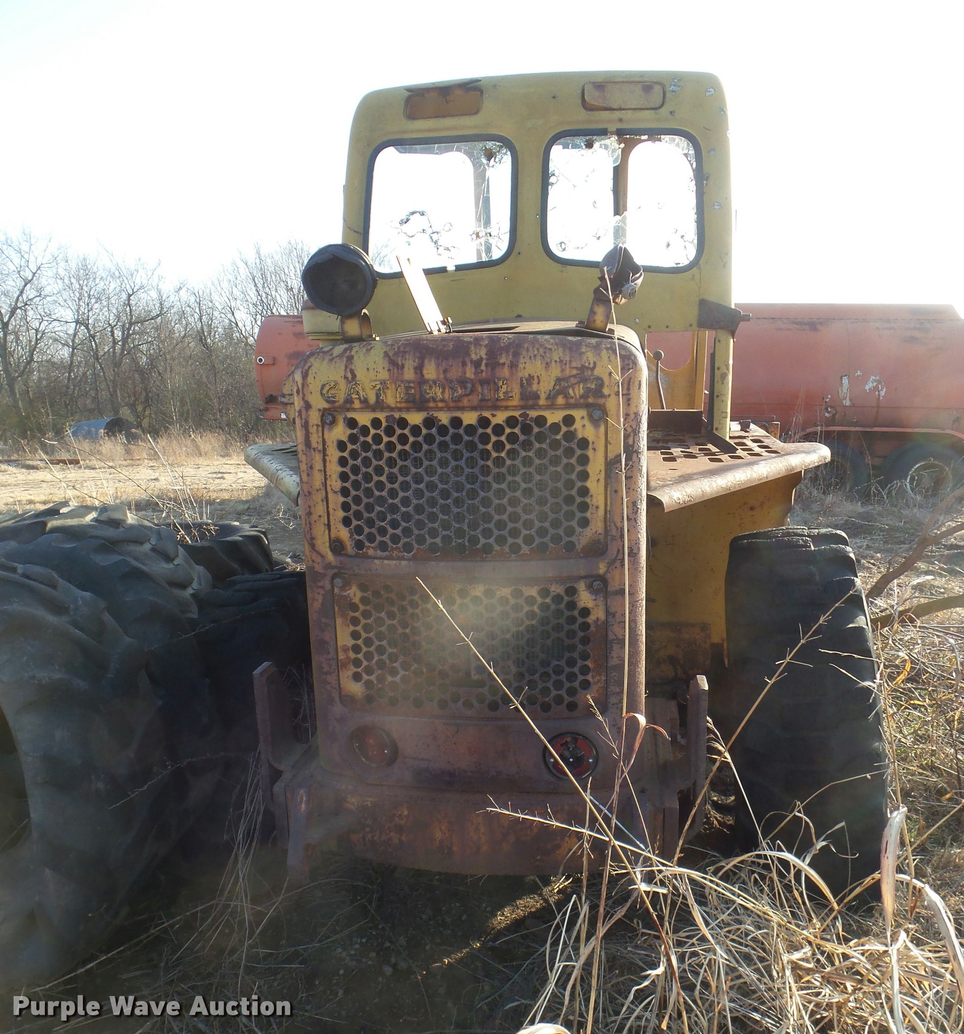 Purple Wave is selling a used Wheel Loader in Oklahoma. This item is a Caterpillar 922 wheel loader with the following: Unknown hours on meter, Four cylinder diesel engine, Two speed hydrostatic transmission, 4F-4R gears, Suspension seat, Two-lever bucket controls, 88"W general purpose bucket, Weld-on cutting edge, 15.5-25 tires, Non-operational unit, Glass broken, Additional tires are not included, Serial 59A4215