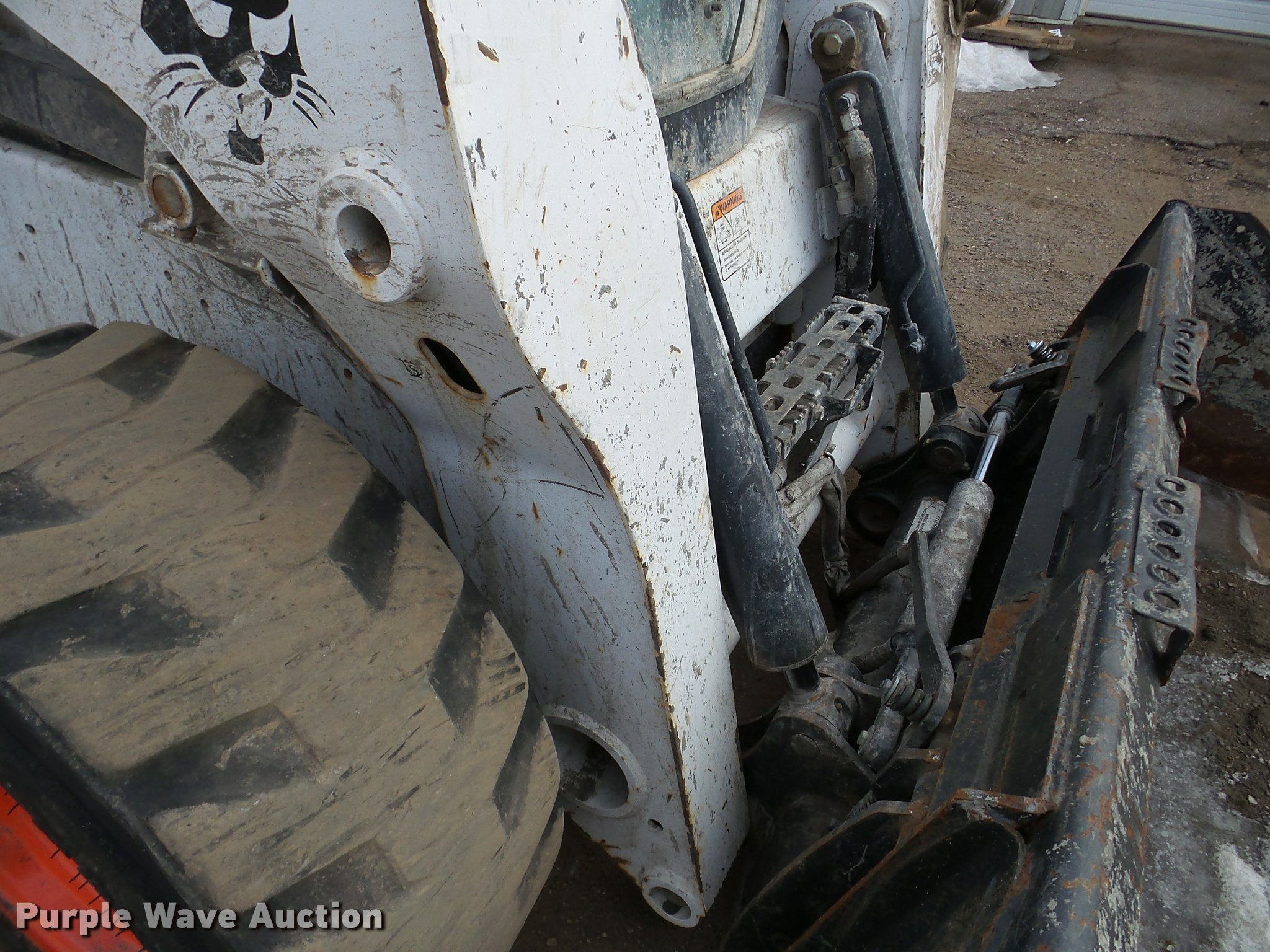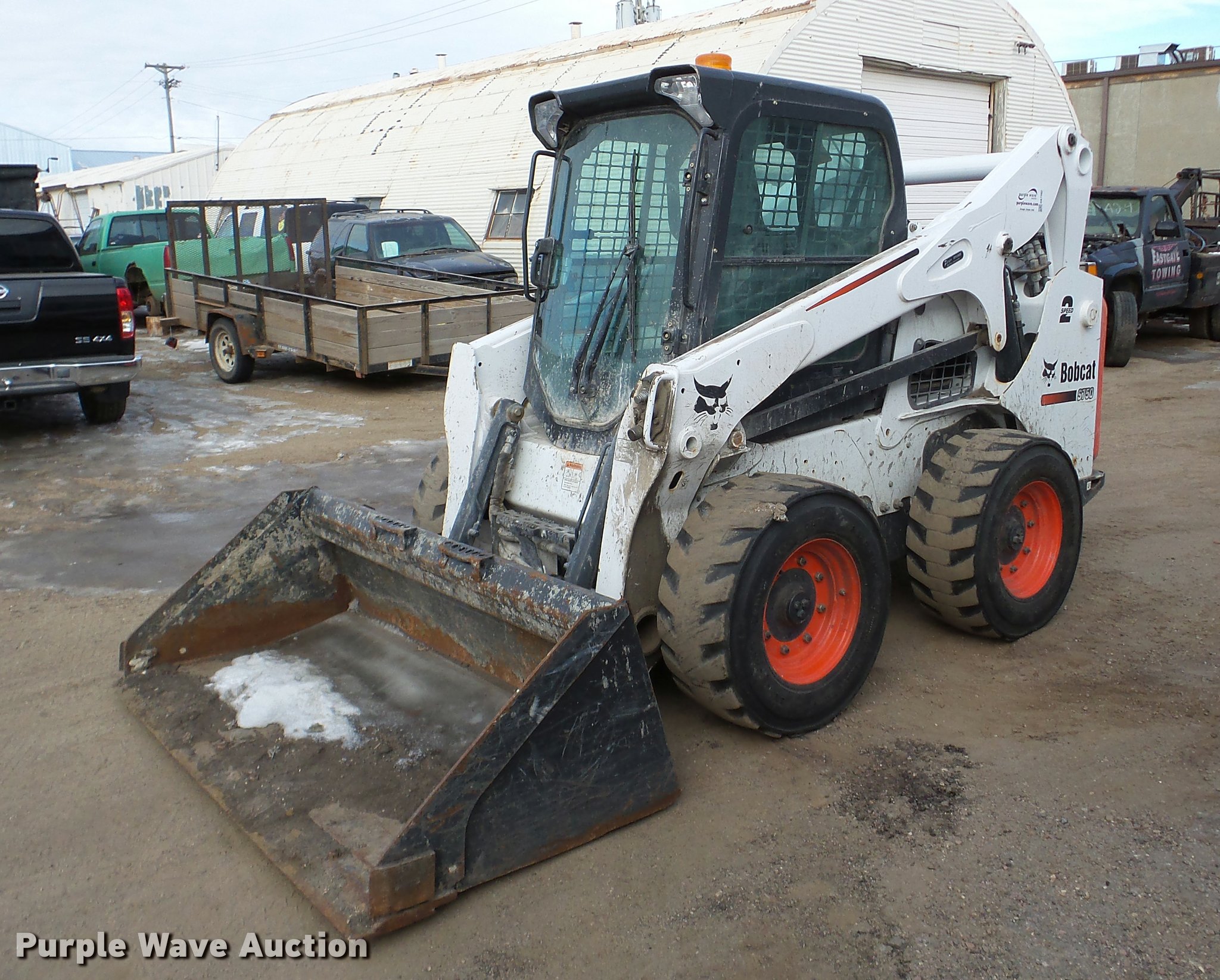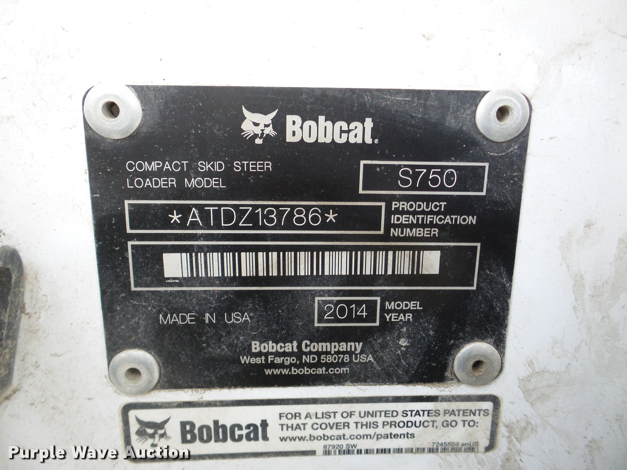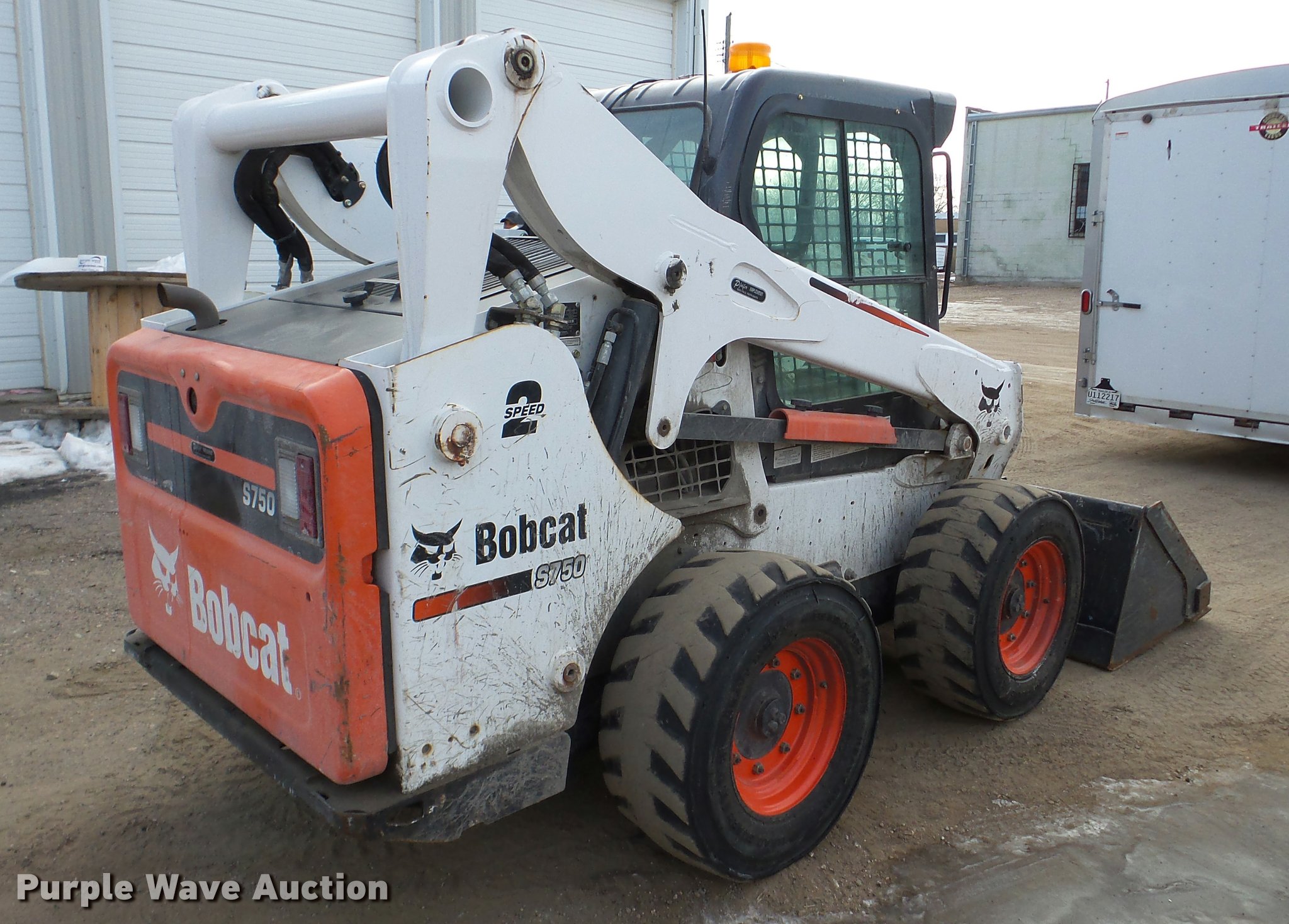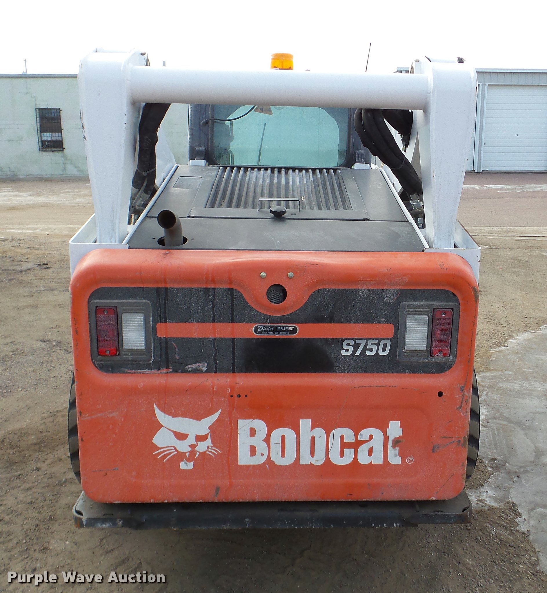 Purple Wave is selling a used Skid Steer Loader in South Dakota. This item is a 2014 Bobcat S750 skid steer with the following: 1,062 hours on meter, 3.4L four cylinder diesel engine, Two speed hydrostatic transmission, Enclosed cab, AC and heat, AM/FM, Hand and foot controls, Spring suspension seat, Wipers, Front and rear work lights, Bobcat 74HI 74"W bucket, Bolt-on cutting edge, Auxiliary hydraulics, 12-16.5 tires, Serial ATDZ15786
