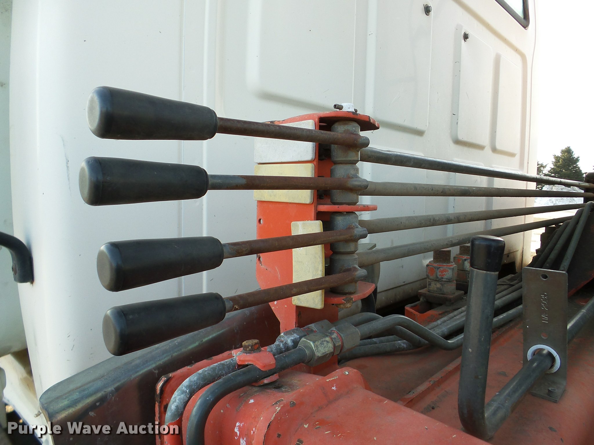 Purple Wave is selling a used Crane Truck in South Dakota. This item is a 1997 Ford LT9513 Louisville 113 crane truck with the following: 226,060 miles on odometer, 4,992 hours on meter, Cummins ISM 10.8L L6 turbo diesel engine, Eight speed manual transmission, Locking differential, Triple axle, Heat, AM/FM/CD, Air suspension seat, PTO, Backup alarm, 25'L x 8'7"W flatbed, Pintle hitch, 1997 Palfinger PW350 crane, 50' boom length, 63' maximum lift height, Ground boom controls, Boom rotation, Knuckle boom, (2) outriggers, Serial 9776112, Forks, Model PZP-W, Dual fuel tanks, 274" wheelbase, Spring over walking beam suspension, Air brakes, 425/65R22.5 front tires, 235/75R17.5 tag axle tires, 11R22.5 rear tires, GVWR 58,000 lbs