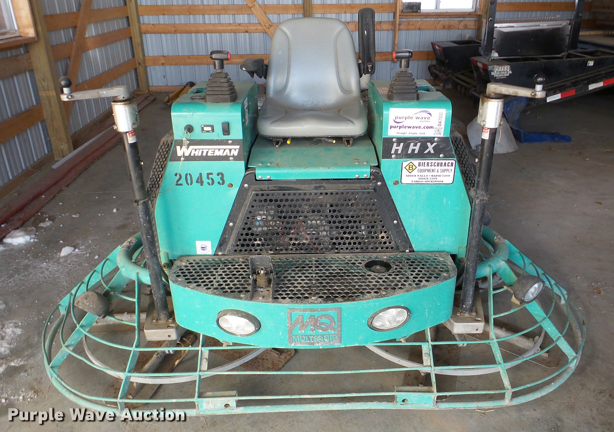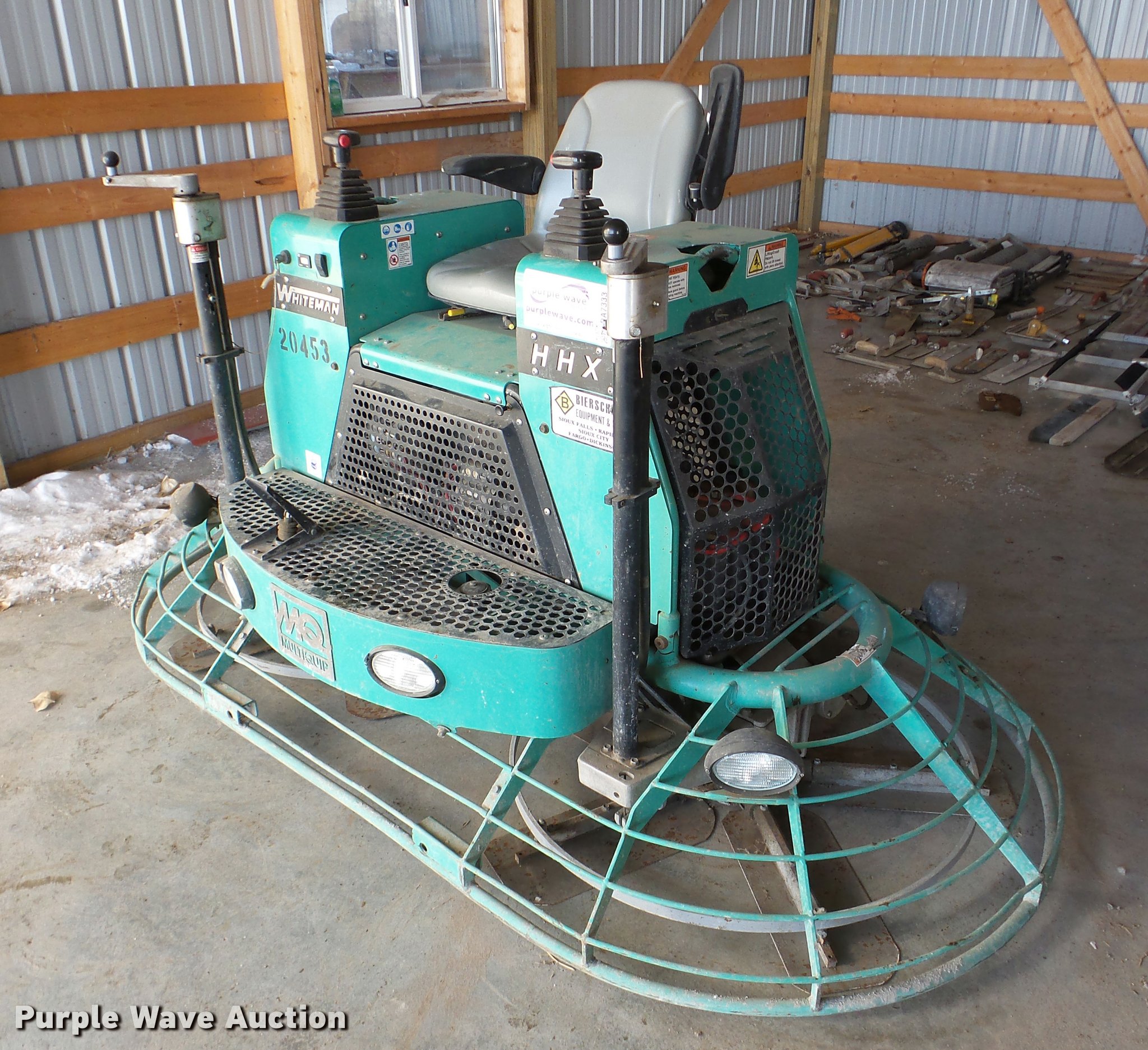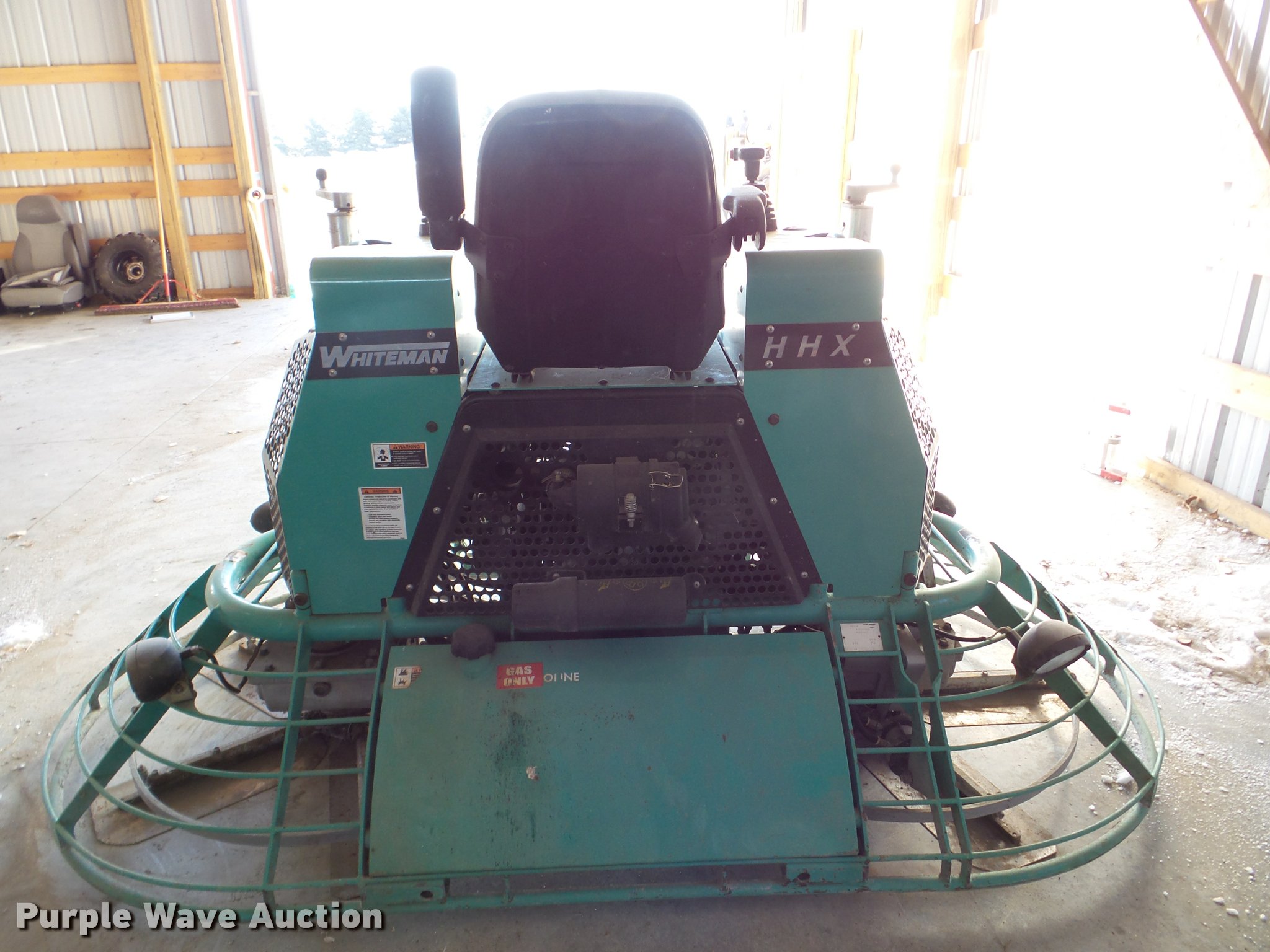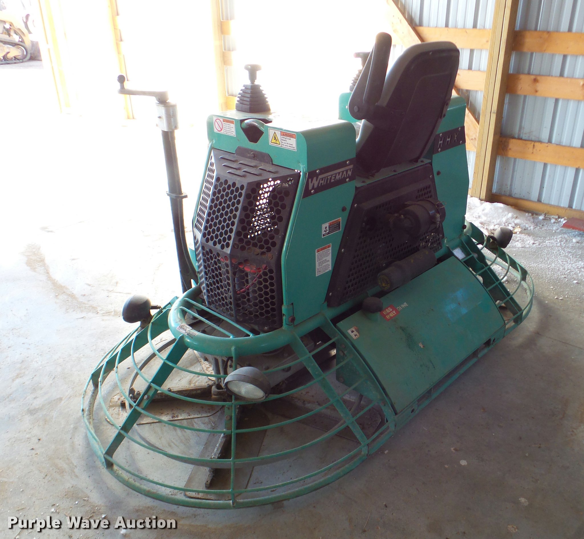 Purple Wave is selling a used Concrete Equip. or Acces. in South Dakota. This item is a 2011 Whiteman HHXG5 power trowel with the following: 316 hours on meter, 953cc liquid cooled gas engine, 8'W, Work lights, Serial VI020710690312017