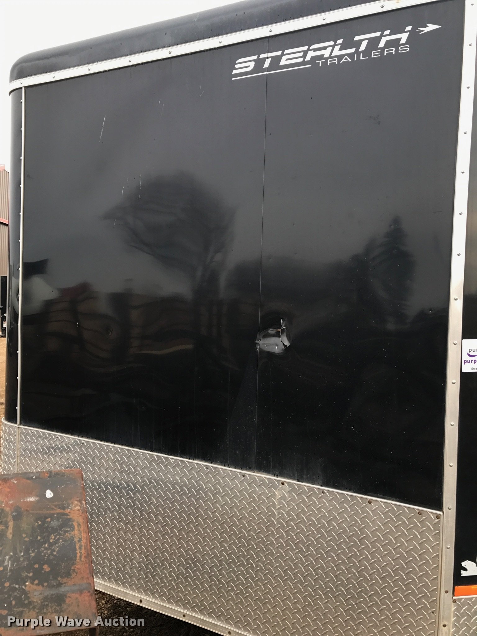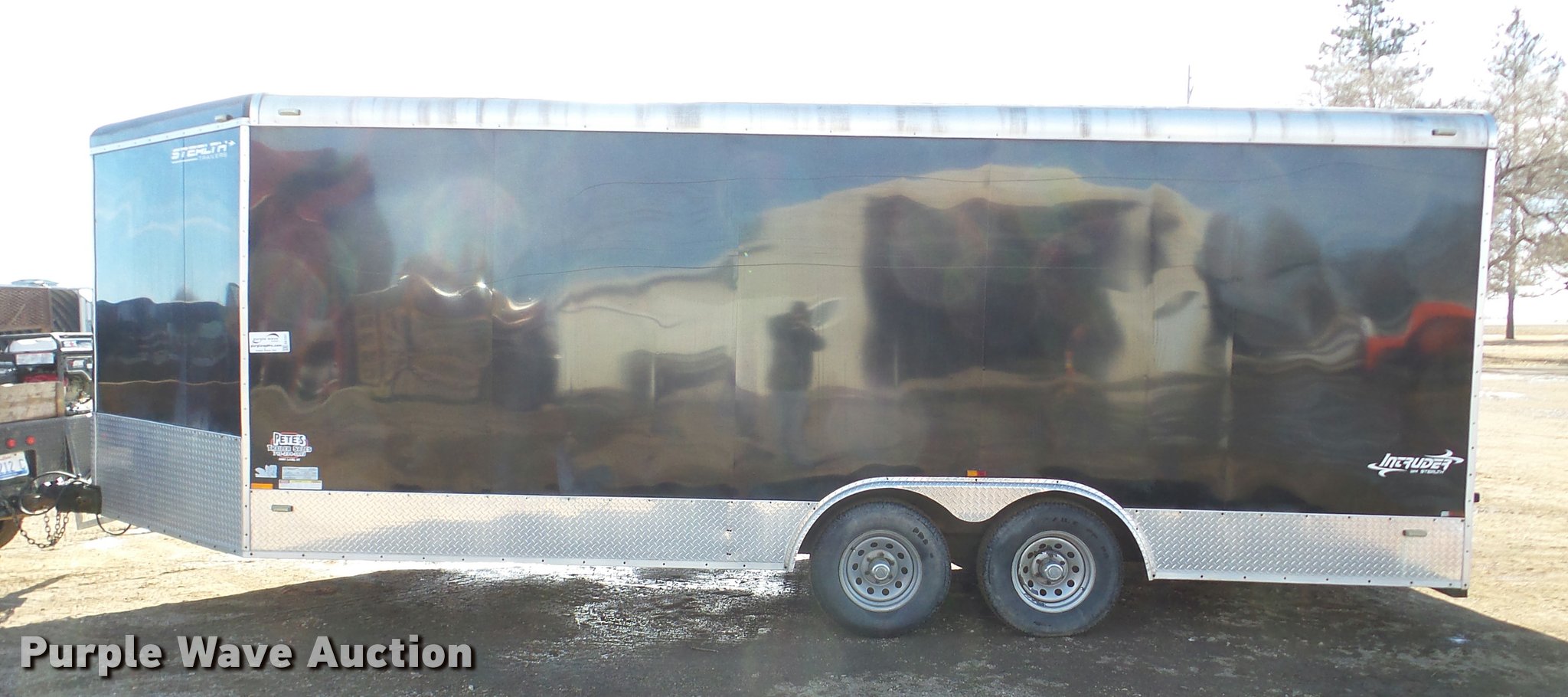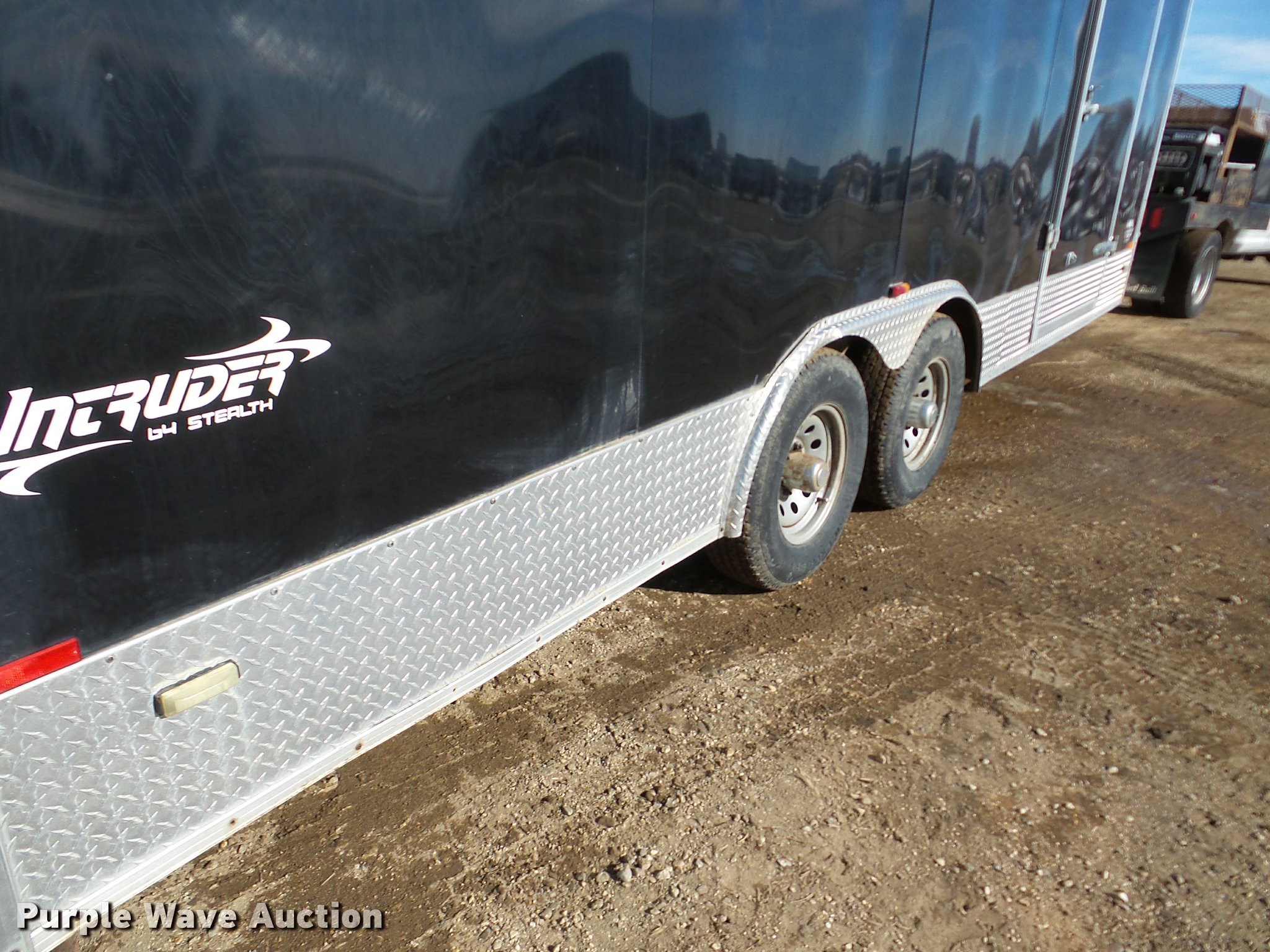 Purple Wave is selling a used Enclosed Cargo Trailer in South Dakota. This item is a 2011 Stealth Intruder enclosed cargo trailer with the following: 25' overall length, 20'L x 8.5'W, 8' side height, Side entry door, 2" ball hitch, Tandem axle, ST225/75R15 tires, GVWR 9,900 lbs, GAWR 5,200 lbs, Approx 5" diameter damage to sheet metal of the nose cone