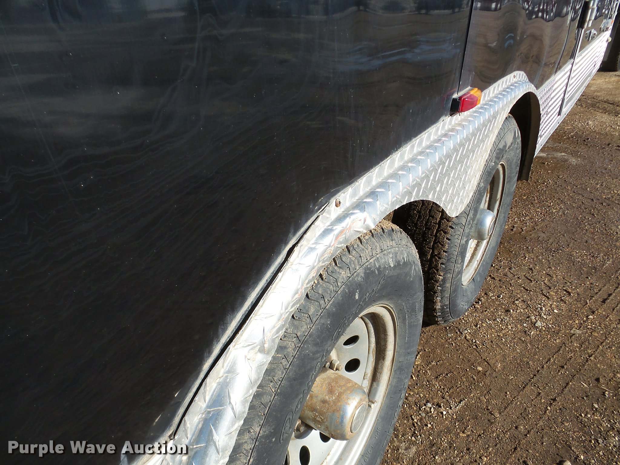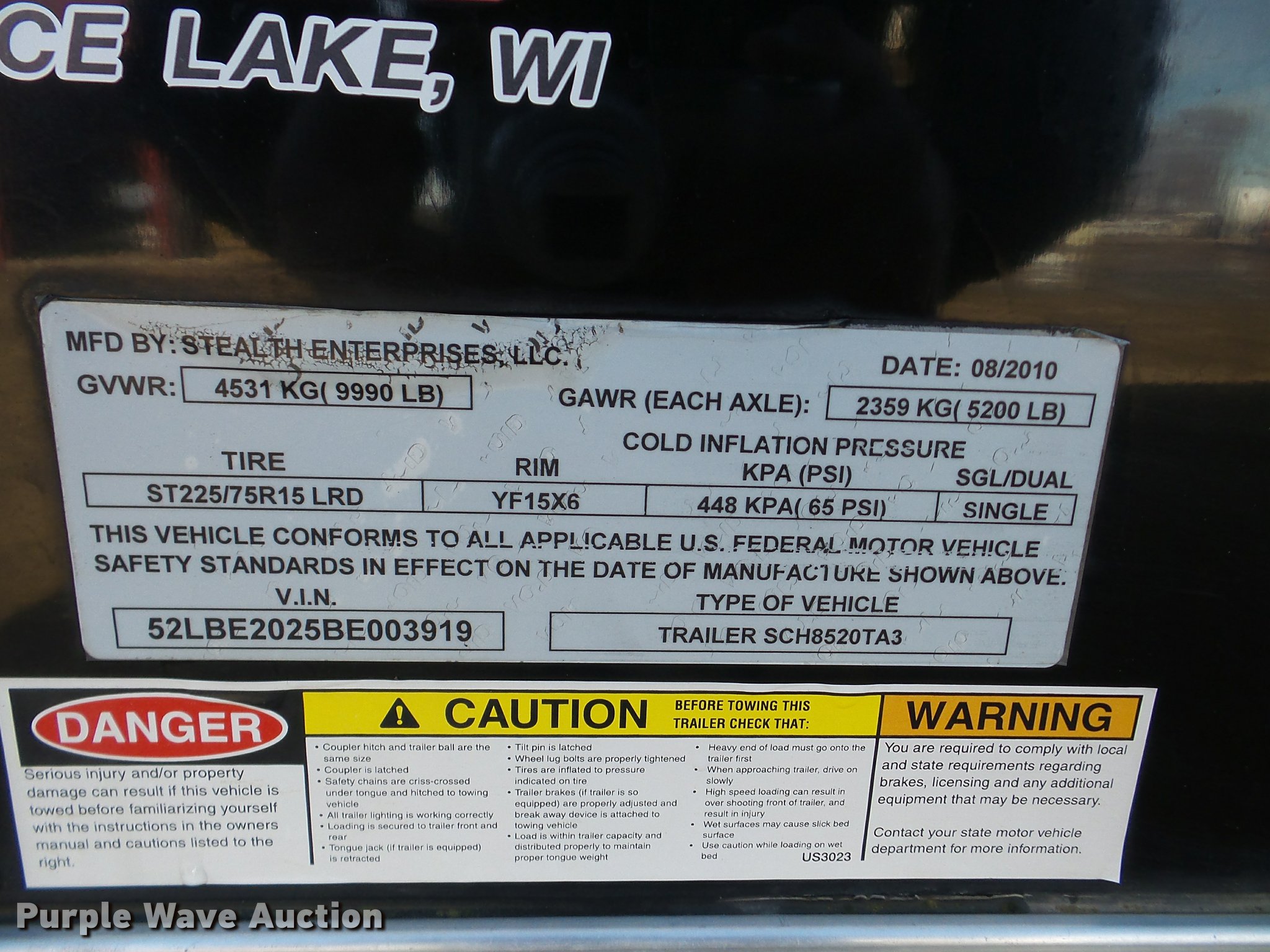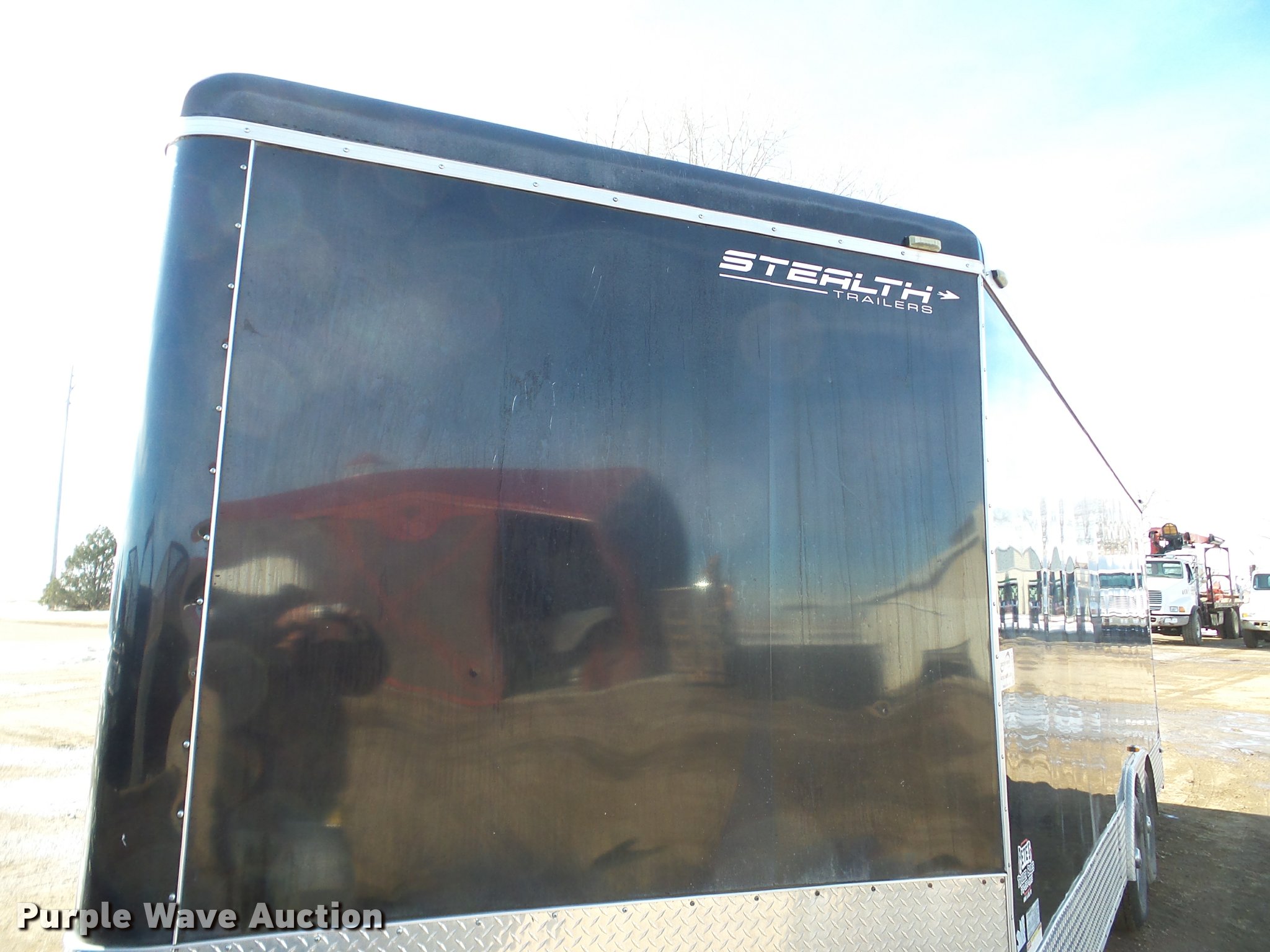 Purple Wave is selling a used Enclosed Cargo Trailer in South Dakota. This item is a 2011 Stealth Intruder enclosed cargo trailer with the following: 25' overall length, 20'L x 8.5'W, 8' side height, Side entry door, 2" ball hitch, Tandem axle, ST225/75R15 tires, GVWR 9,900 lbs, GAWR 5,200 lbs, Approx 5" diameter damage to sheet metal of the nose cone