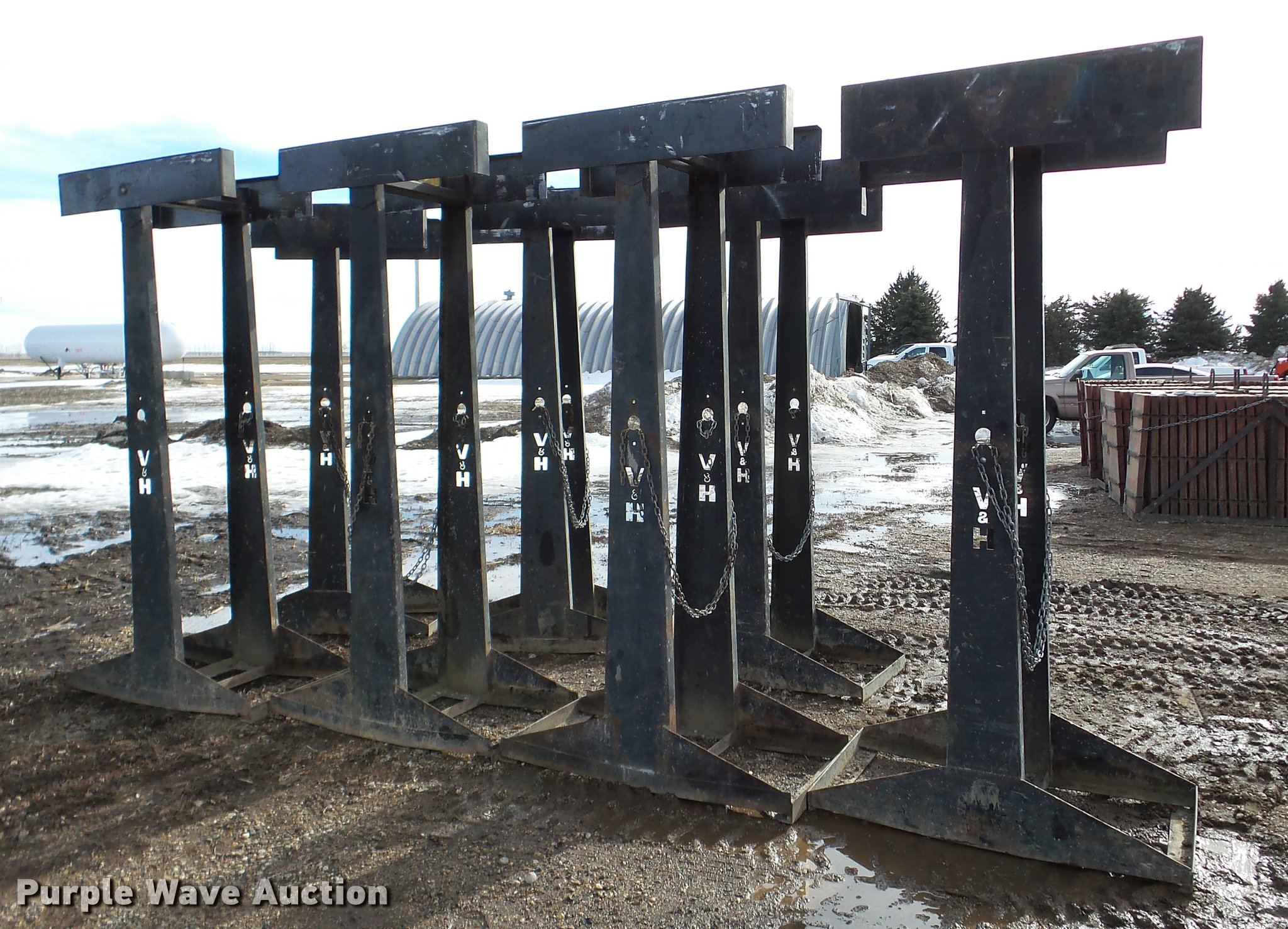 Purple Wave is selling a used Concrete Equip. or Acces. in South Dakota. This item is a (7) V and H concrete form racks with the following: Fits 22 8'x 2' forms per rack