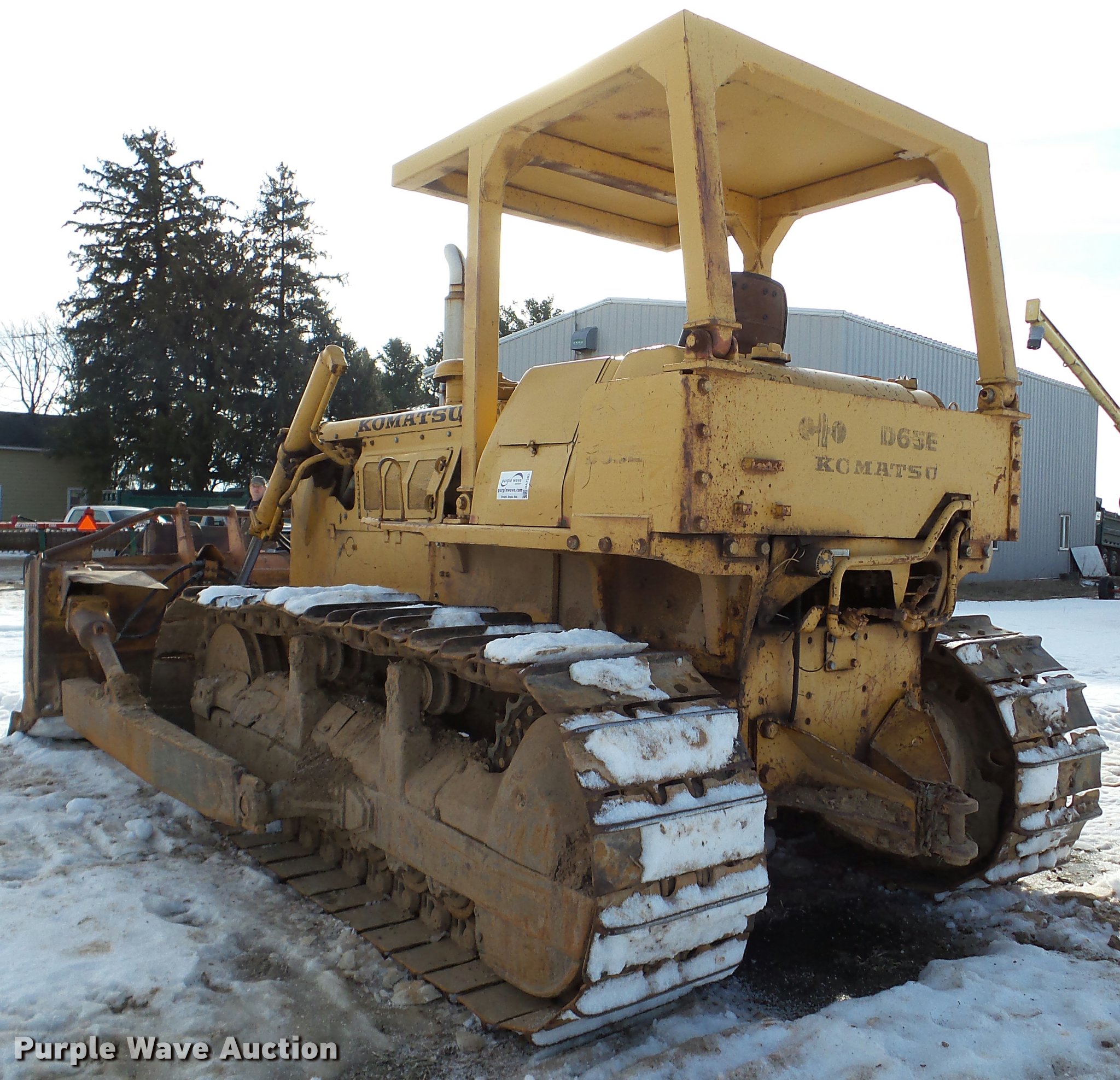 Purple Wave is selling a used Crawler Dozer in Wisconsin. This item is a 1980 Komatsu D65E dozer with the following: 2,412 hours on meter, Cummins NH220-CI six cylinder diesel engine, 155 HP, Powershift transmission, 3F-3R gears, Canopy, Front work lights, Clutch brake steering, Rear draw bar, Rear hydraulics, Unknown operating condition, 11'W semi-u dozer blade, Single cylinder tilt, 24"W single grouser track pads, Seven bottom rollers, Manuals, Serial 32165