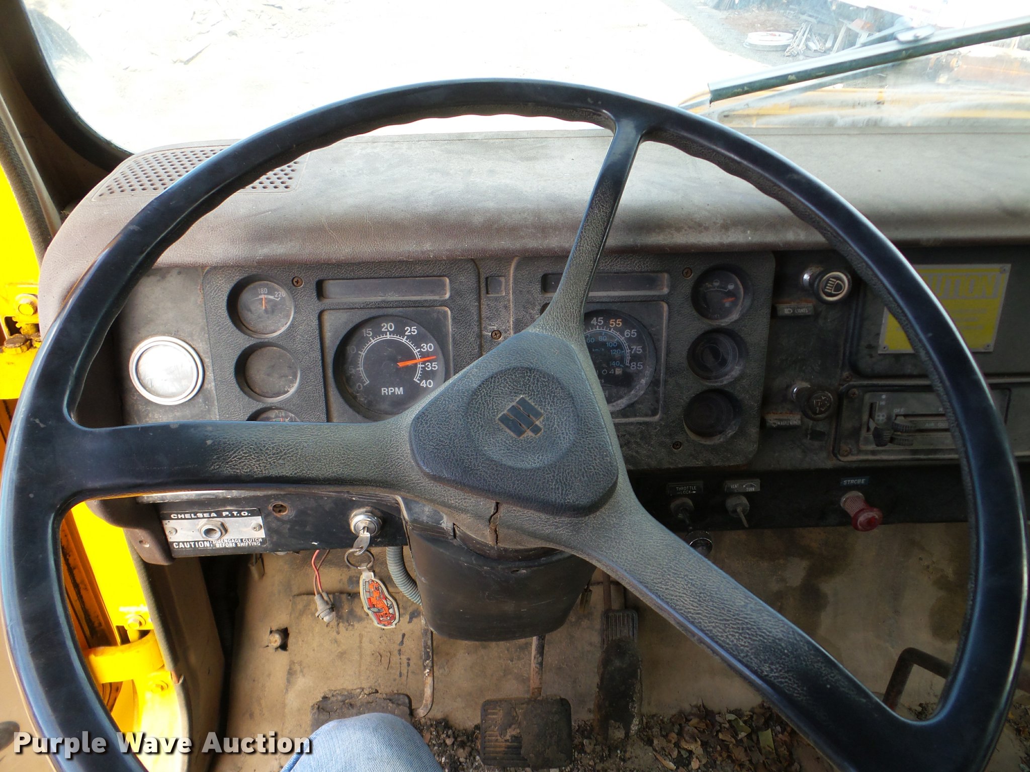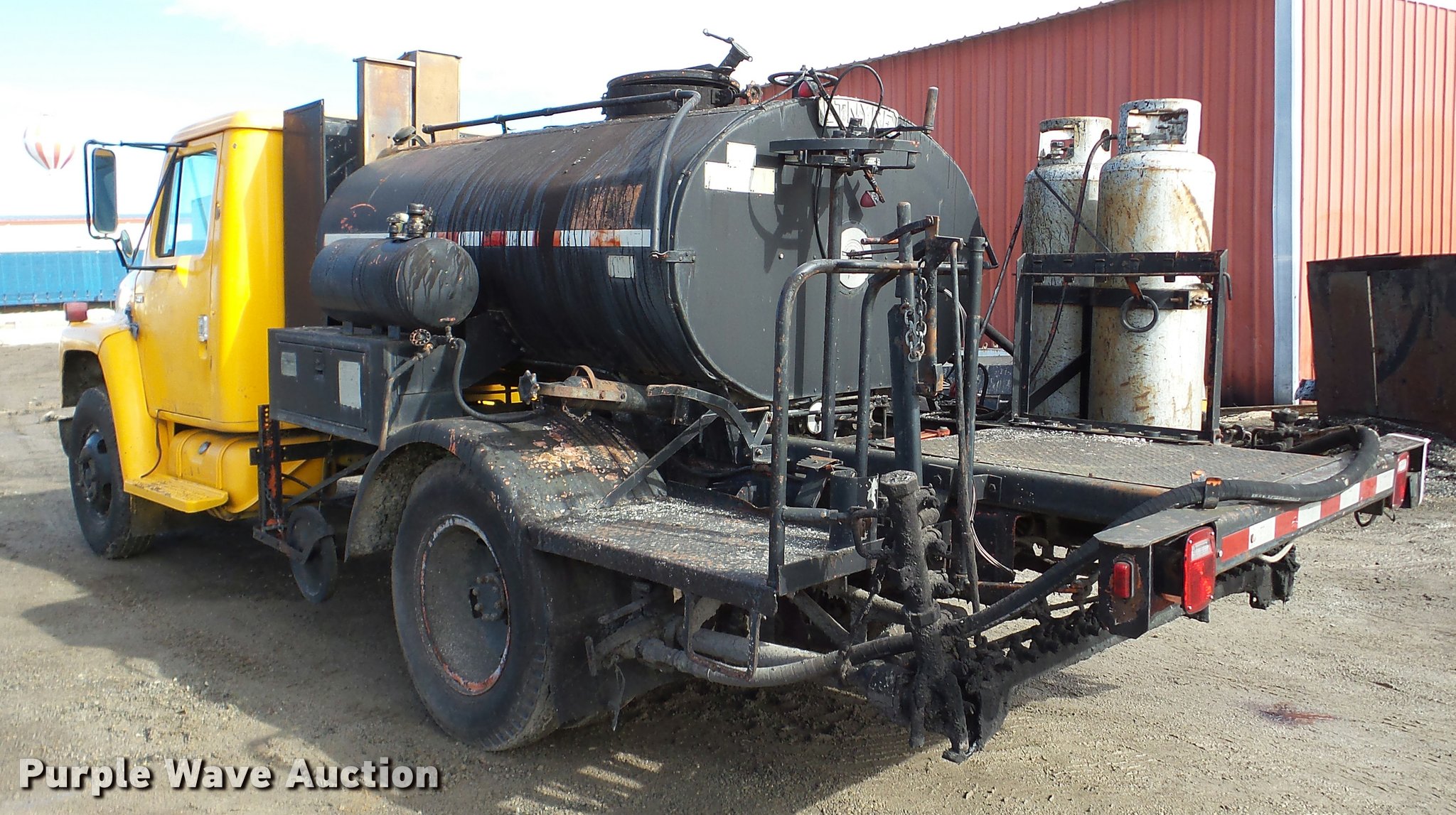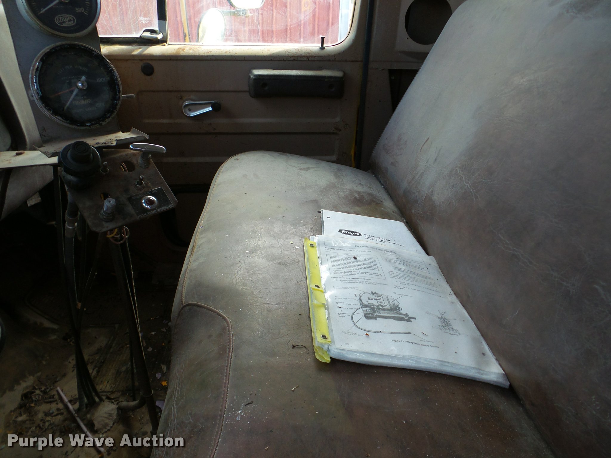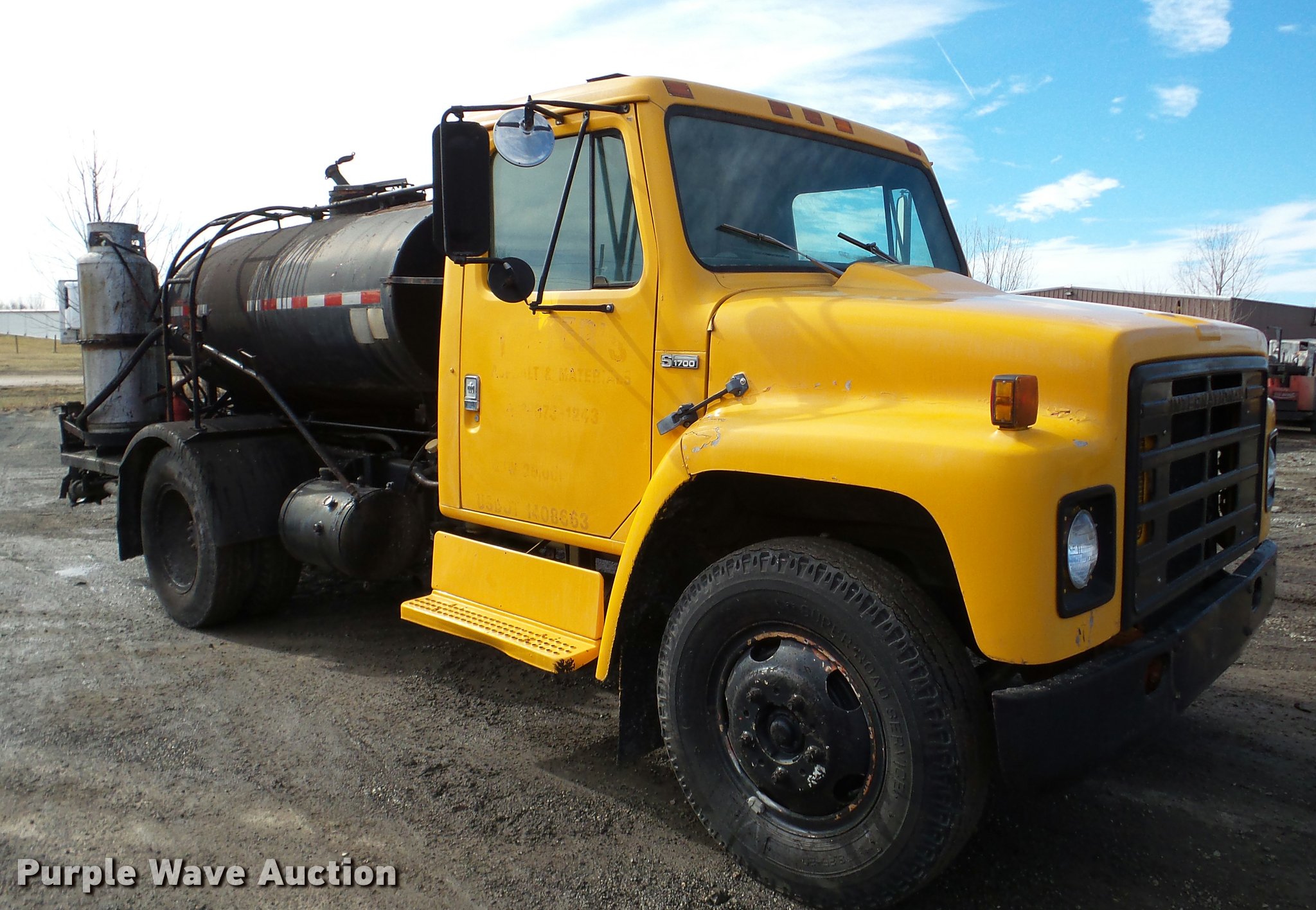 Purple Wave is selling a used Oil Distributor Truck in Illinois. This item is a 1982 International 1724 oil distribution truck with the following: 66,104 miles on odometer, 5,143 hours on meter, V8 gas engine, Four speed manual transmission, Single axle, Heat, Etnyre BT-HS bed, 14'L, 645 gallon capacity, In-cab controls, Spray wand, 10'W folding boom, Propane heat, Serial J-7820, 152" wheelbase, 8.25-20 tires, Spring suspension, Hydraulic brakes