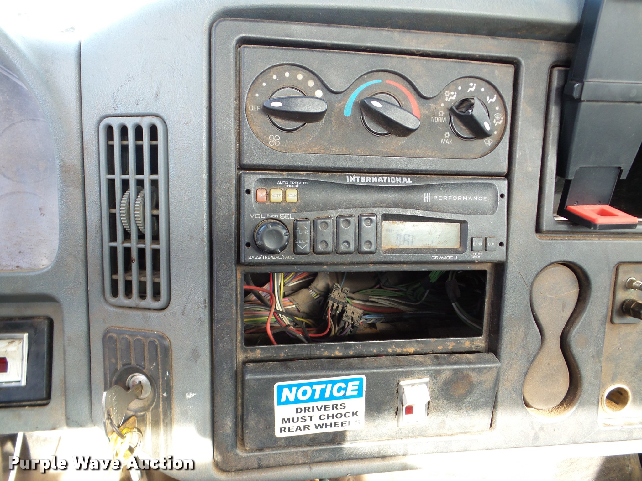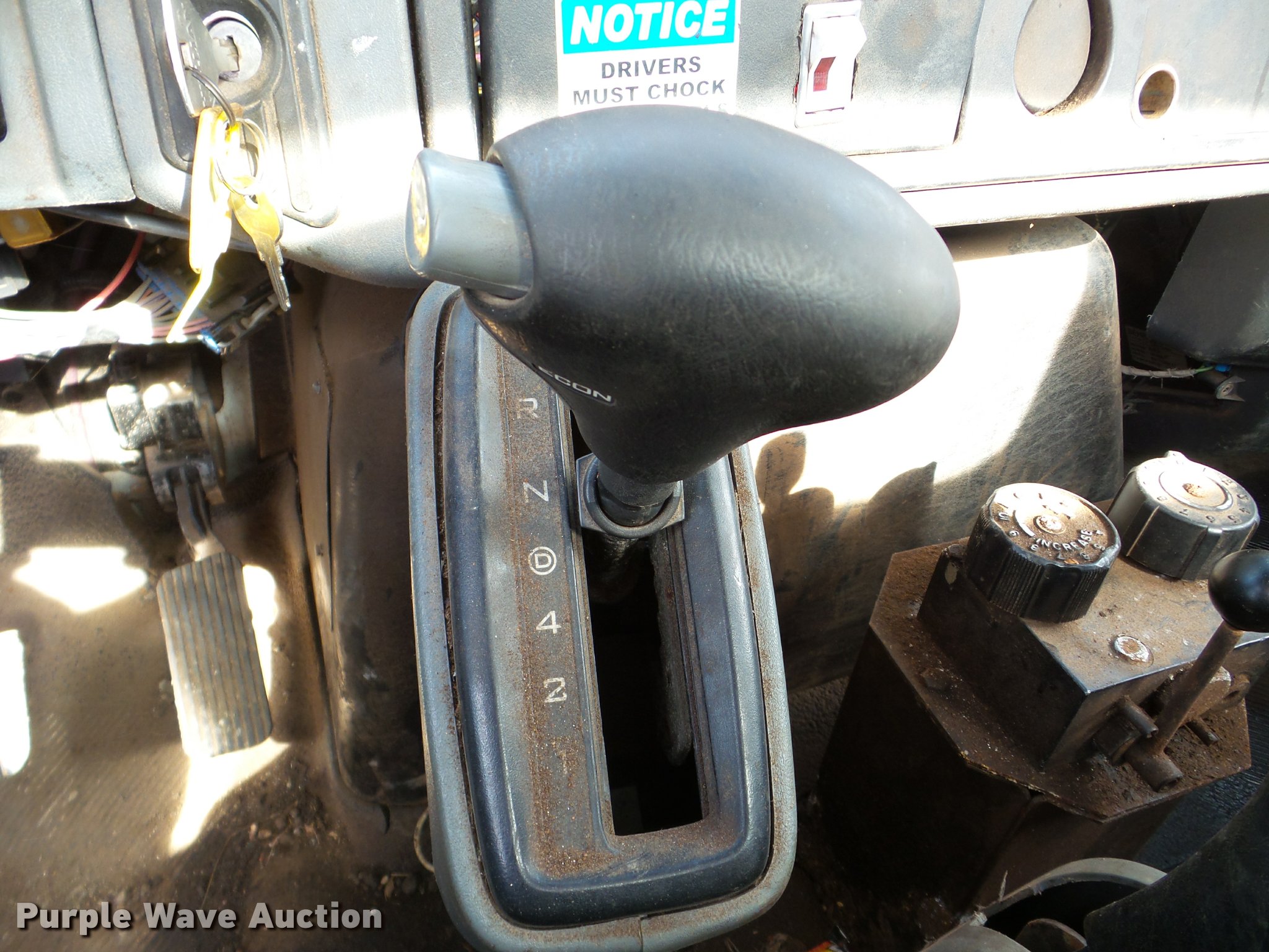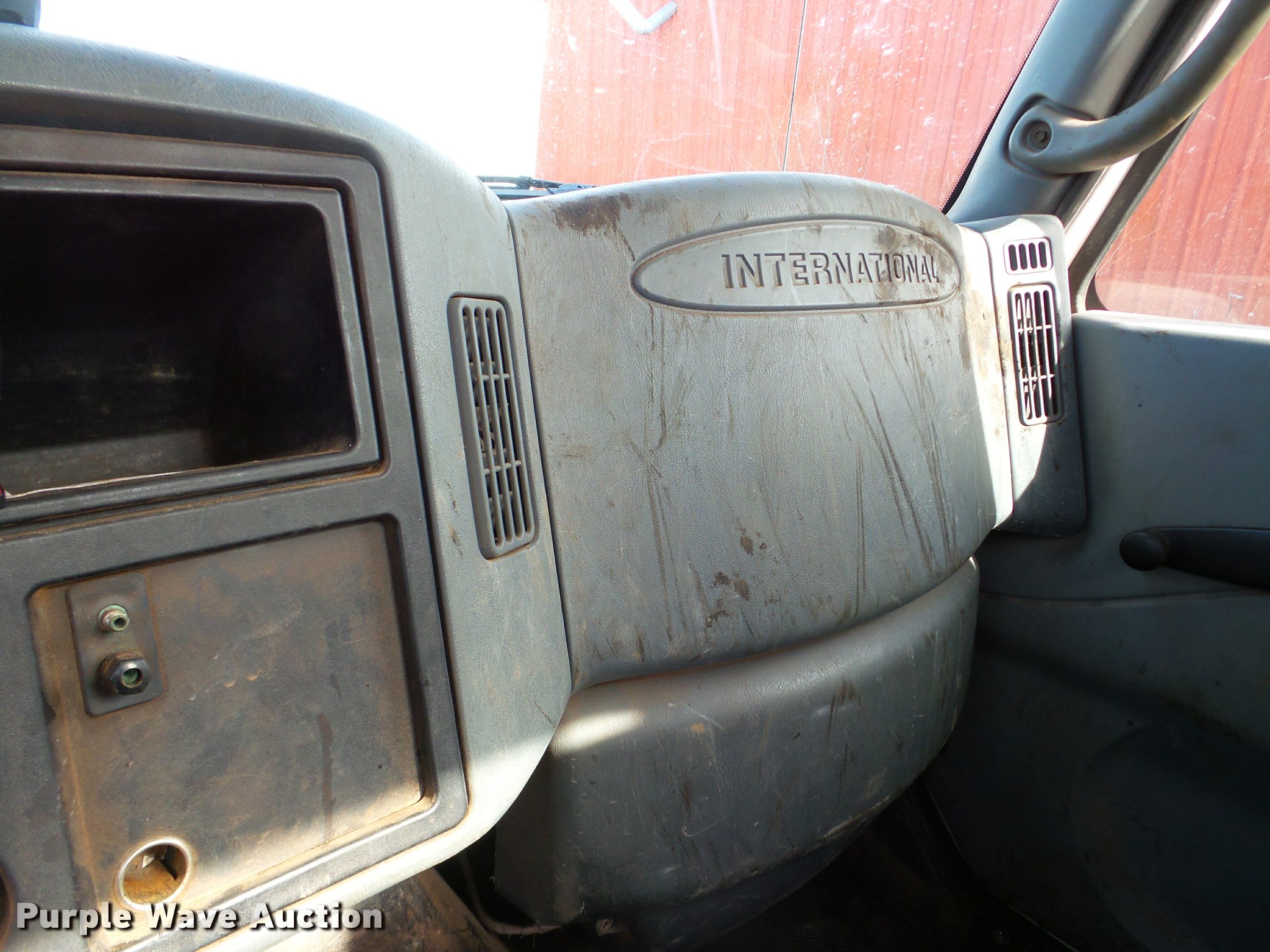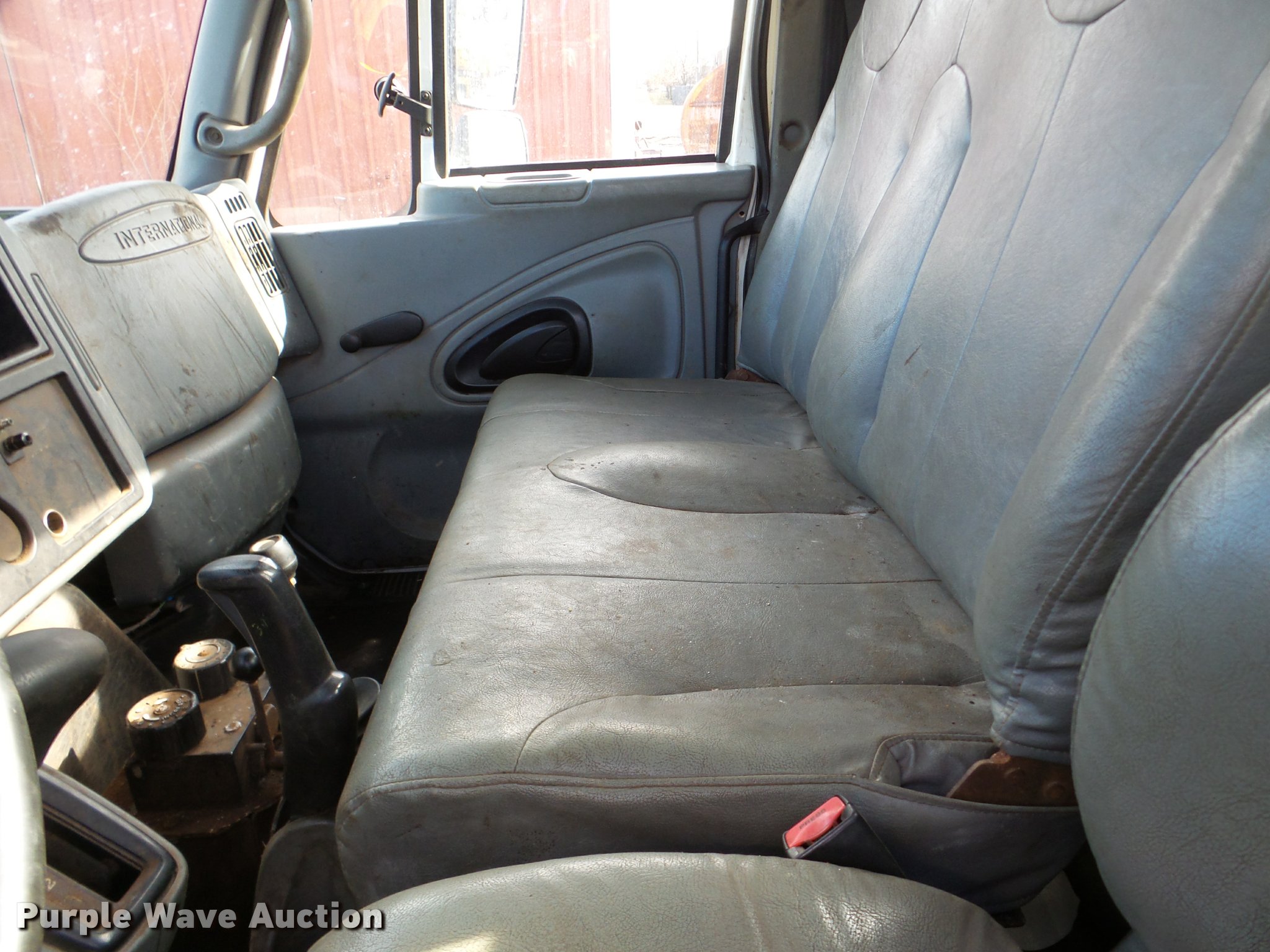 Purple Wave is selling a used Flat Bed Truck in Illinois. This item is a 2002 International 4300 flatbed truck with the following: 114,864 miles on odometer, International DT466 7.6L L6 diesel engine, Automatic transmission, Single axle, AC and heat, AM/FM, Air suspension seat, 14'L x 8'W flatbed, Wood deck, 10'W snow plow, In-cab plow and spreader controls, Single fuel tank, Pintle hitch, Spring suspension, Hydraulic brakes, 11R22.5 tires, Unknown operating condition of AC, Front hydraulics for snow plow are weak, Toolbox and fuel tank are not included