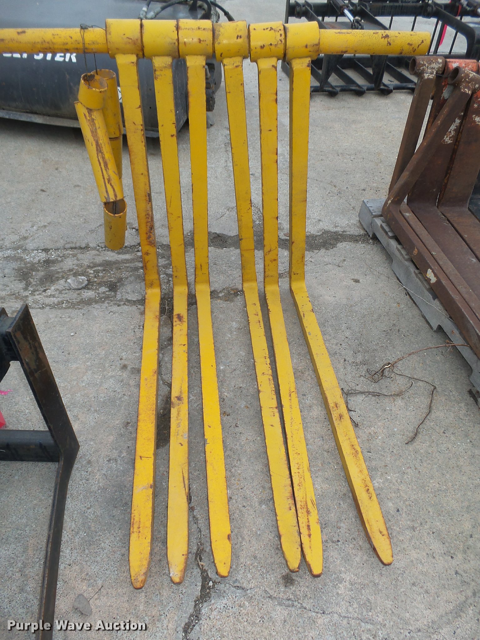 Purple Wave is selling a used Forklift Attach. in Nebraska. This item is a (14) assorted forks with the following: (2) 46"L x 5"W, (4) 41"L x 5"W, 48"L x 2"W, 40"L, Some damaged