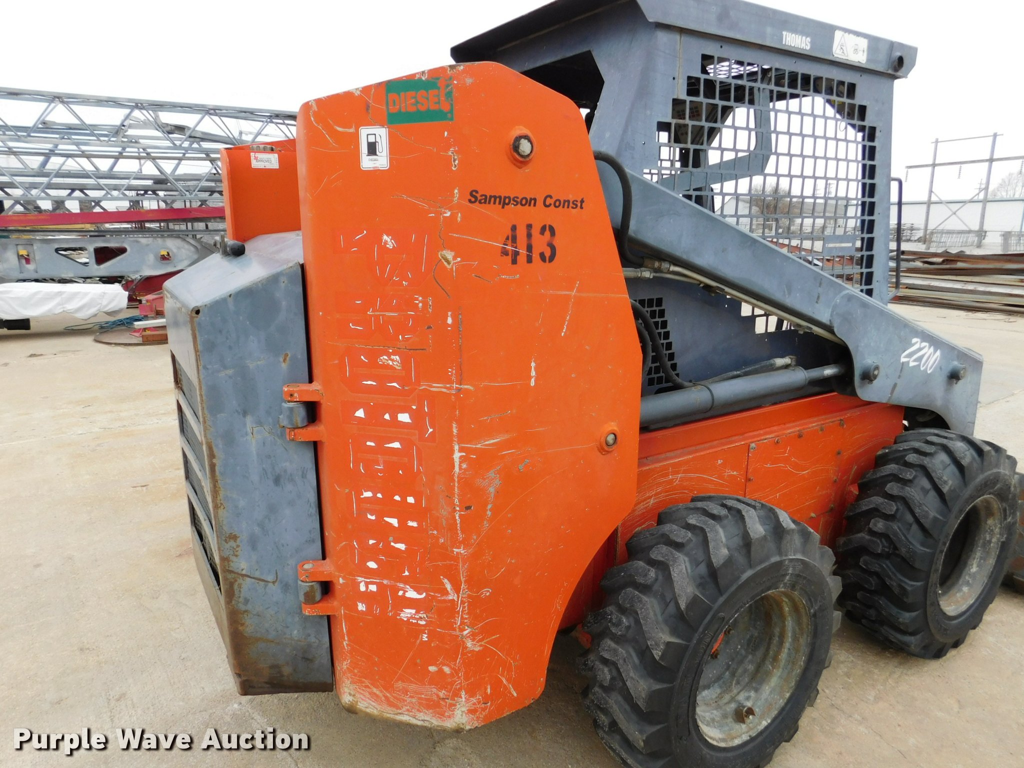 Protough B108/2200 skid steer. 3,618 hours on meter, Kubota four cylinder turbo diesel engine, Hydrostatic transmission, OROPS, Hand/foot controls, Suspension seat, 6'W bucket Bolt-on cutting edge, High flow auxiliary hydraulics, Manual quick coupler, Front work lights, 12-16.5 air filled tires, Serial LP000372. Sampson Construction. 6020 N 60th St. Lincoln, NE 68507