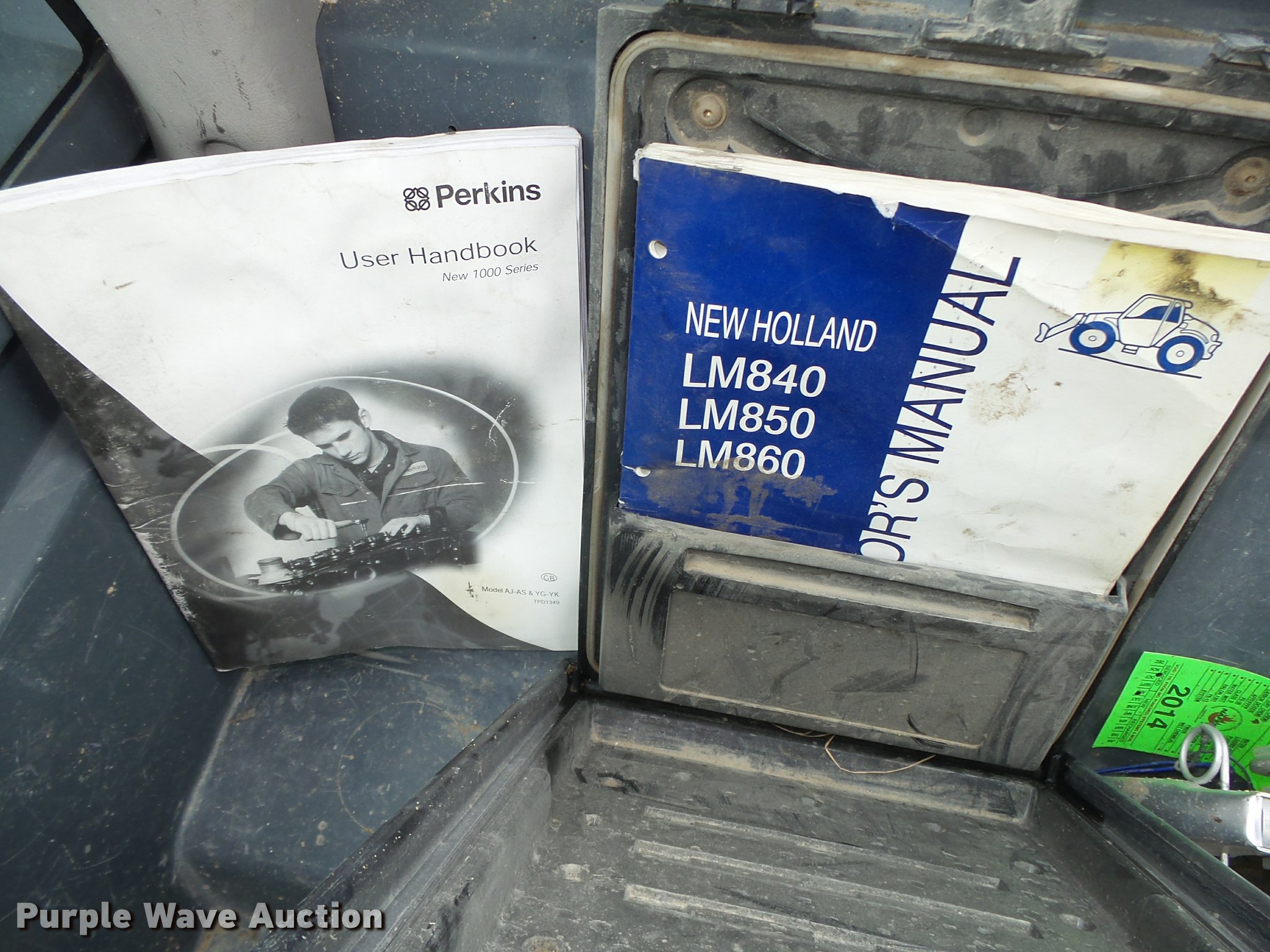 Purple Wave is selling a used Telehandler in Nebraska. This item is a 2000 New Holland LM860 telehandler with the following: 5,304 hours on meter, Perkins four cylinder turbo diesel engine, Serial AK80920U1084556, Transmission serial 16061E000027, OROPS, Work lights, 10,000 lbs maximum lift capacity, 52' maximum lift height, 39.5' maximum reach, Three boom stages, 5'L x 4"W forks, Hydraulic outriggers, Hydraulic leveling, 14.00-24 foam filled tires, Operator manual, Engine manual, Mirror cracked, Serial 041718472