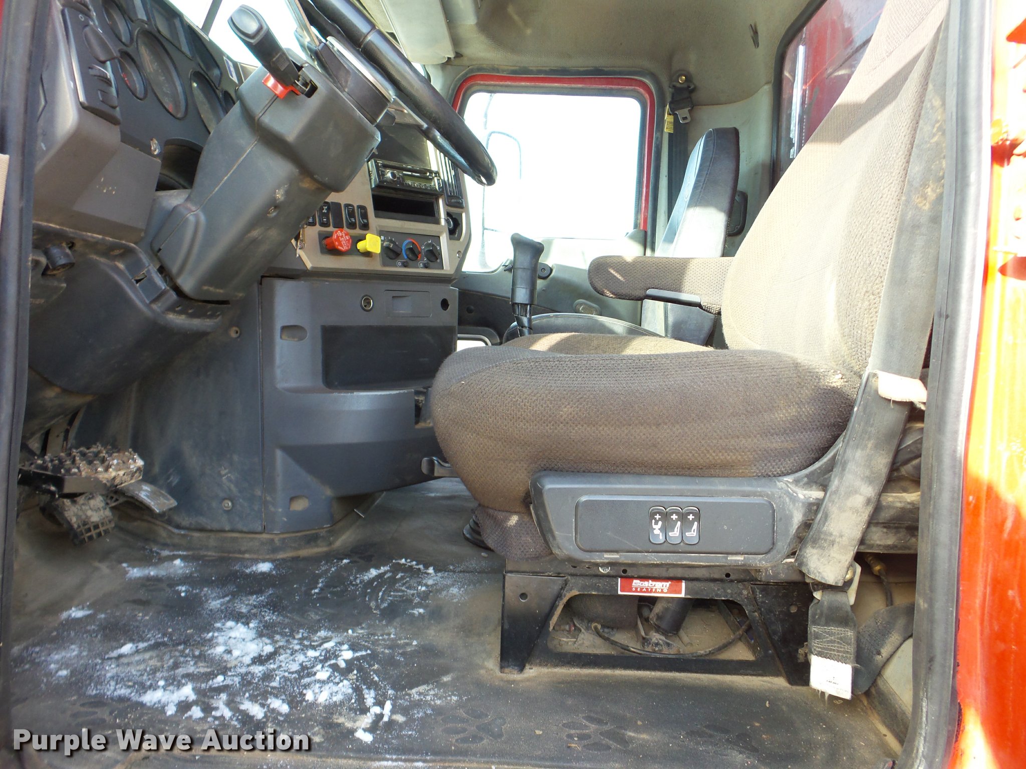 Purple Wave is selling a used Construction Dump Truck in Minnesota. This item is a 2008 Mack Vision dump truck with the following: 173,745 miles on odometer, Mack MP7 10.8L L6 turbo diesel engine, Eight speed manual transmission, Quad axle, (2) steerable pusher axles, Inter-axle differential lock, AC and heat, Cruise, AM/FM/CD, Power and heated mirrors, Air suspension seat, Air ride cab, Block heater, PTO, 17'L x 8'W steel dump bed, 3' to 4' side height, Air operated end gate, Single fuel tank, Trailer wiring, Camelback suspension, Air brakes, Engine brake, 240" wheelbase, 385/65R22.5 front tires, 11R22.5 rear tires, 255/70R22.5 tag axle tires, GVWR 52,000 lbs, FAWR 18,000 lbs, IAWR 20,000 lbs, RAWR 20,000 lbs, ABS light is on