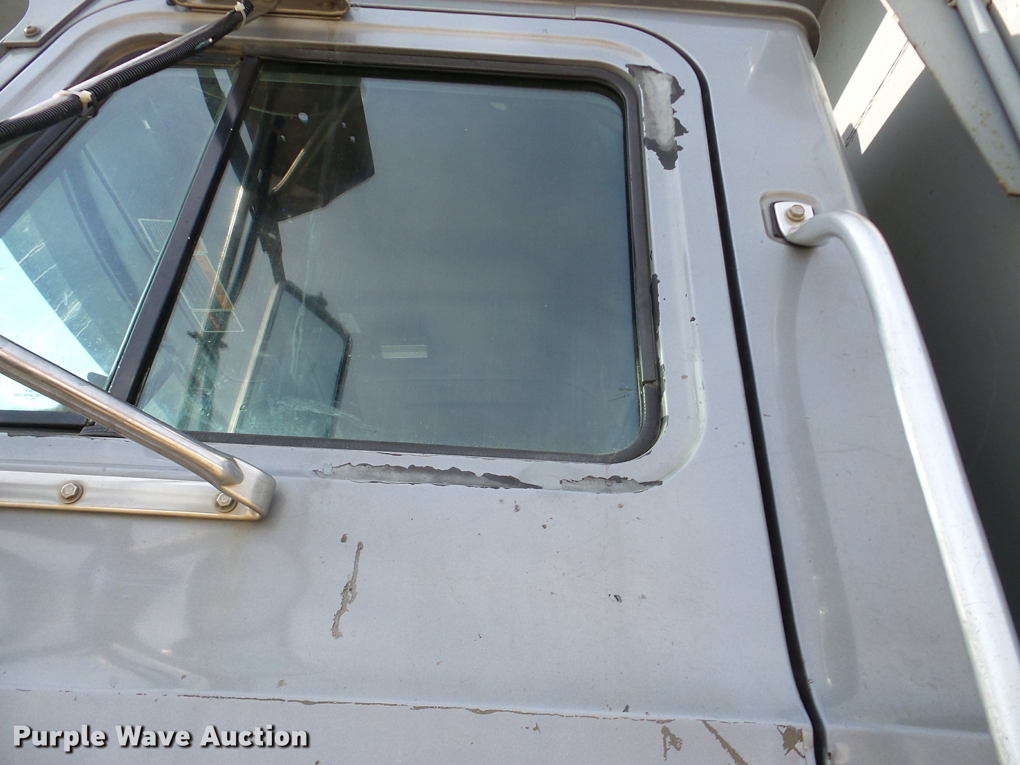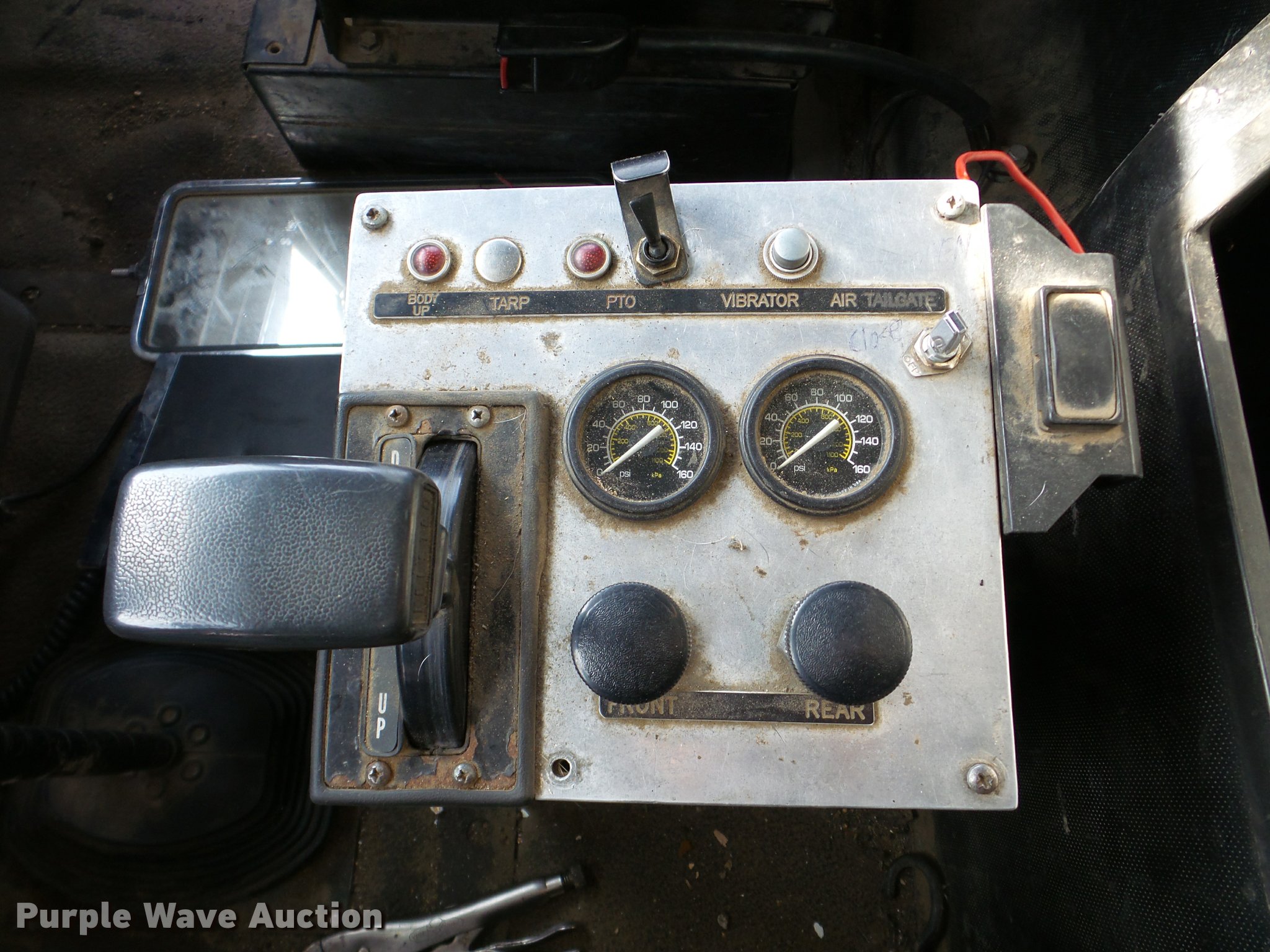 2003 Mack CL713 dump truck. 682,069 miles on odometer, 14,018 hours on meter, Mack E7 12.0L L6 turbo diesel engine, Eaton Fuller eight speed with Lo and Lo-Lo manual transmission, Quad axle (2) steerable pusher axles, AC and heat, Telescoping steering wheel, Cruise, AM/FM, Air suspension seat, Air ride cab, Heated mirrors, PTO, 17'L x 8'W steel dump bed 4' to 5' side height, Bed vibrator Non-operational, Air operated end gate, Roll tarp, Single fuel tank, Camelback suspension, Air brakes, Engine brake, 240" wheelbase, 425/65R22.5 front tires, 11R22.5 rear tires, 11R22.5 tag axle tires. Minnesota title. 1M2AD38C43M012346. Fitzgerald Excavating & Trucking. 21432 350th St. Goodhue, MN 55027