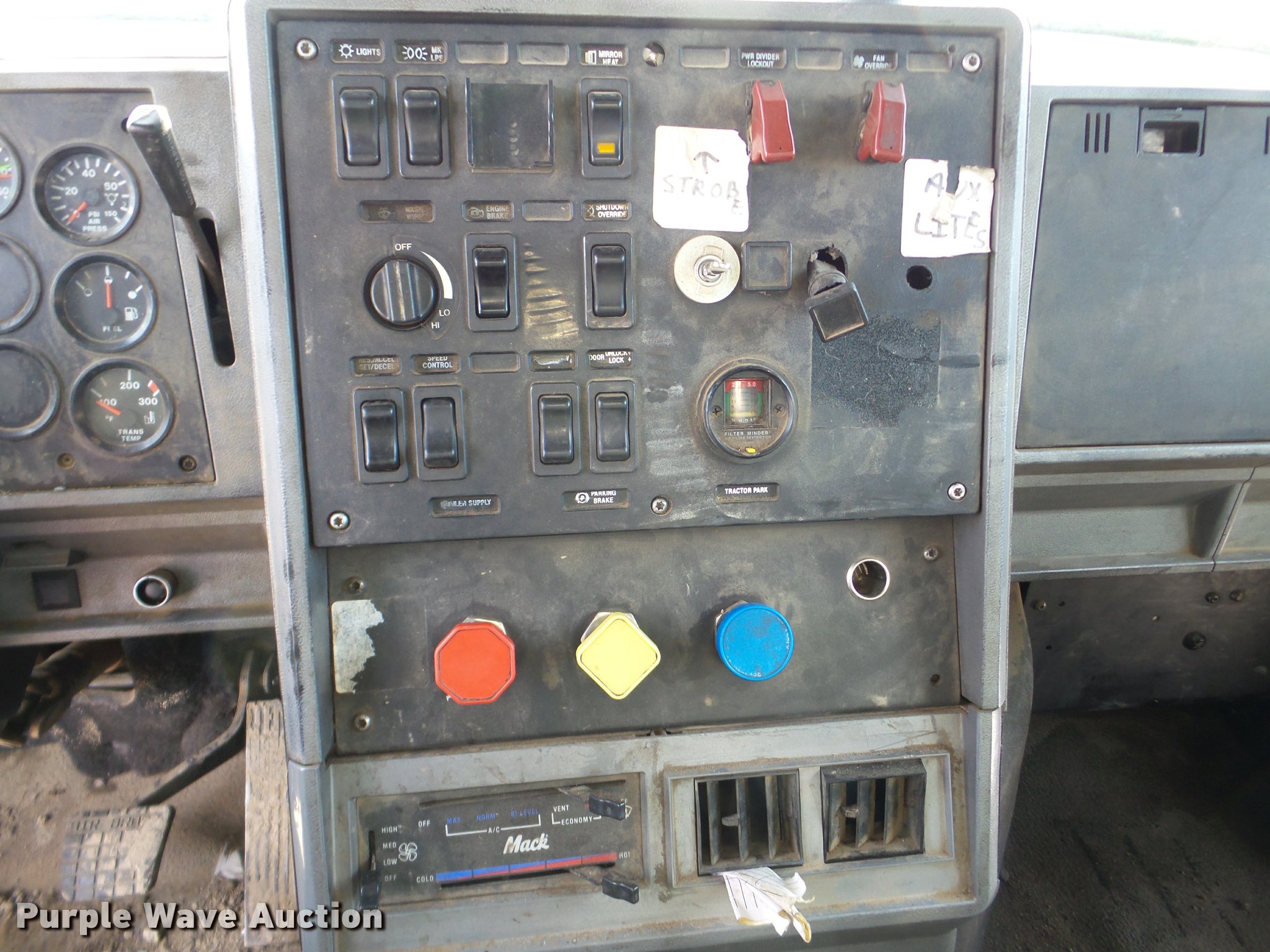 Purple Wave is selling a used Construction Dump Truck in Minnesota. This item is a 2003 Mack CL713 dump truck with the following: 682,069 miles on odometer, 14,018 hours on meter, Mack E7 12.0L L6 turbo diesel engine, Eaton Fuller eight speed with Lo and Lo-Lo manual transmission, Quad axle, (2) steerable pusher axles, AC and heat, Telescoping steering wheel, Cruise, AM/FM, Air suspension seat, Air ride cab, Heated mirrors, PTO, 17'L x 8'W steel dump bed, 4' to 5' side height, Bed vibrator, Non-operational, Air operated end gate, Roll tarp, Single fuel tank, Camelback suspension, Air brakes, Engine brake, 240" wheelbase, 425/65R22.5 front tires, 11R22.5 rear tires, 11R22.5 tag axle tires