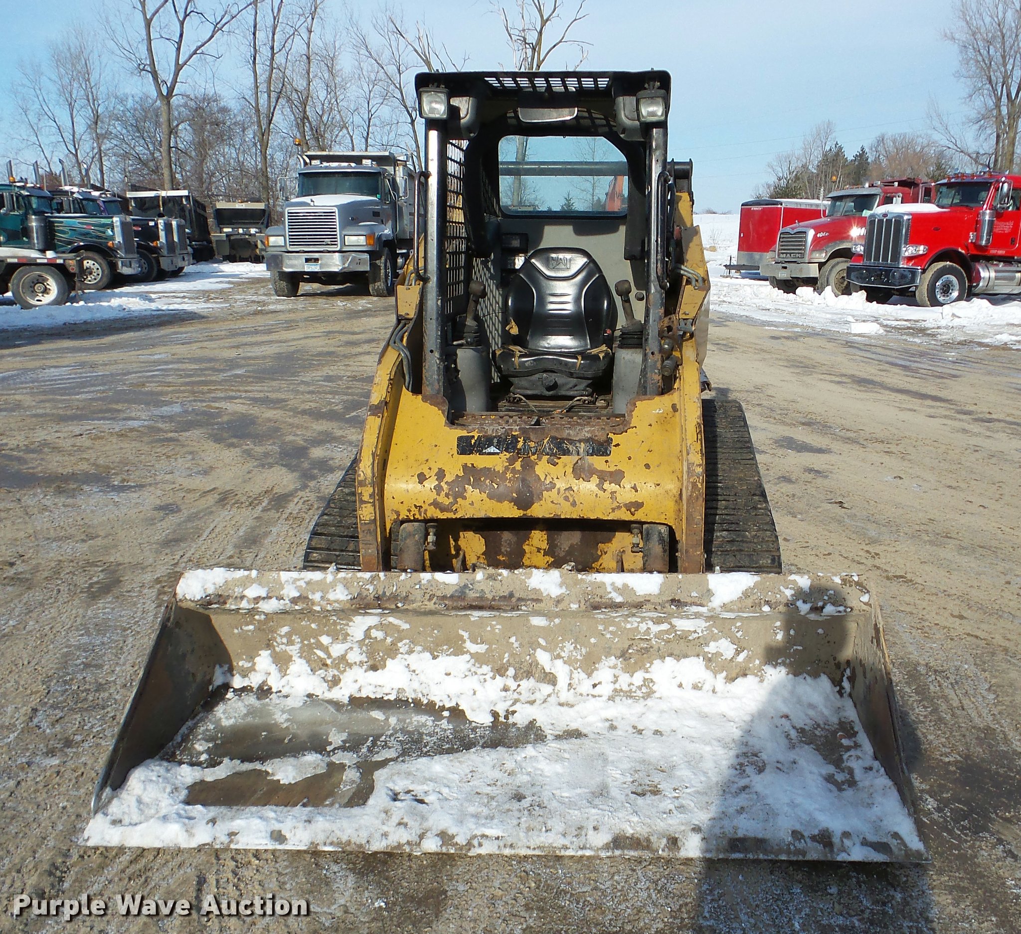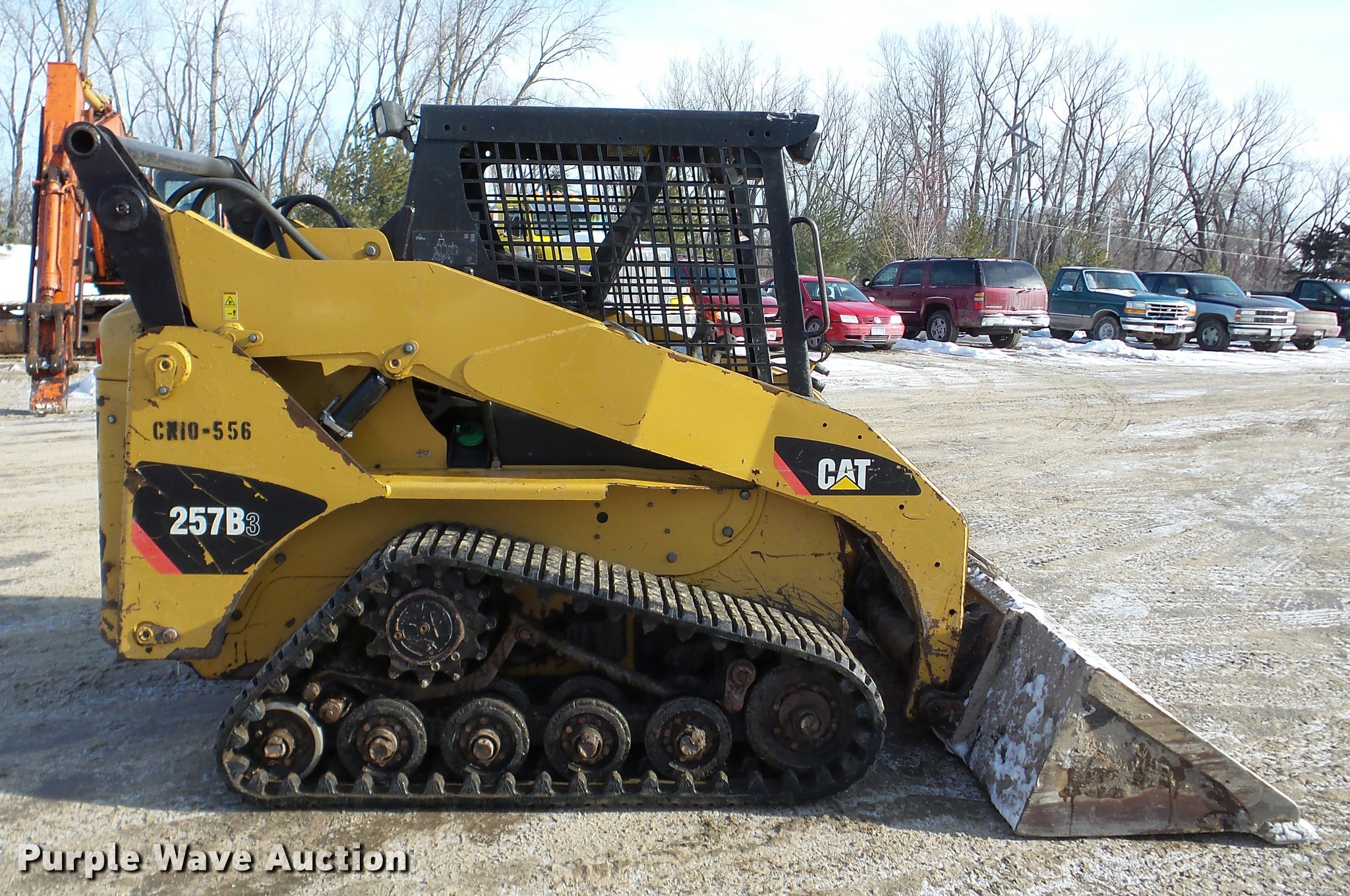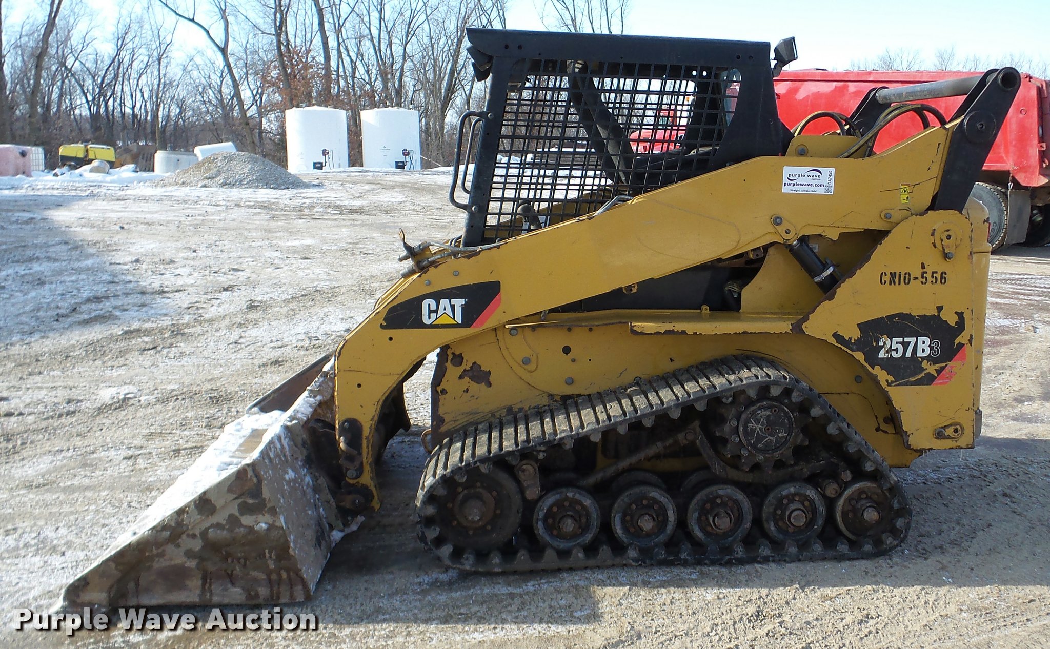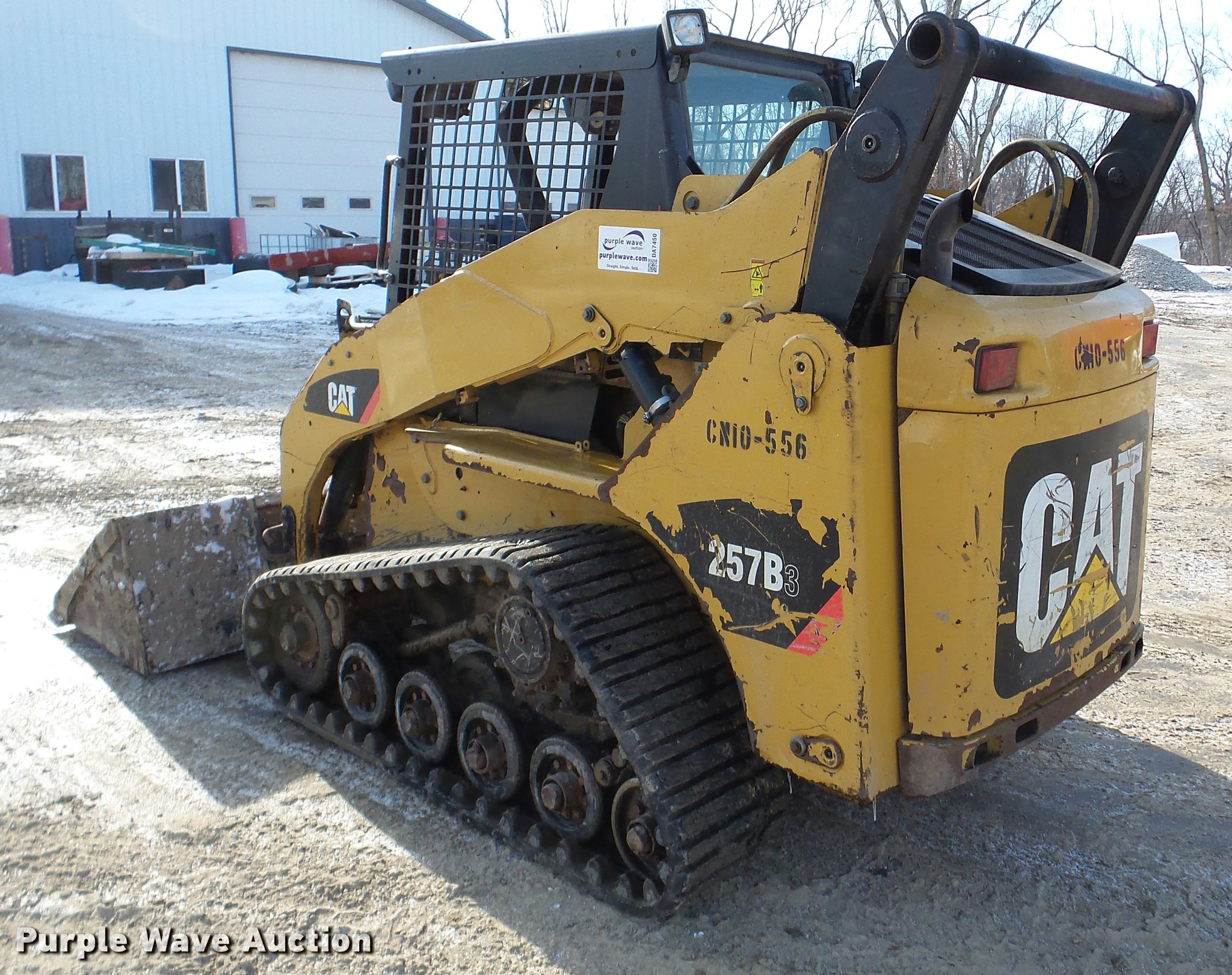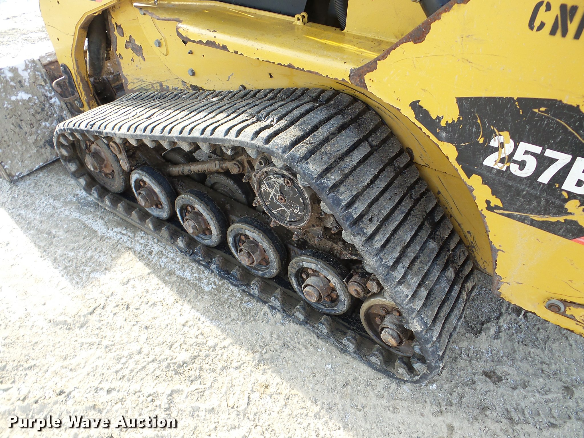 Purple Wave is selling a used Tracked Skid Steer Loader in Minnesota. This item is a 2010 Caterpillar 257B skid steer with the following: 2,874 hours on meter, Caterpillar C3.4 four cylinder turbo diesel engine, Hydrostatic transmission, Open station/canopy, Joystick controls, Spring suspension seat, Front and rear work lights, 80"W bucket, Bolt-on cutting edge, Manual quick coupler, Auxiliary hydraulics, 15"W tracks, Serial 0257BLB7H00376
