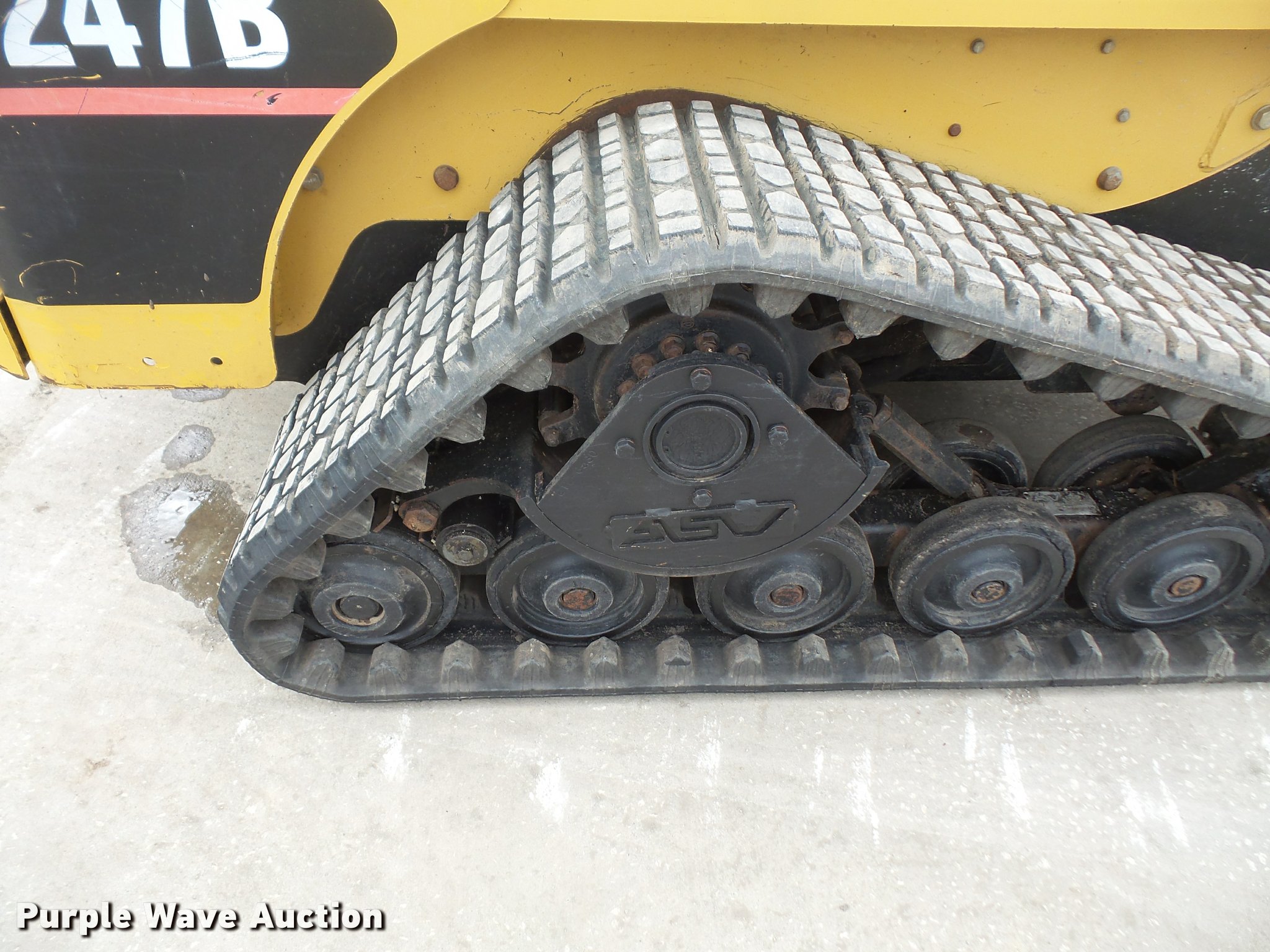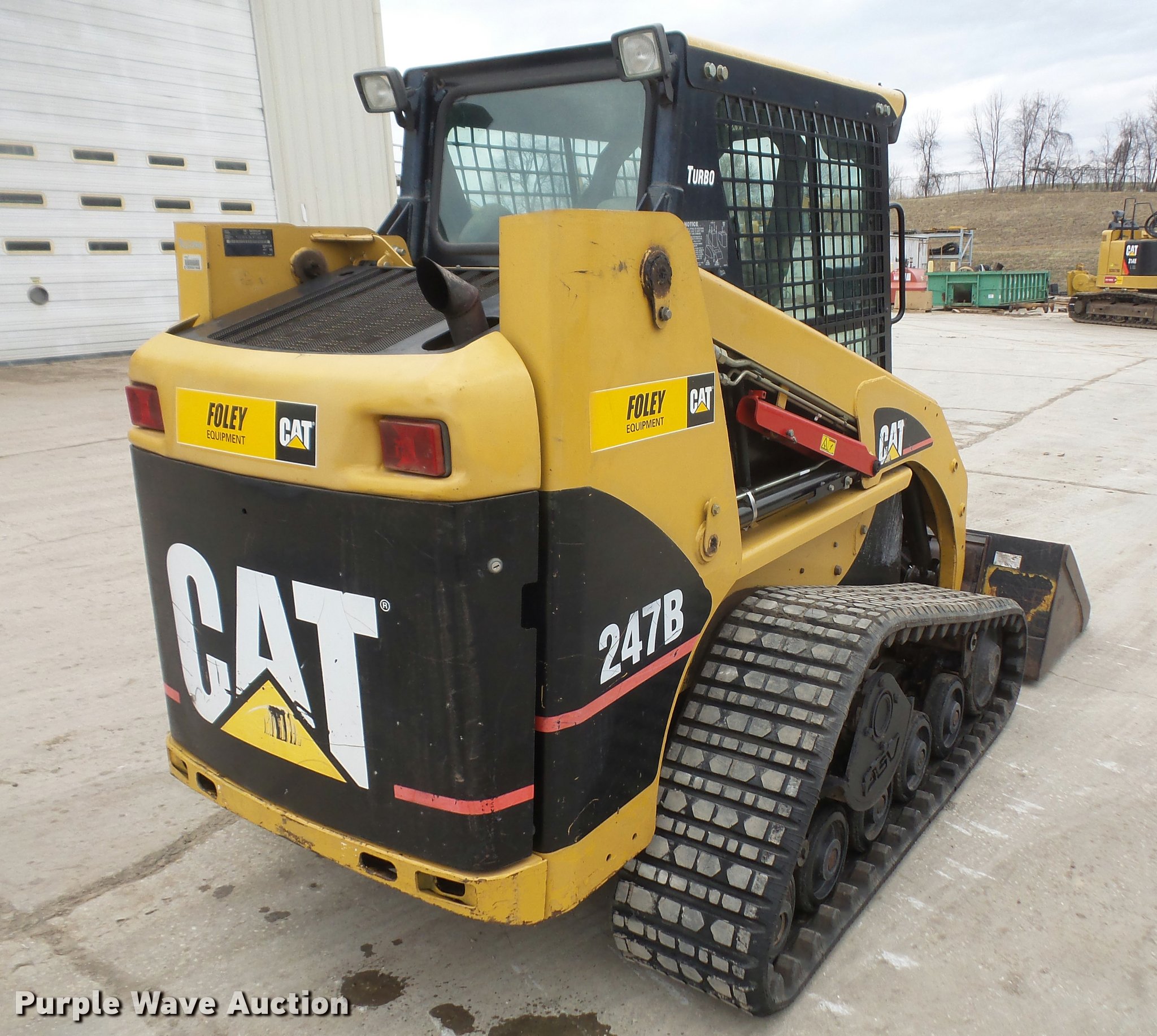 Purple Wave is selling a used Tracked Skid Steer Loader in Missouri. This item is a 2006 Caterpillar 247B skid steer with the following: 3,254 hours on meter, Perkins four cylinder turbo diesel engine, Model 5H3XL222N4T, 61 HP, Hydrostatic transmission, Enclosed cab, AC and heat, AM/FM, Joystick controls, Spring suspension seat, Wipers, Front and rear work lights, 68"W bucket, Bolt-on teeth, Hydraulic quick coupler, Auxiliary hydraulics, Auxiliary electrical outlet, ASV 15"W tracks, Serial CAT0247BLMTL02621, Unit# PVC0300