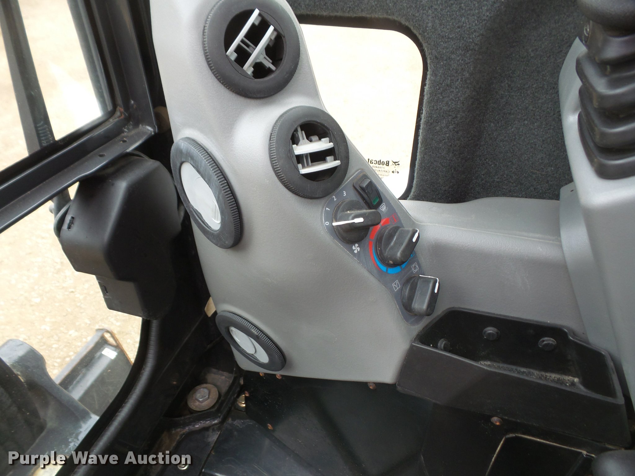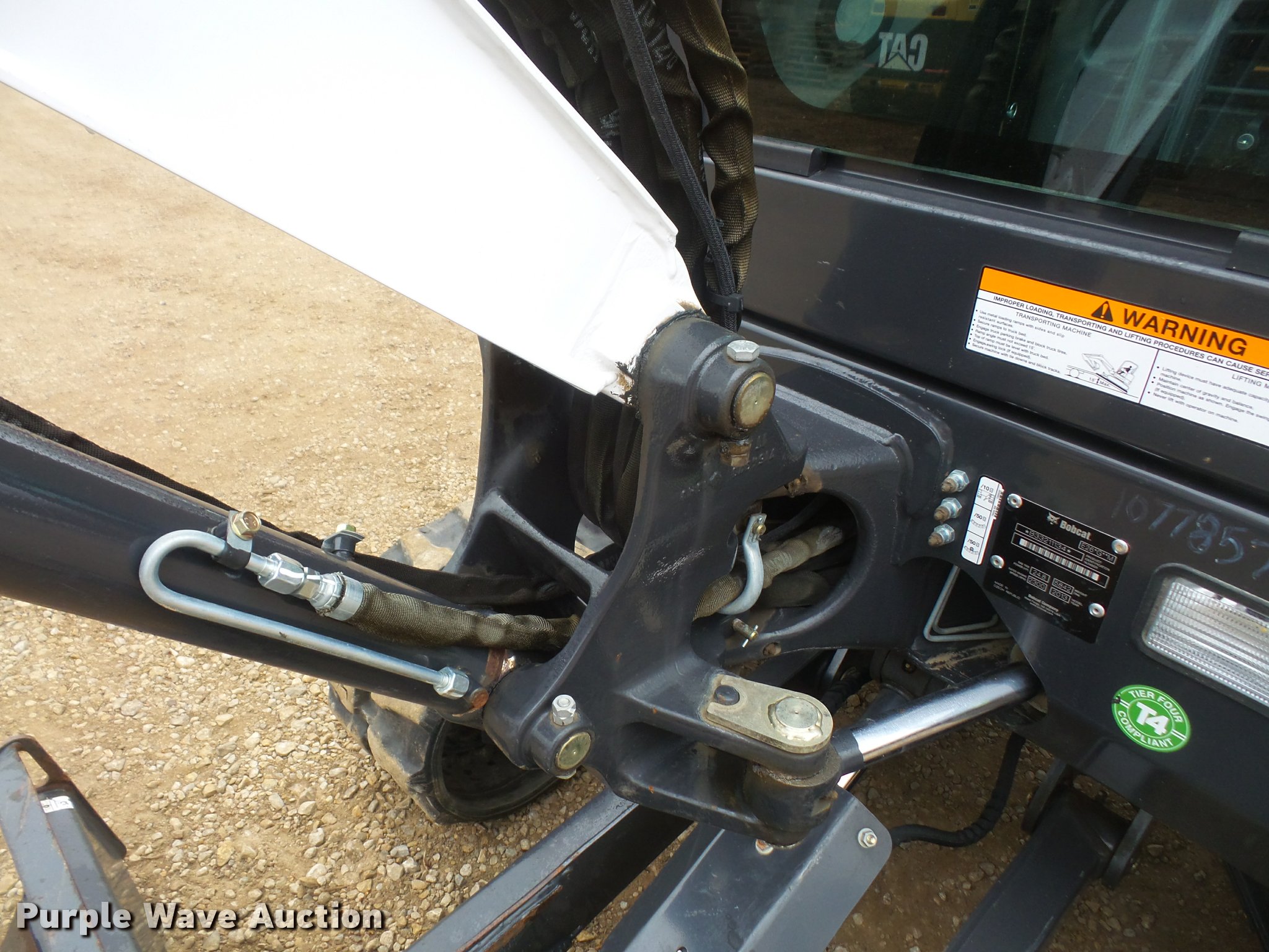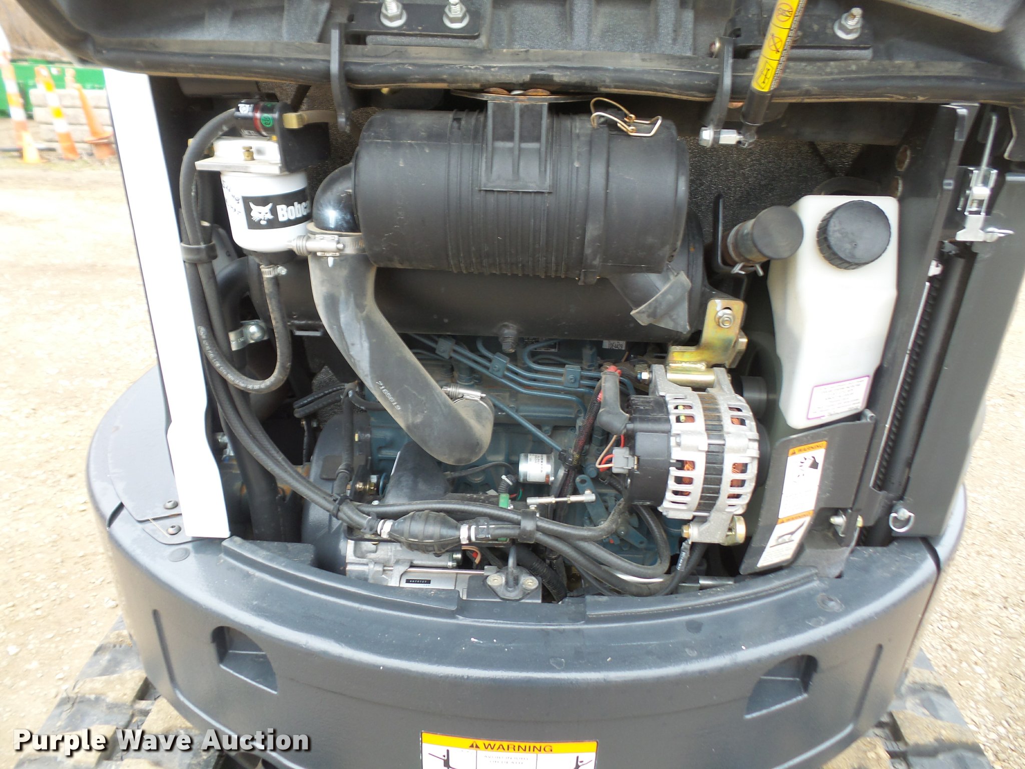 Purple Wave is selling a used Mini Excavator in Kansas. This item is a 2013 Bobcat E26 compact excavator with the following: 132 hours on meter, Kubota V1505-EF01 1.5L four cylinder diesel engine, 24.8 HP, Serial 1DE4429, Hydrostatic transmission, Enclosed cab, AC and heat, Suspension seat, Pattern changer, 60"W back fill blade, Standard boom, 43" stick length, Two way auxiliary hydraulics, Mechanical quick coupler, Bobcat 24"W bucket, (4) weld-on teeth, 12"W rubber tracks, Serial B33211134