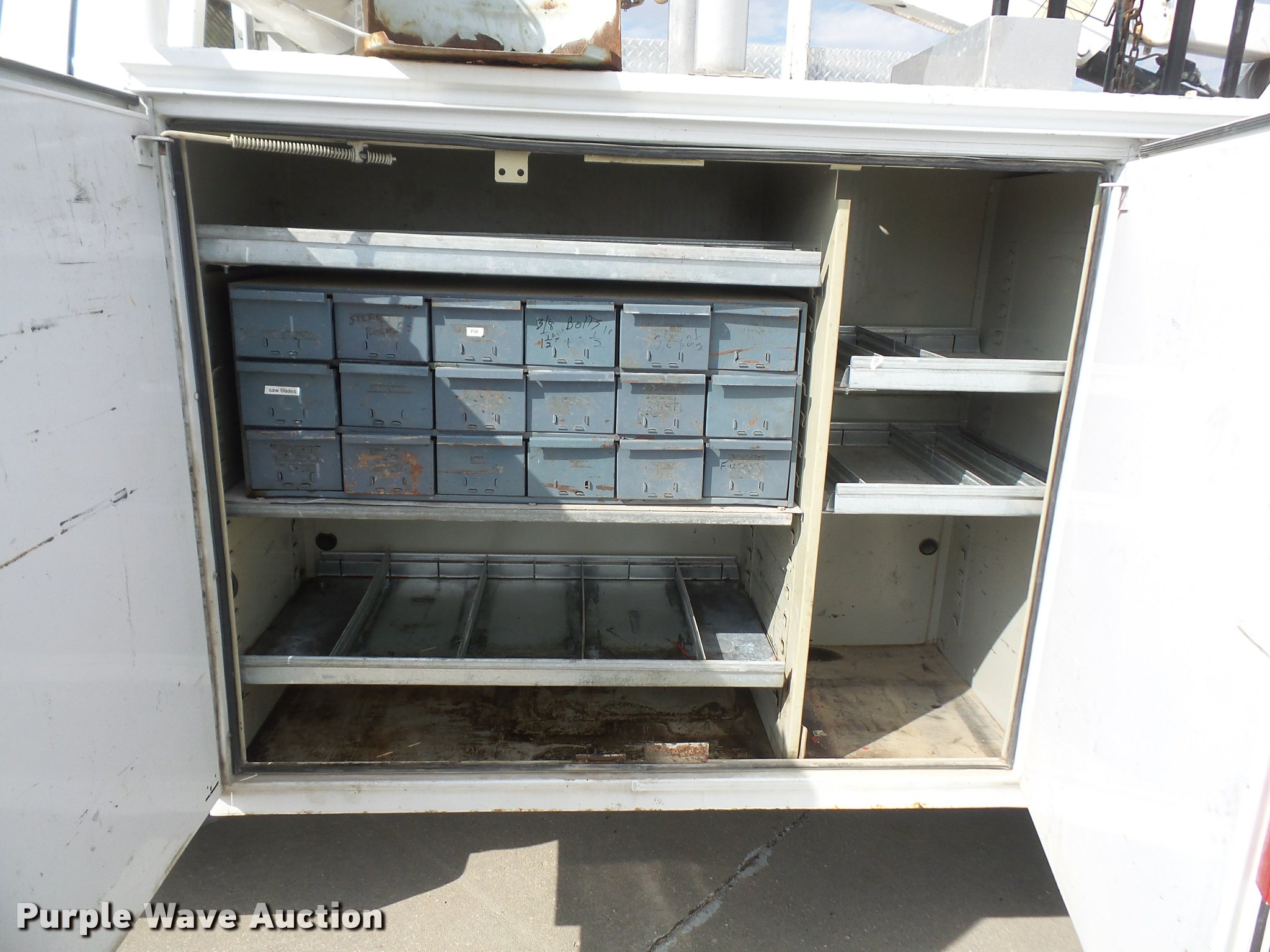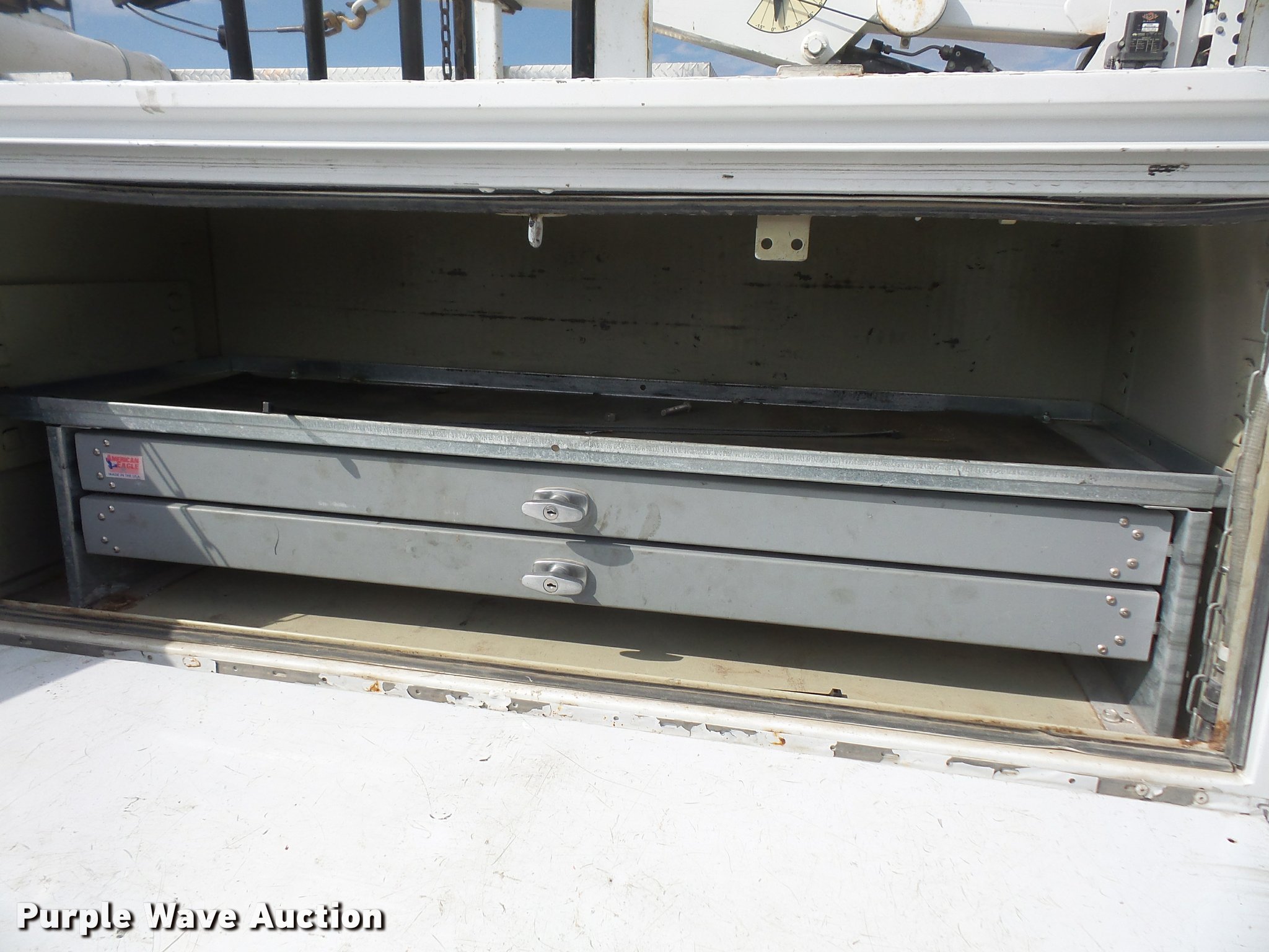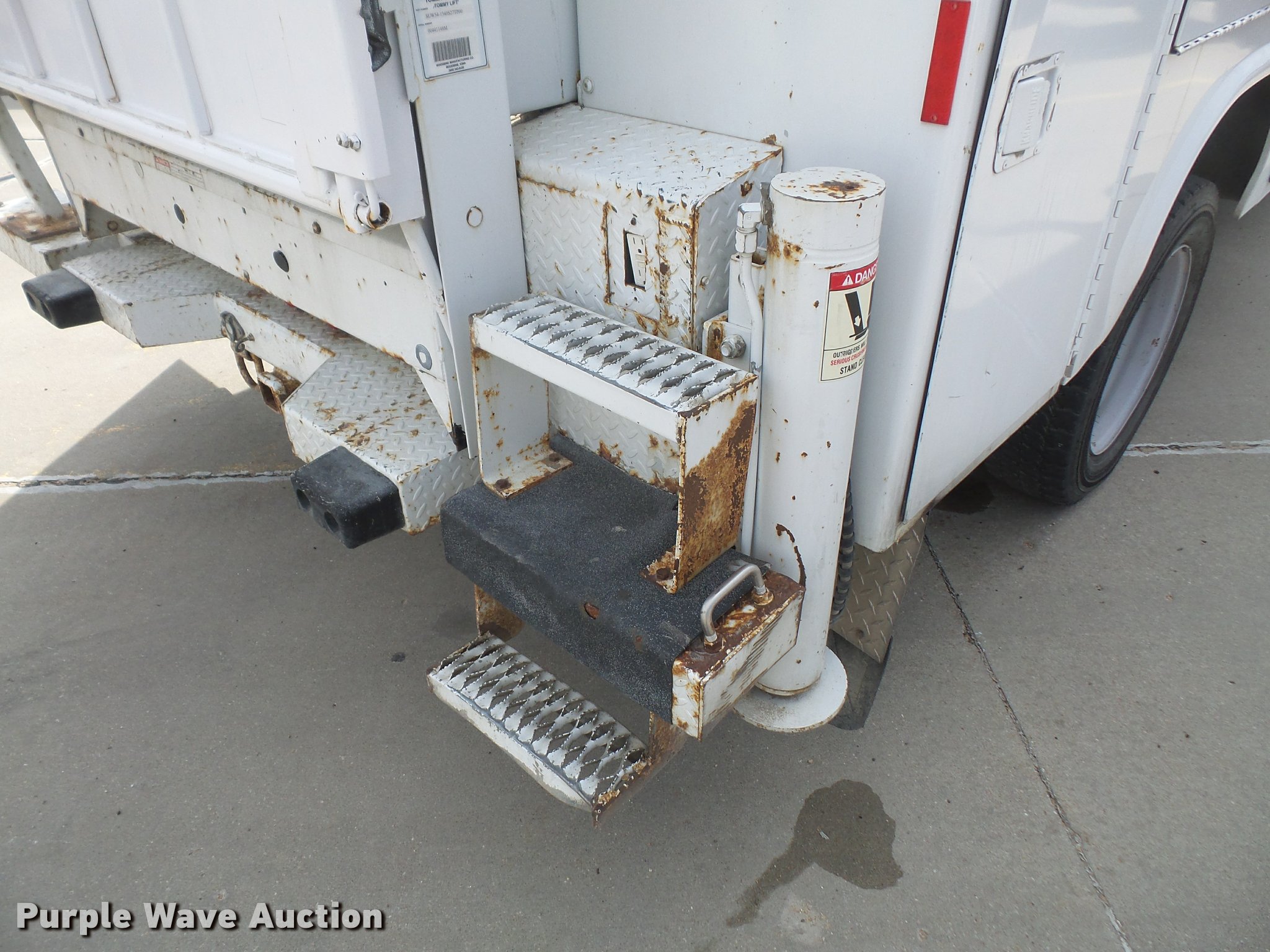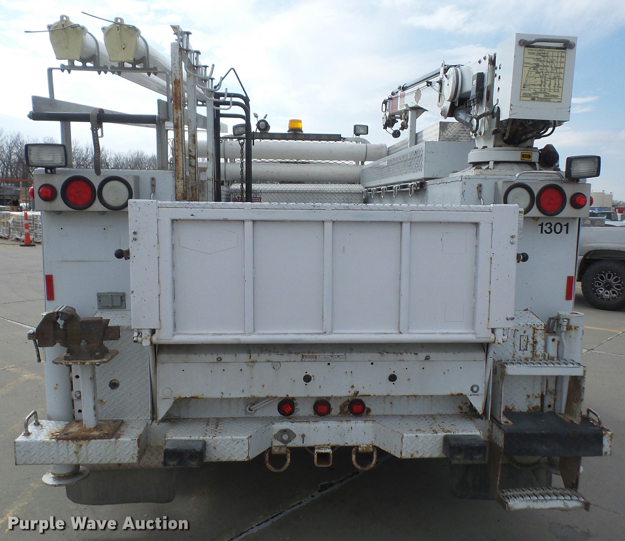 Purple Wave is selling a used Service Truck in Kansas. This item is a 2008 Ford F550 Super Duty service truck with crane with the following: 117,597 miles on odometer, 6.4L V8 OHV 32V turbo diesel engine, Automatic transmission, Single axle, AC and heat, AM/FM/CD, Auxiliary controls, Brake controller, PTO, Knapheide utility bed, 11'L, Shelving, Slide-out drawers, Utility rack, Toolboxes, Dual remote control spotlights, Work lights, Mounted vise, Tommy Gate end gate lift, 1,300 lbs maximum lift capacity, Receiver hitch, IMT 2020 crane, 5,000 lbs maximum lift capacity, 20' boom length, Remote control, (2) outriggers, Front tow hooks, Beacon light, Single fuel tank, Spring suspension, Hydraulic brakes, 225/70 R19.5 tires, GVWR 19,000 lbs, Unit# 1301