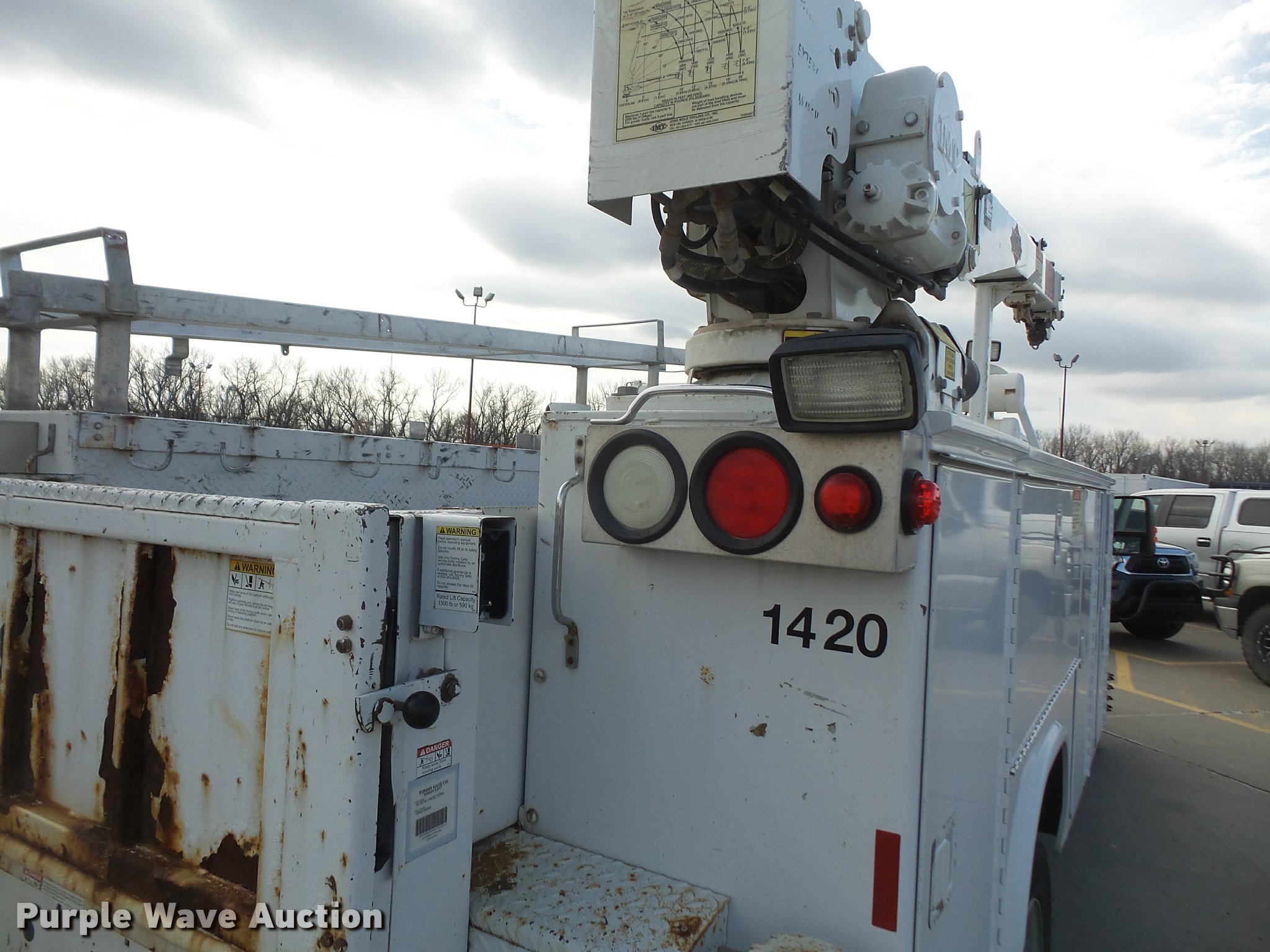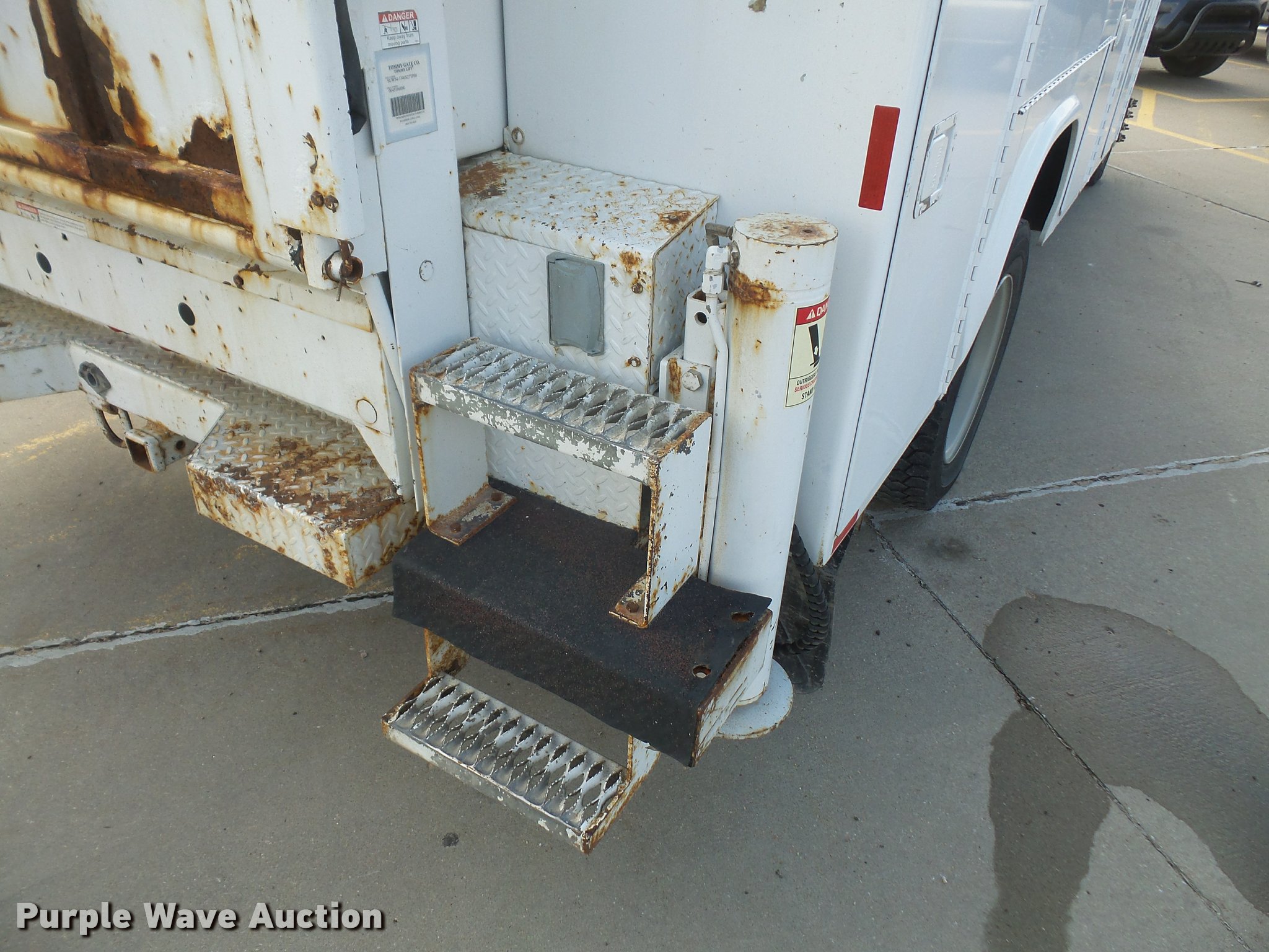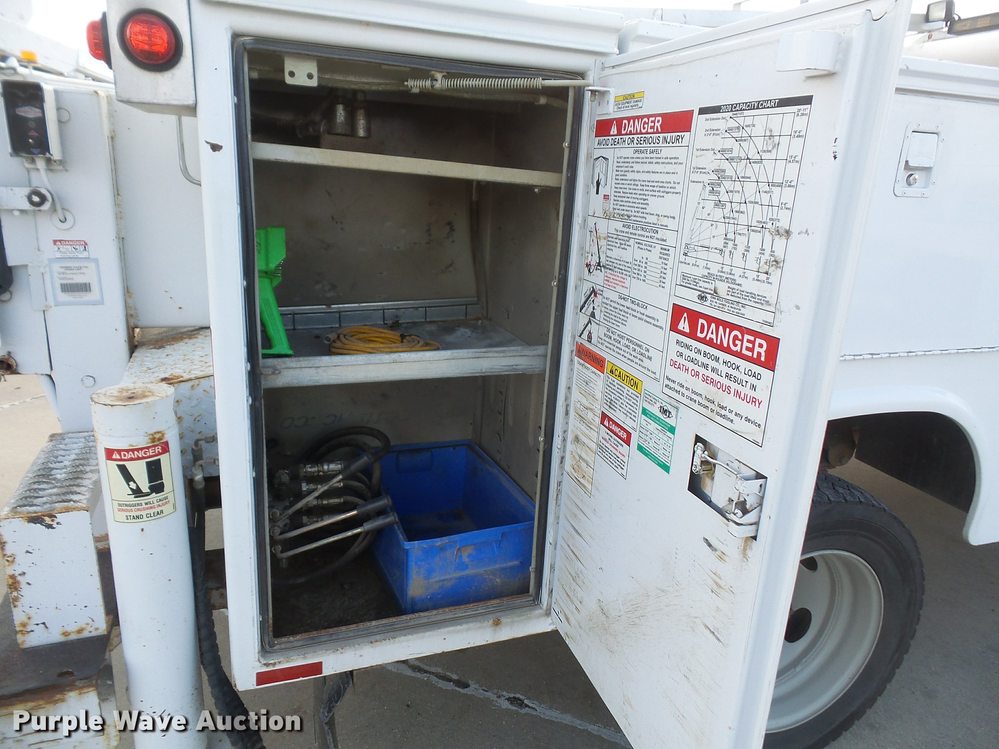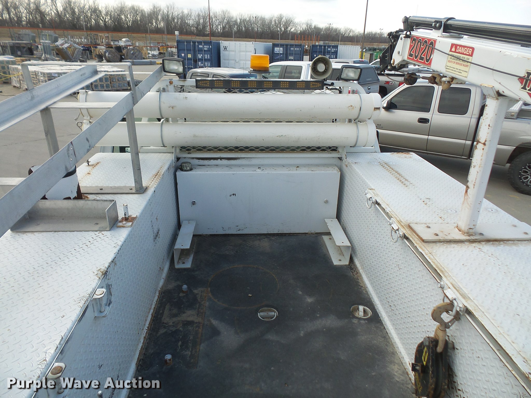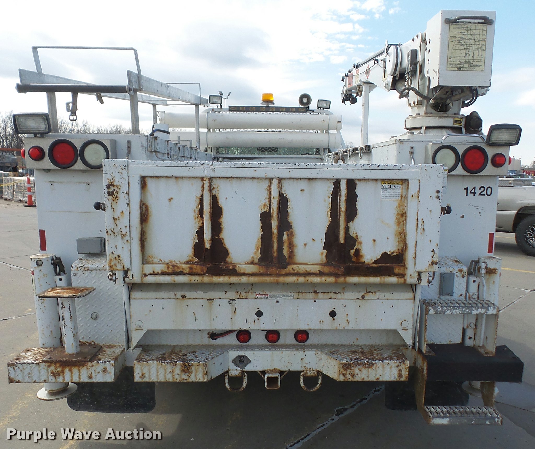 Purple Wave is selling a used Service Truck in Kansas. This item is a 2008 Ford F550 Super Duty service truck with crane with the following: 95,184 miles on odometer, 6.4L V8 OHV 32V turbo diesel engine, Automatic transmission, Four wheel drive, AC and heat, AM/FM/CD, Power windows, locks, and mirrors, Auxiliary controls, Brake controller, PTO, Knapheide utility bed, 11'L, Shelving, Slide-out drawers, Utility rack, Dual remote control spotlights, Tommy Gate end gate lift, 1,300 lbs maximum lift capacity, Receiver hitch, IMT 2020 crane, 5,000 lbs maximum lift capacity, 20' boom length, Remote control, (2) outriggers, Beacon light, Single fuel tank, Spring suspension, Hydraulic brakes, 225/70R19.5 tires, GVWR 19,500 lbs, Unit# 1420