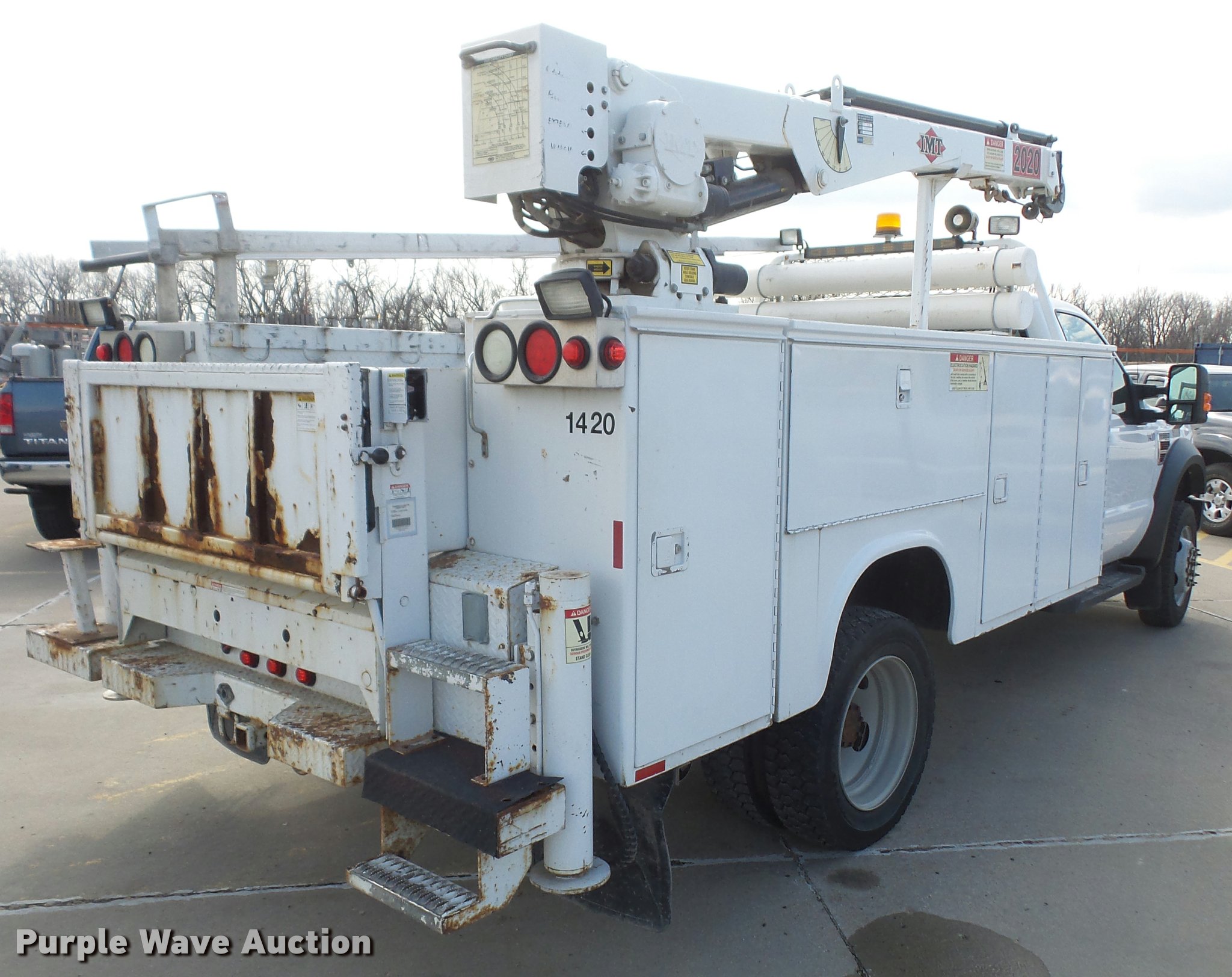 2008 Ford F550 Super Duty service truck with crane has sold in Topeka, Kansas for $20900. Item DB0666 sold on March 30th, 2017.