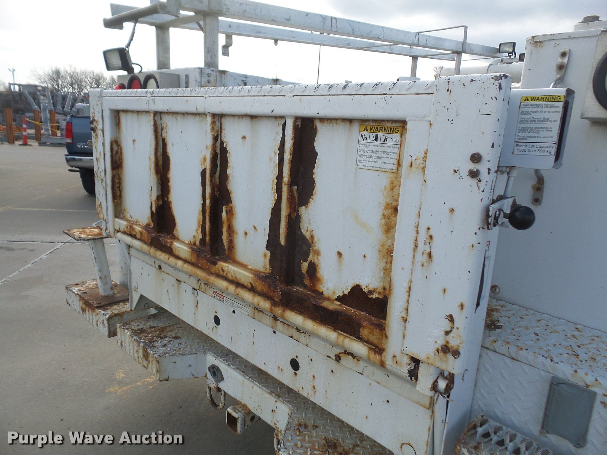2008 Ford F550 Super Duty service truck with crane. 95,184 miles on odometer, 6.4L V8 OHV 32V turbo diesel engine, Automatic transmission, Four wheel drive, AC and heat, AM/FM/CD, Power windows, locks, and mirrors, Auxiliary controls, Brake controller, PTO, Knapheide utility bed 11'L, Shelving, Slide-out drawers, Utility rack, Dual remote control spotlights, Tommy Gate end gate lift, 1,300 lbs maximum lift capacity, Receiver hitch, IMT 2020 crane 5,000 lbs maximum lift capacity, 20' boom length, Remote control, (2) outriggers, Beacon light, Single fuel tank, Spring suspension, Hydraulic brakes, 225/70R19.5 tires, GVWR 19,500 lbs, Unit# 1420. Kansas title.. Completed bill of sale documentation required prior to release of paid invoice. 1FDAF57RX8EE22484. Westar Energy Inc.. 4001 NW 14th St. Topeka, KS 66618
