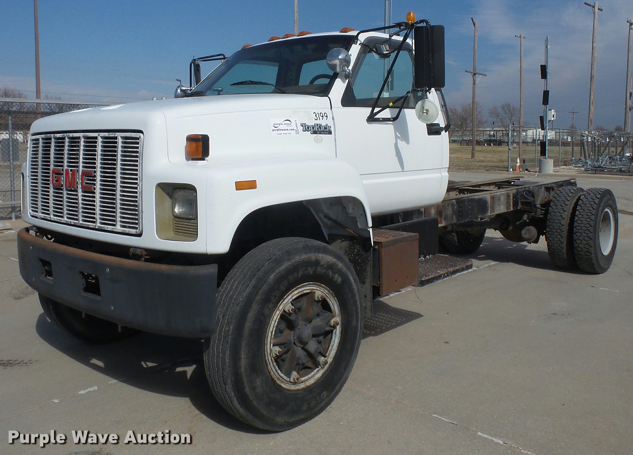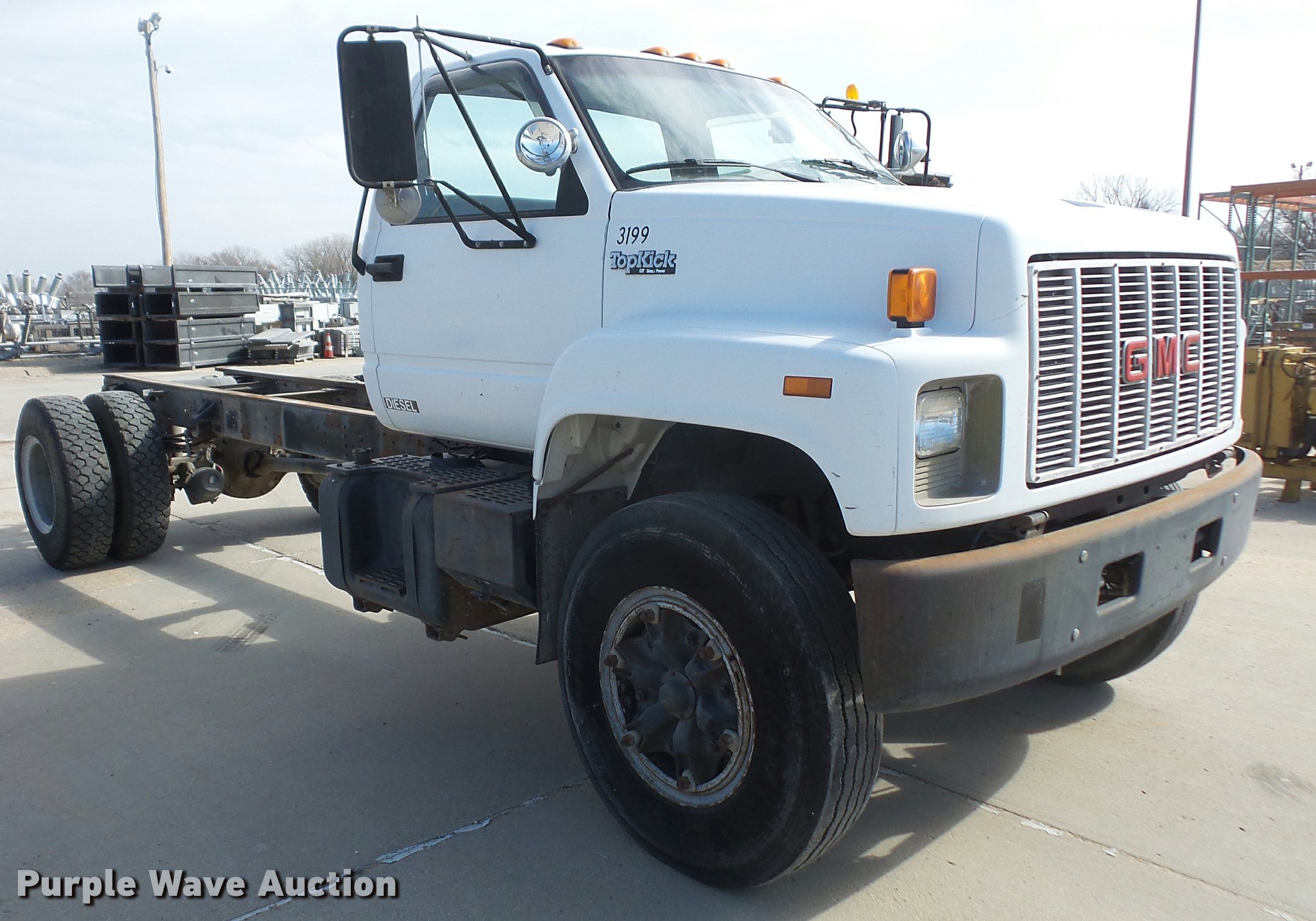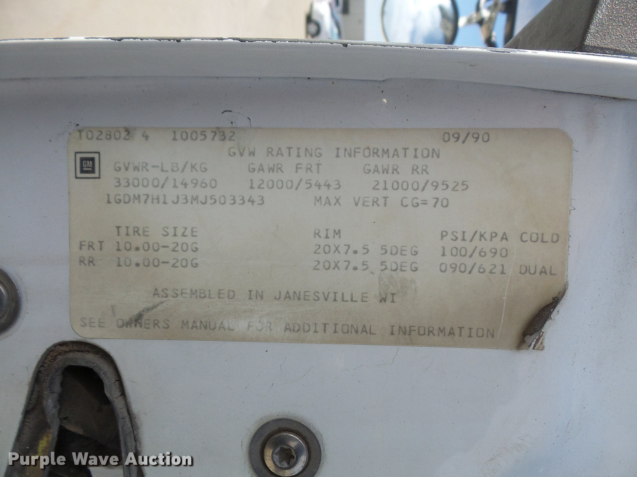 Purple Wave is selling a used Truck Chassis in Kansas. This item is a 1991 GMC TopKick truck chassis with the following: 114,617 miles on odometer, 7,201 hours on meter, Caterpillar 3116 6.6L six cylinder turbo diesel engine, 215 HP, Five speed manual transmission, Single axle, Heat, AM, Single fuel tank, 172" from rear of cab to rear of frame, Spring suspension, Air brakes, 10.00R20 tires, GVWR 33,000 lbs, FAWR 12,000 lbs, RAWR 21,000 lbs