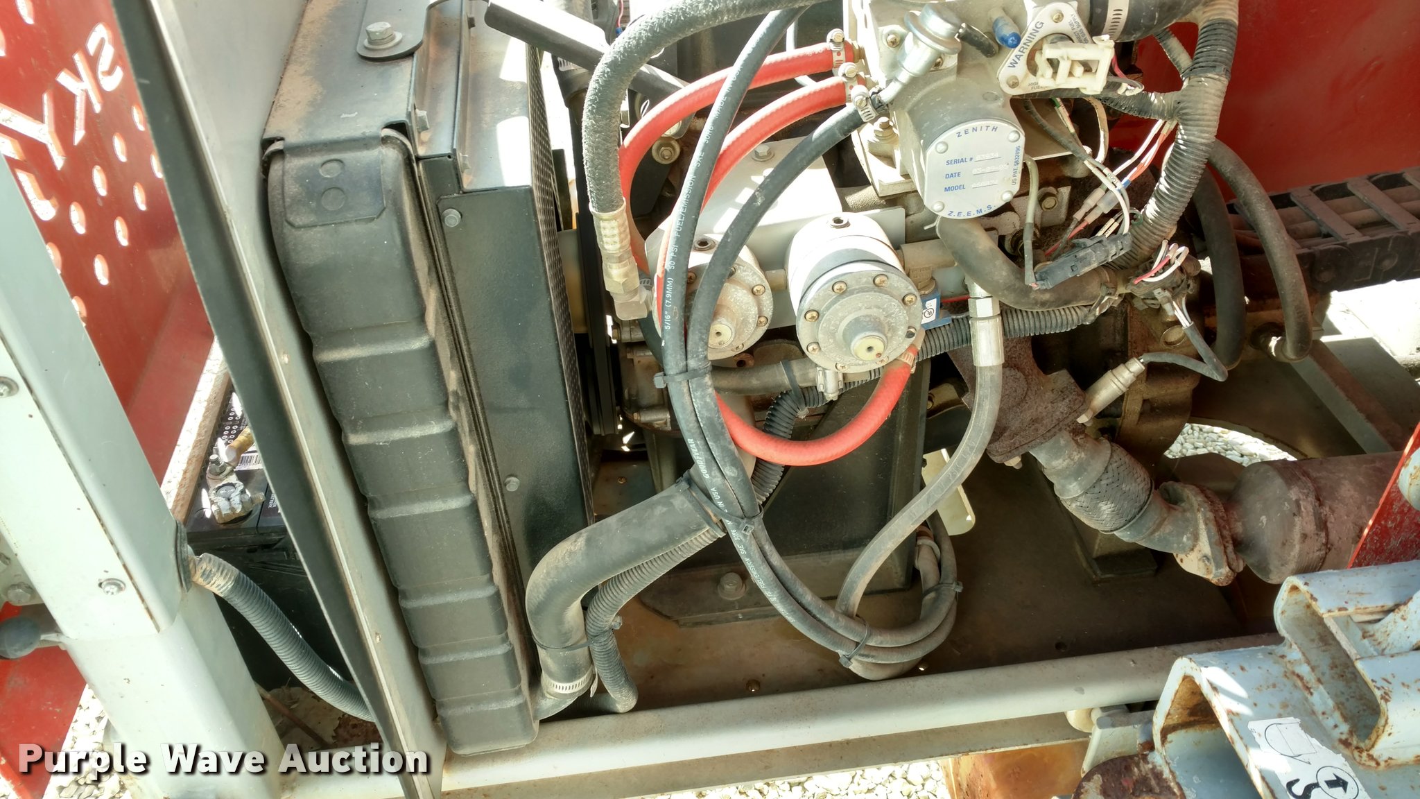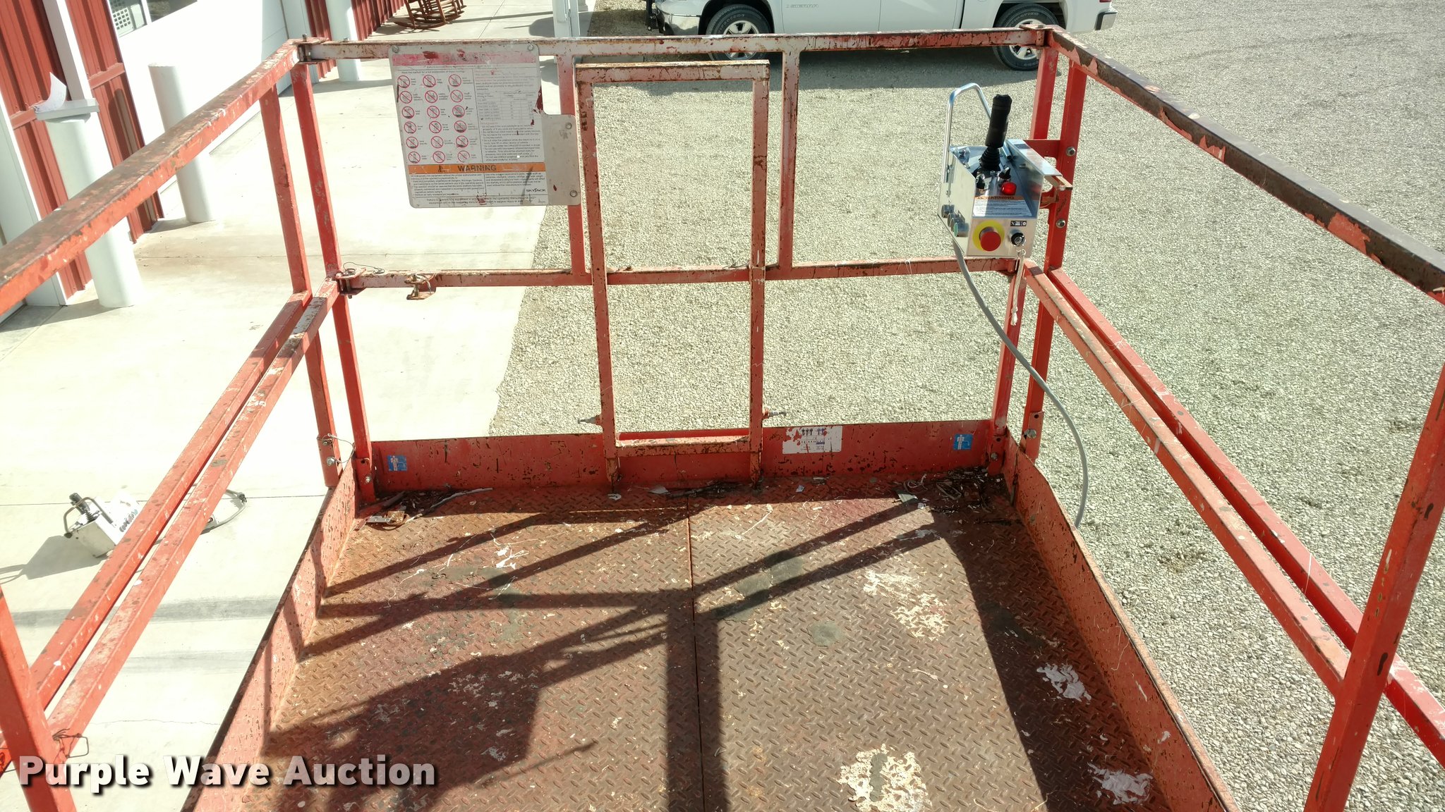 2005 Sky Jack SJ7127 scissor lift. 3,041 hours on meter, Nissan four cylinder dual fuel engine Gas or propane capable, 1,500 lbs maximum lift capacity, 27' platform height, 10-16 NHS tires, Serial 341326. Warren Wilson Hay. Abilene, KS 67410